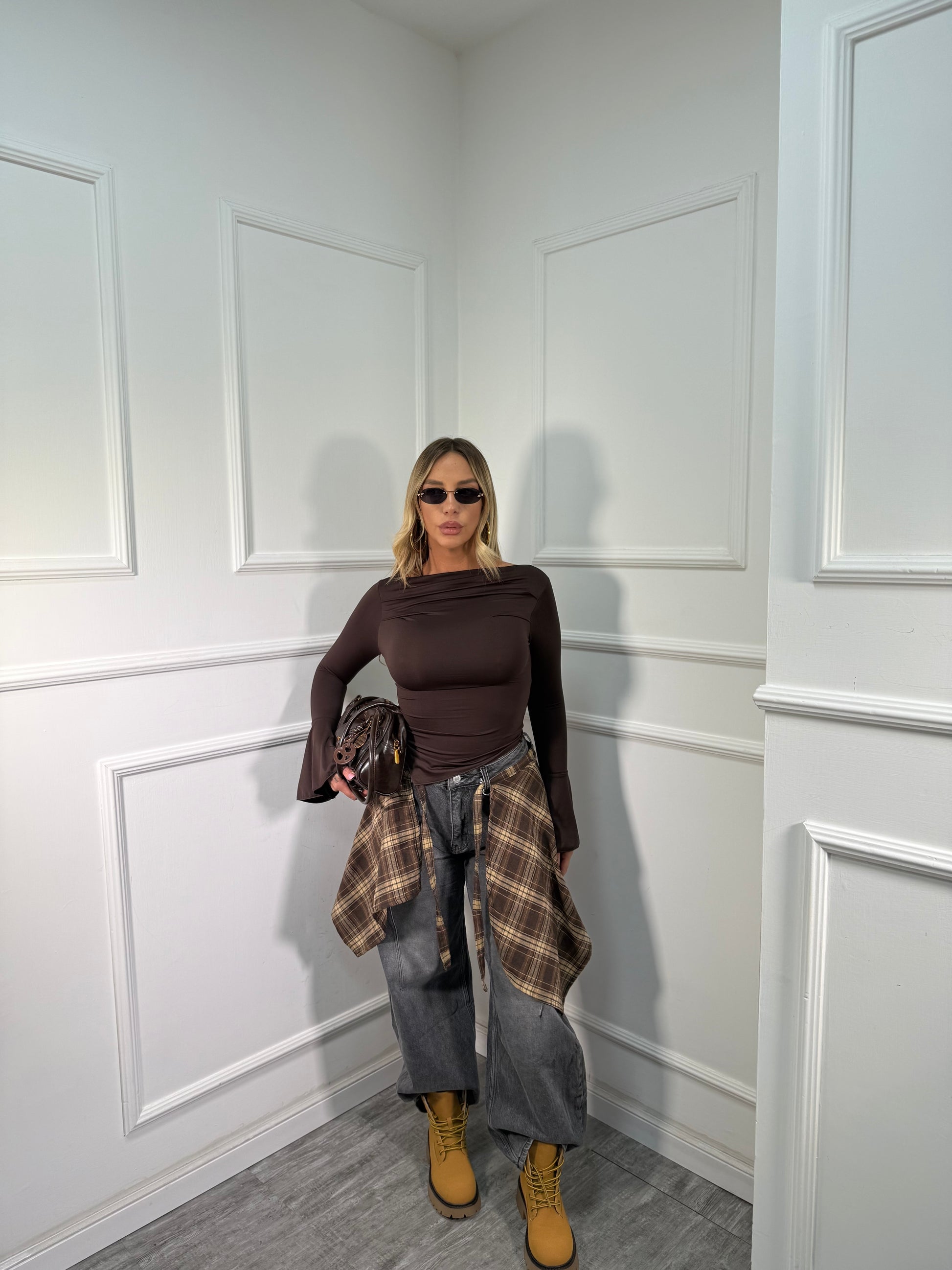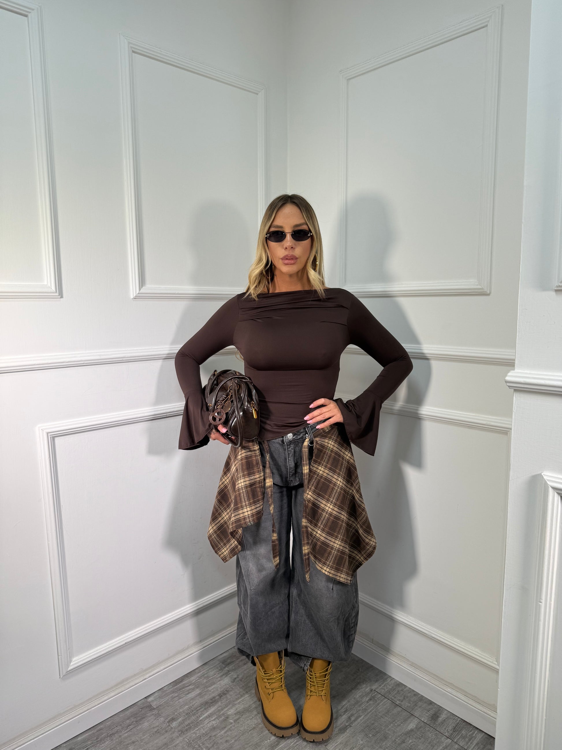 Jeans balloon con finta camicia incorporata grigio scuro w79932
