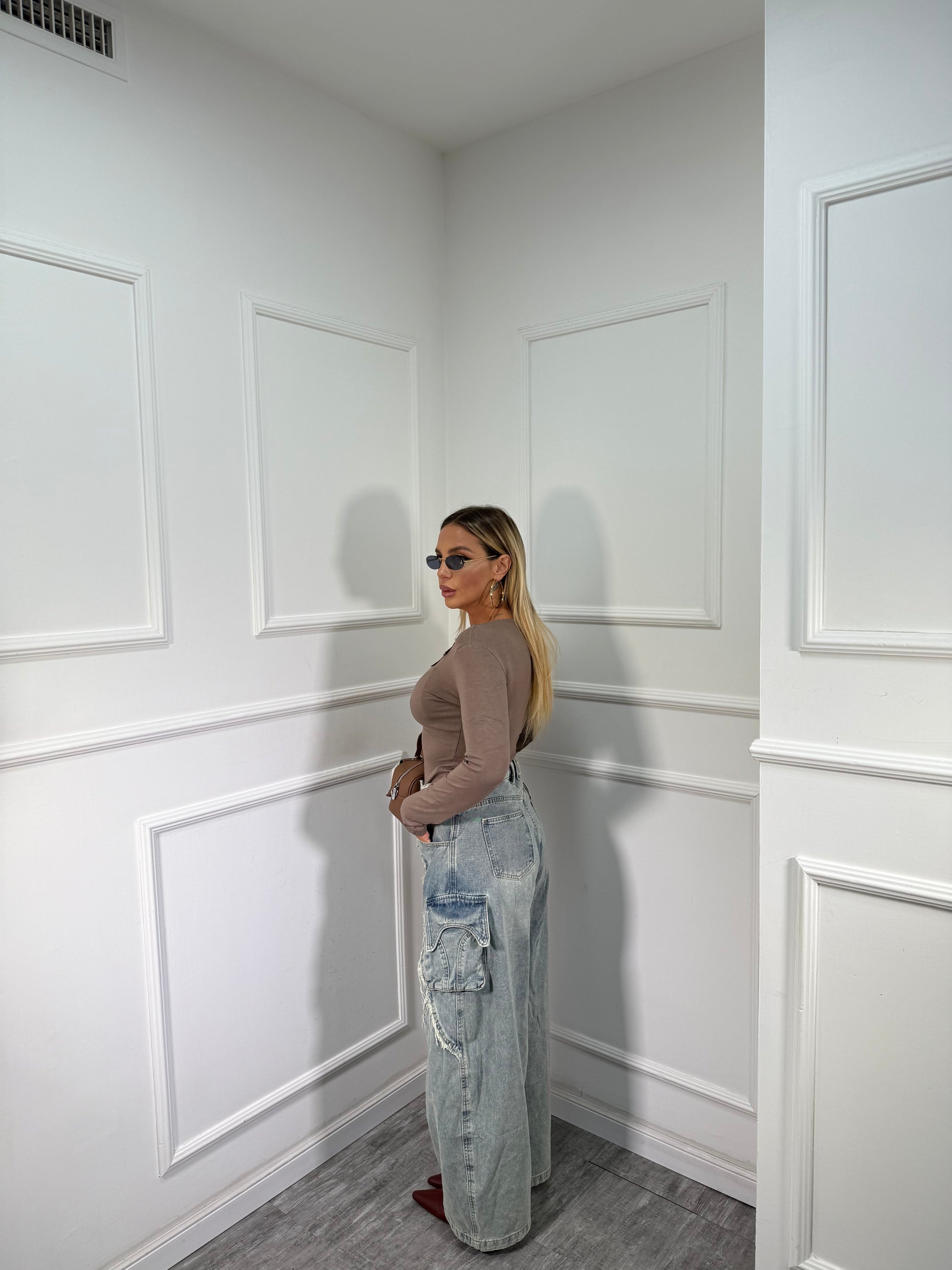 Jeans palazzo balloon sfrangiato lavaggio chiaro 81176
