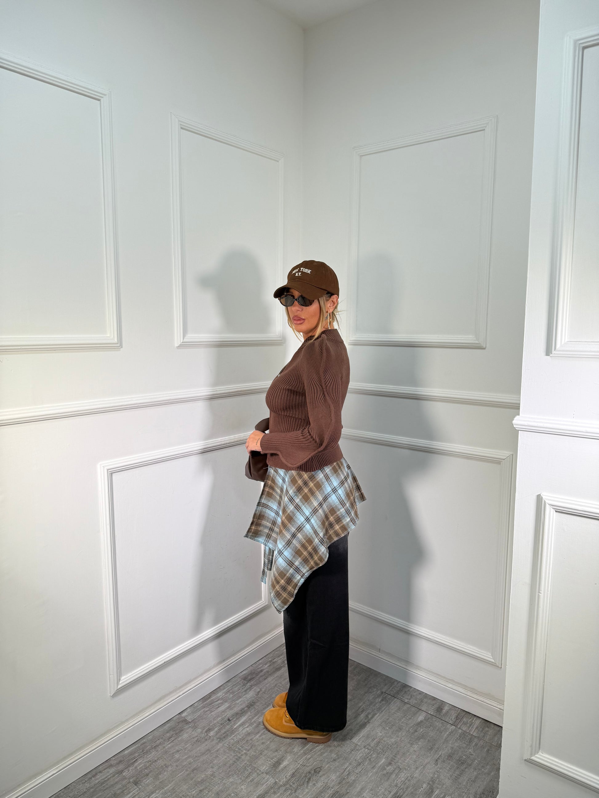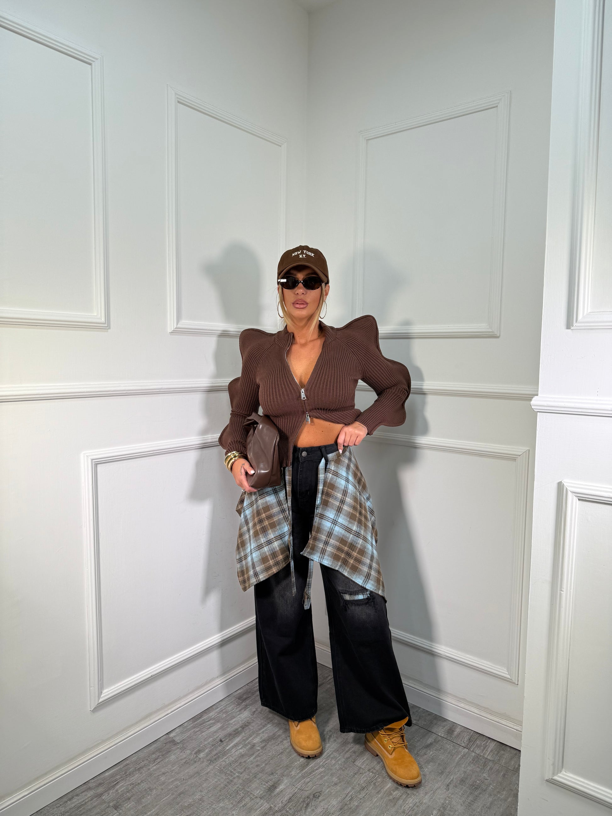 Jeans palazzo con camicia tartan premium quality
