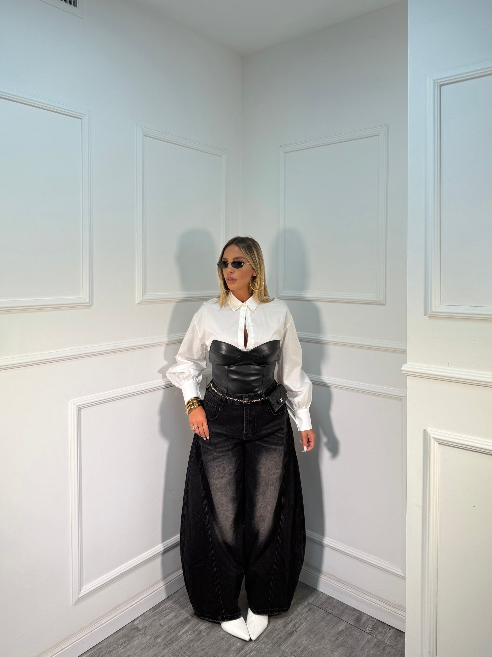 Jeans palazzone balloon nero 80228
