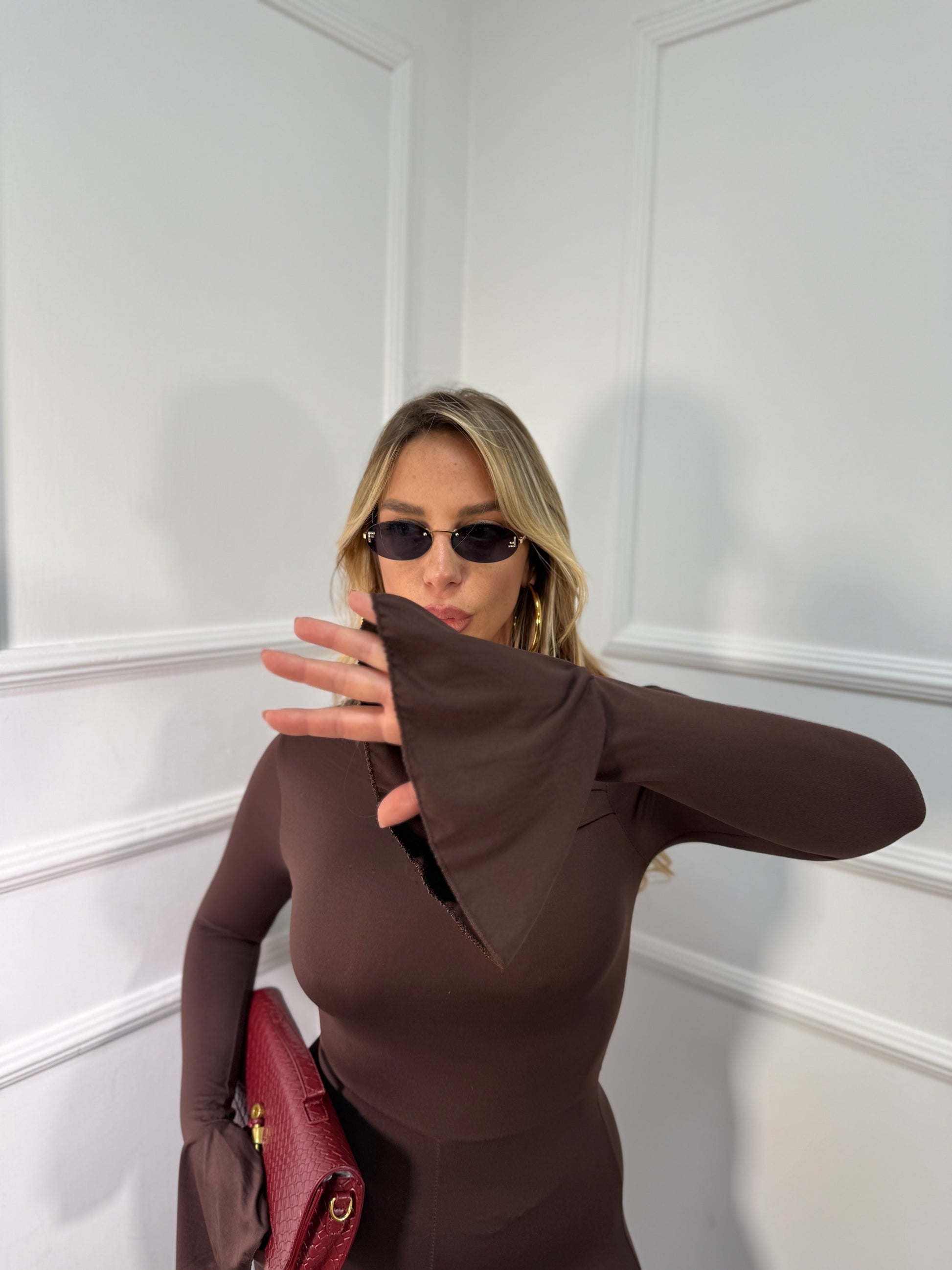Jumpsuit in lycra scollo asimmetrico cioccolato 14375