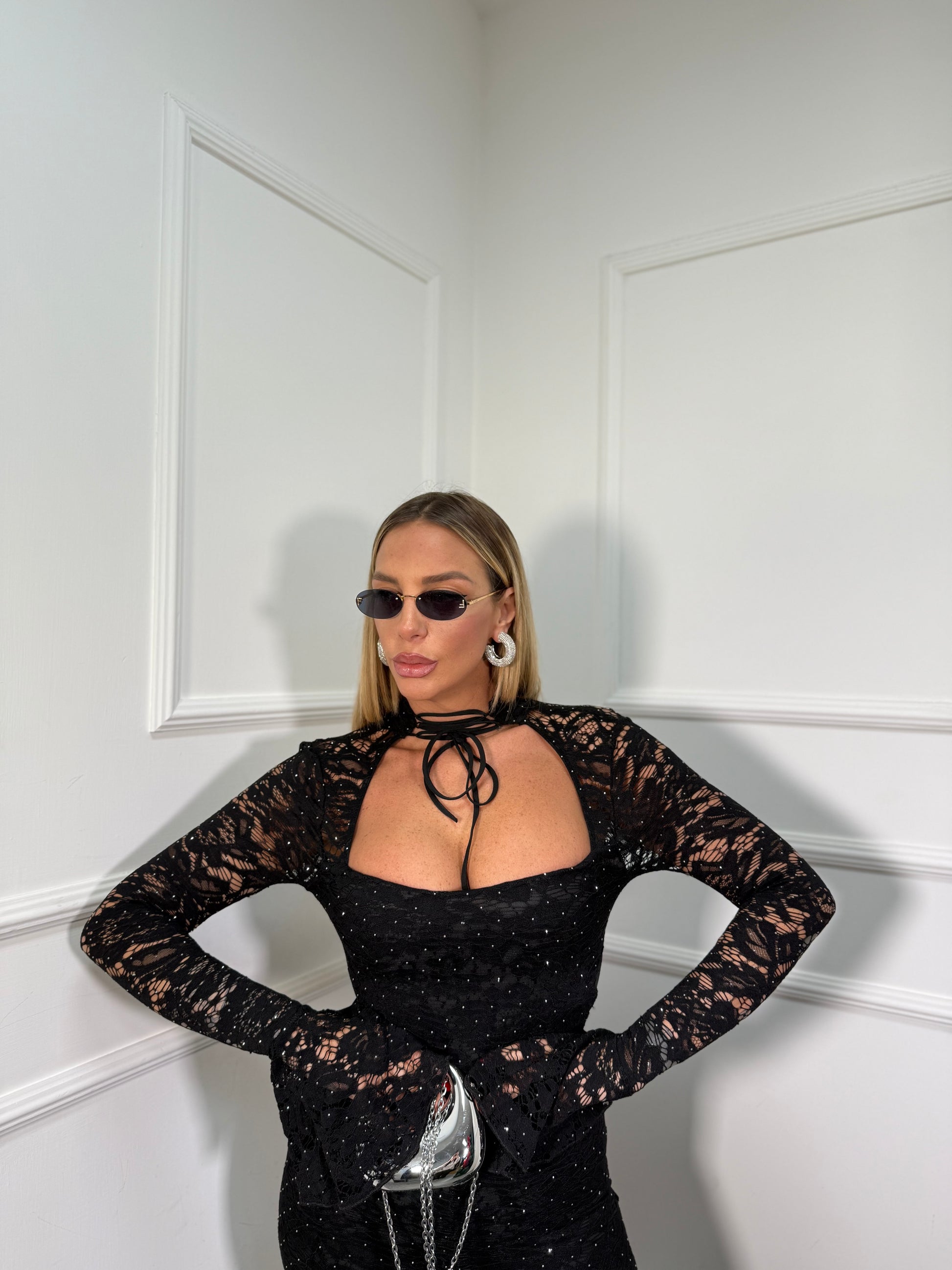 Jumpsuit in pizzo con micro strass Paradoxe nera 3276