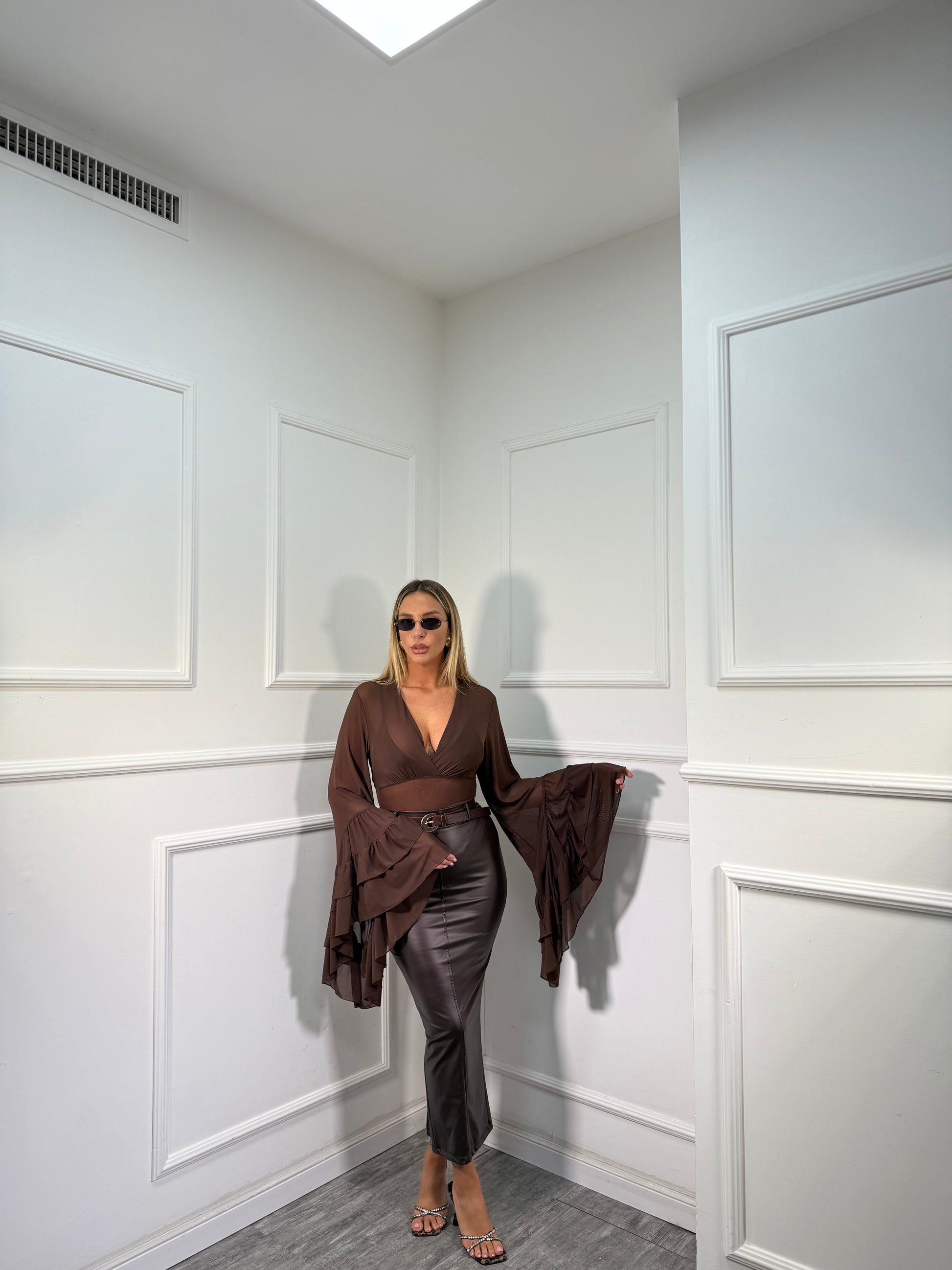 Longuette a tubino in ecopelle cacao 19539