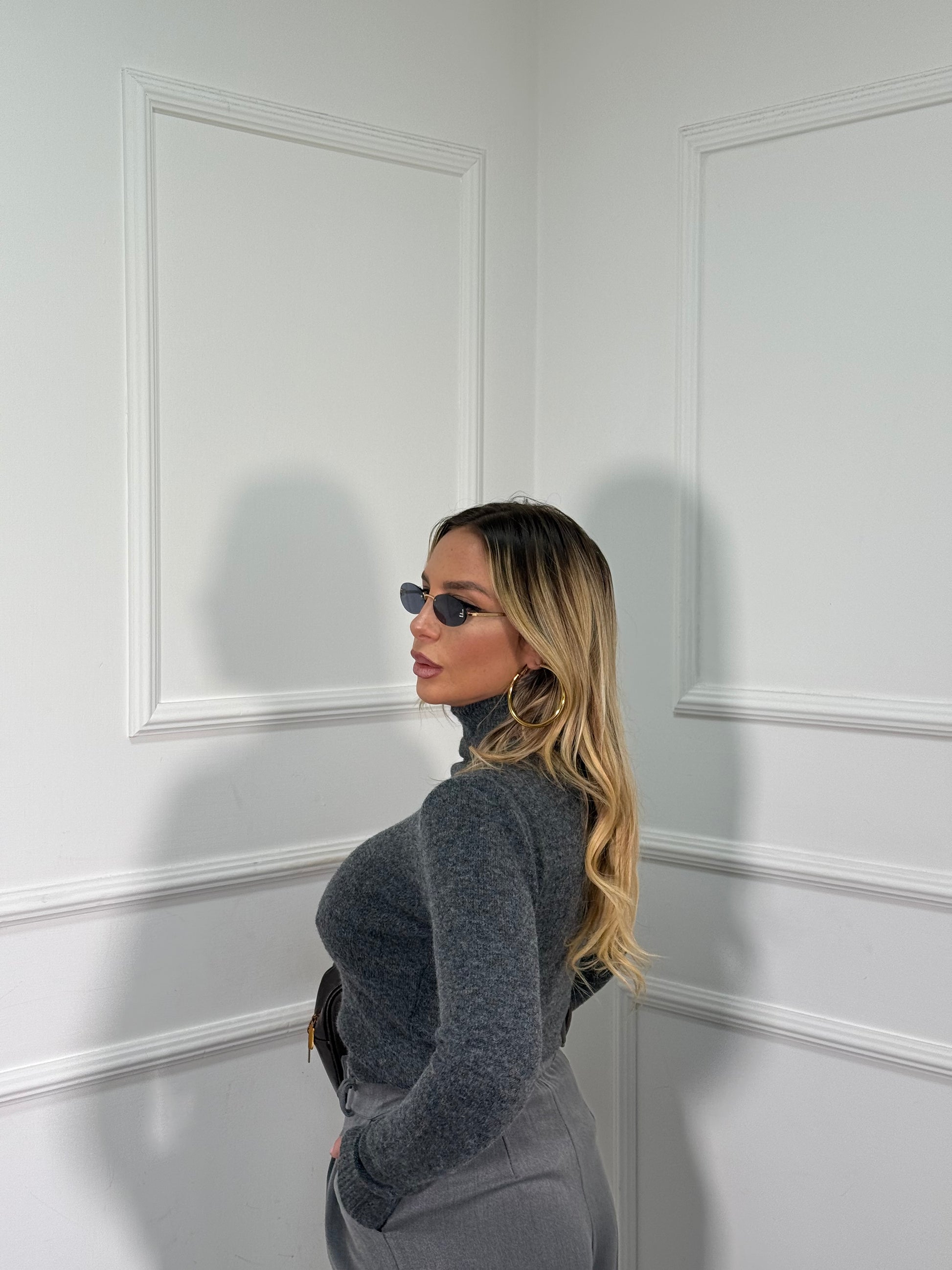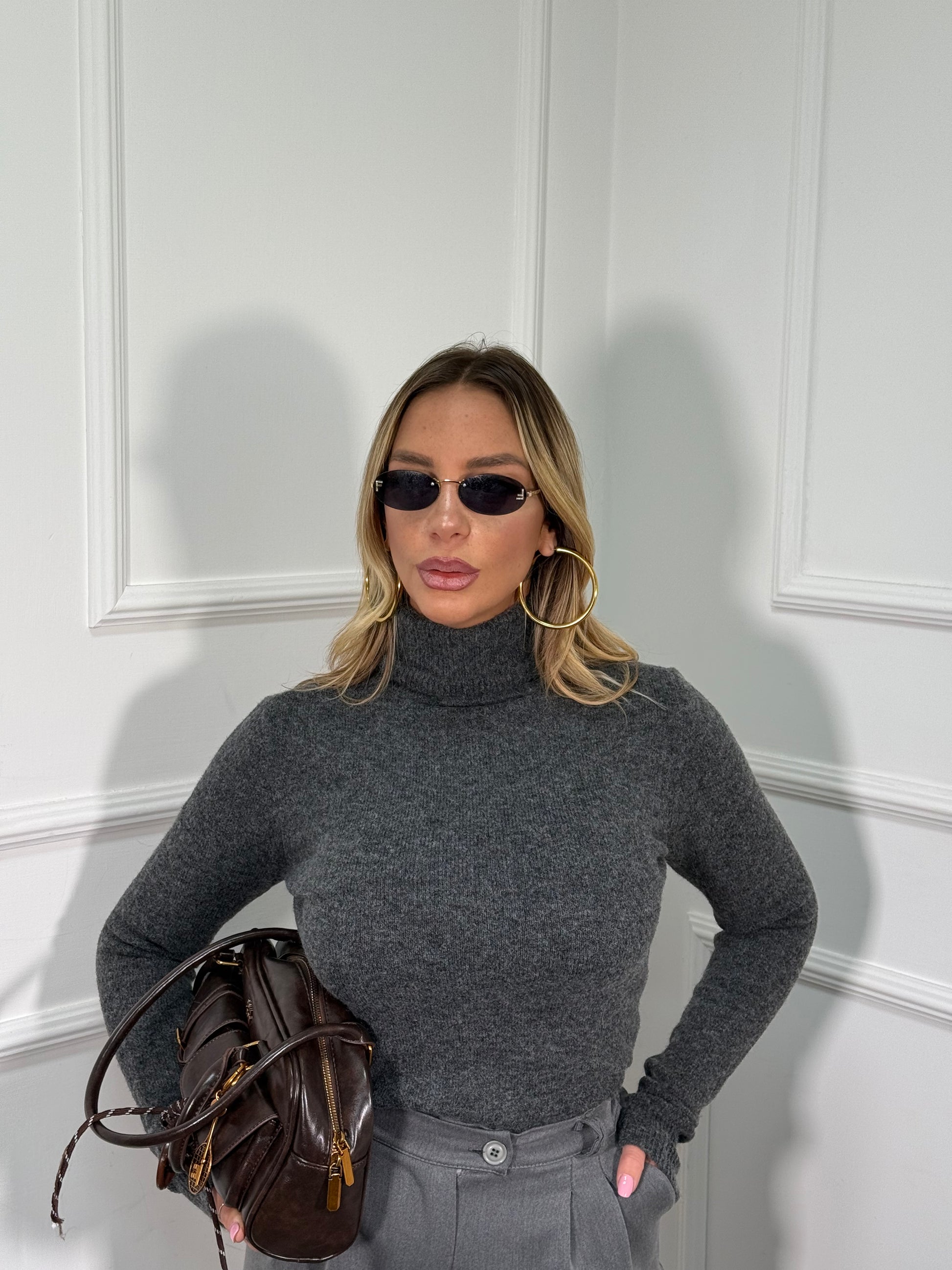 Maglioncino collo alto in lana cotta Everyday grigio fumo g091