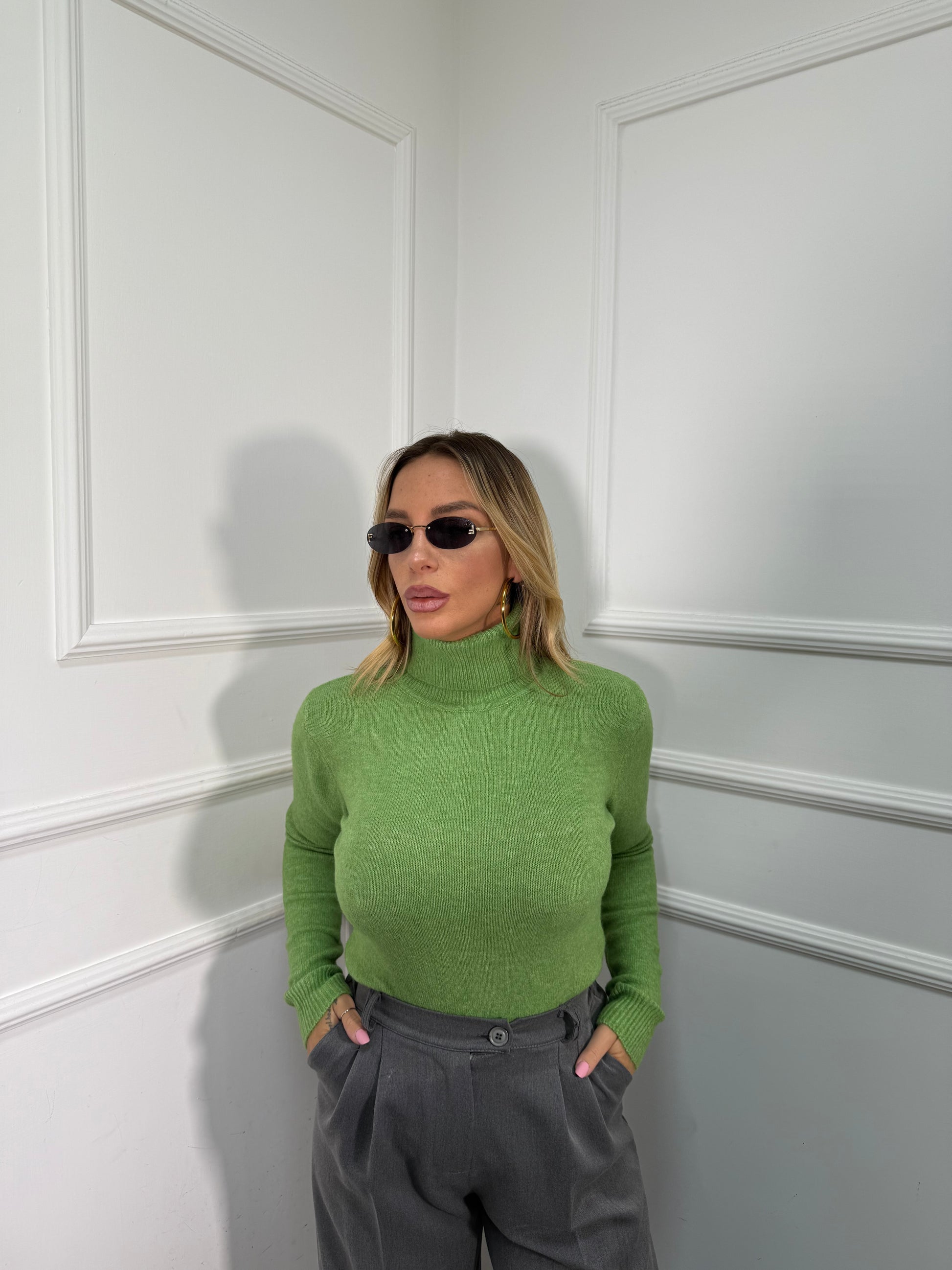 Maglioncino collo alto in lana cotta Everyday verde acido g091