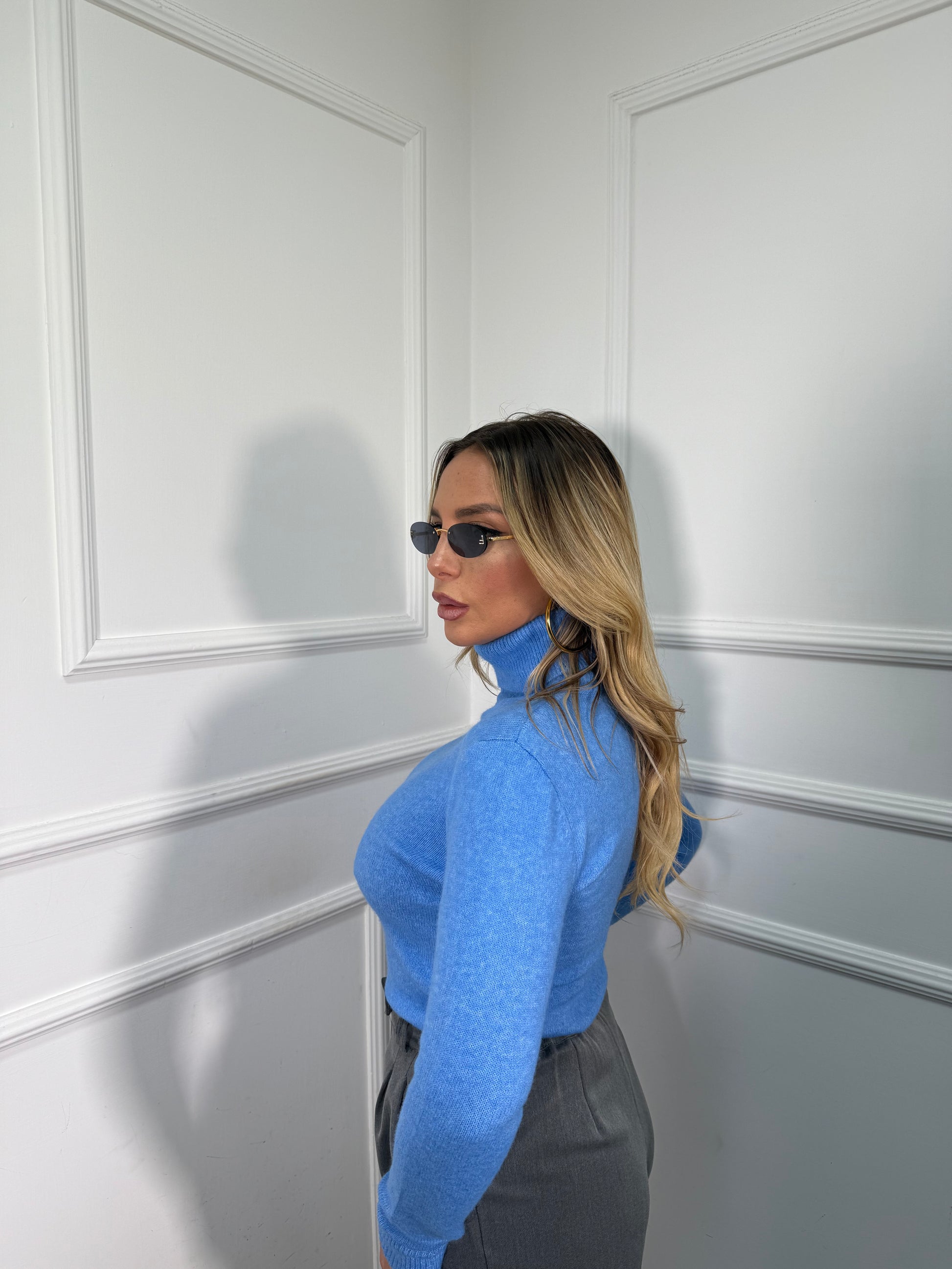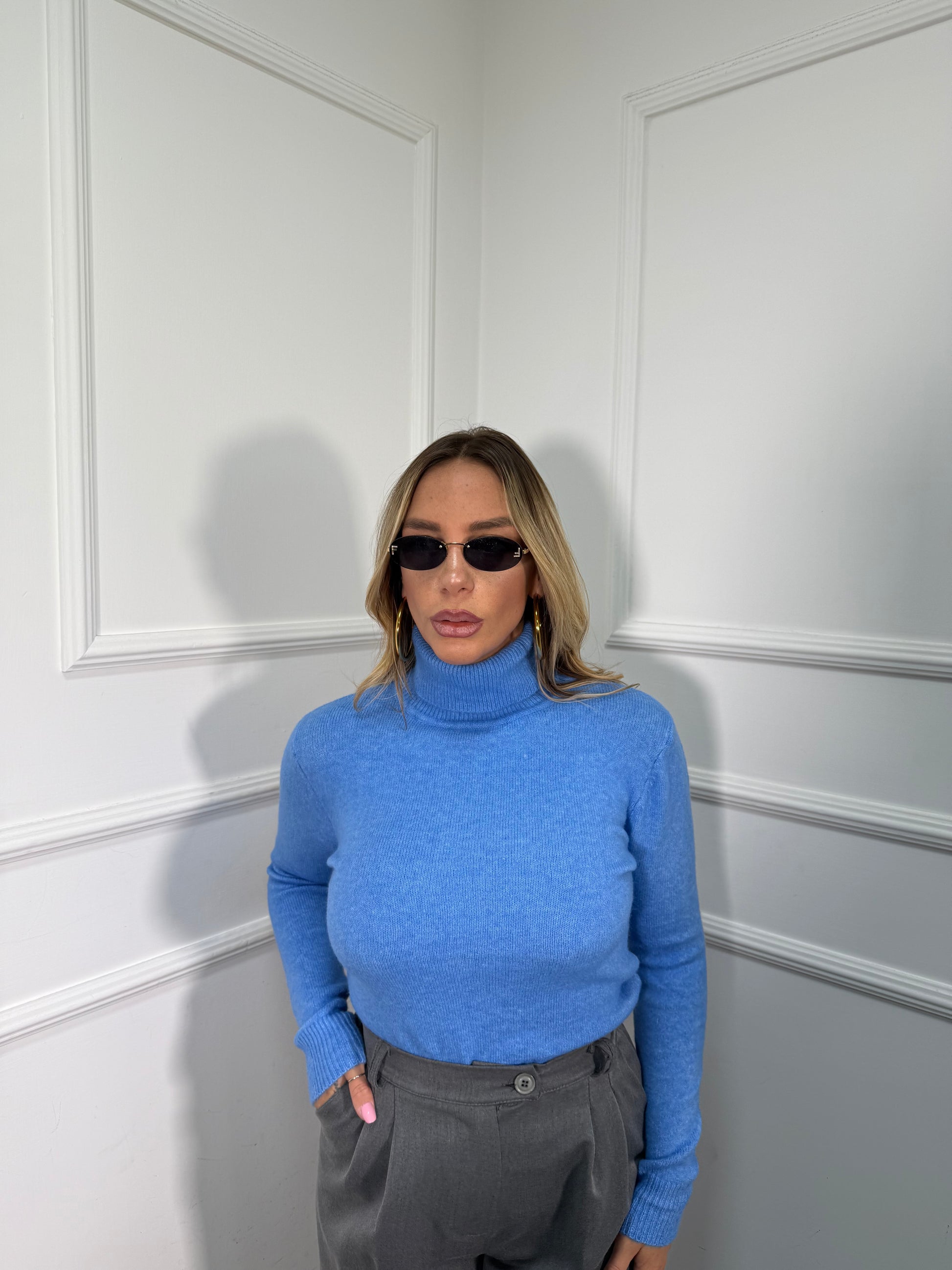 Maglioncino collo alto in lana cotta Everyday azzurro g091
