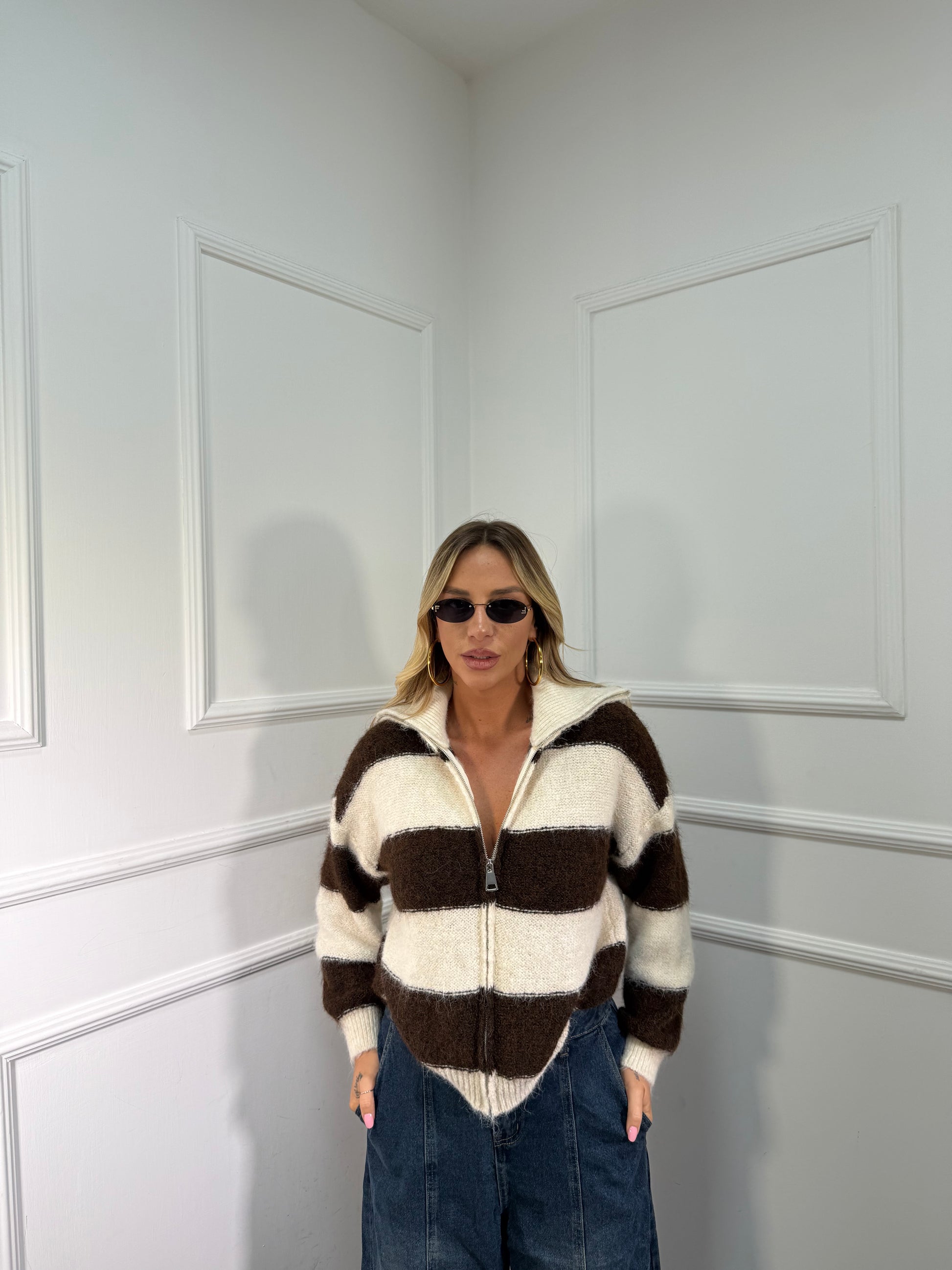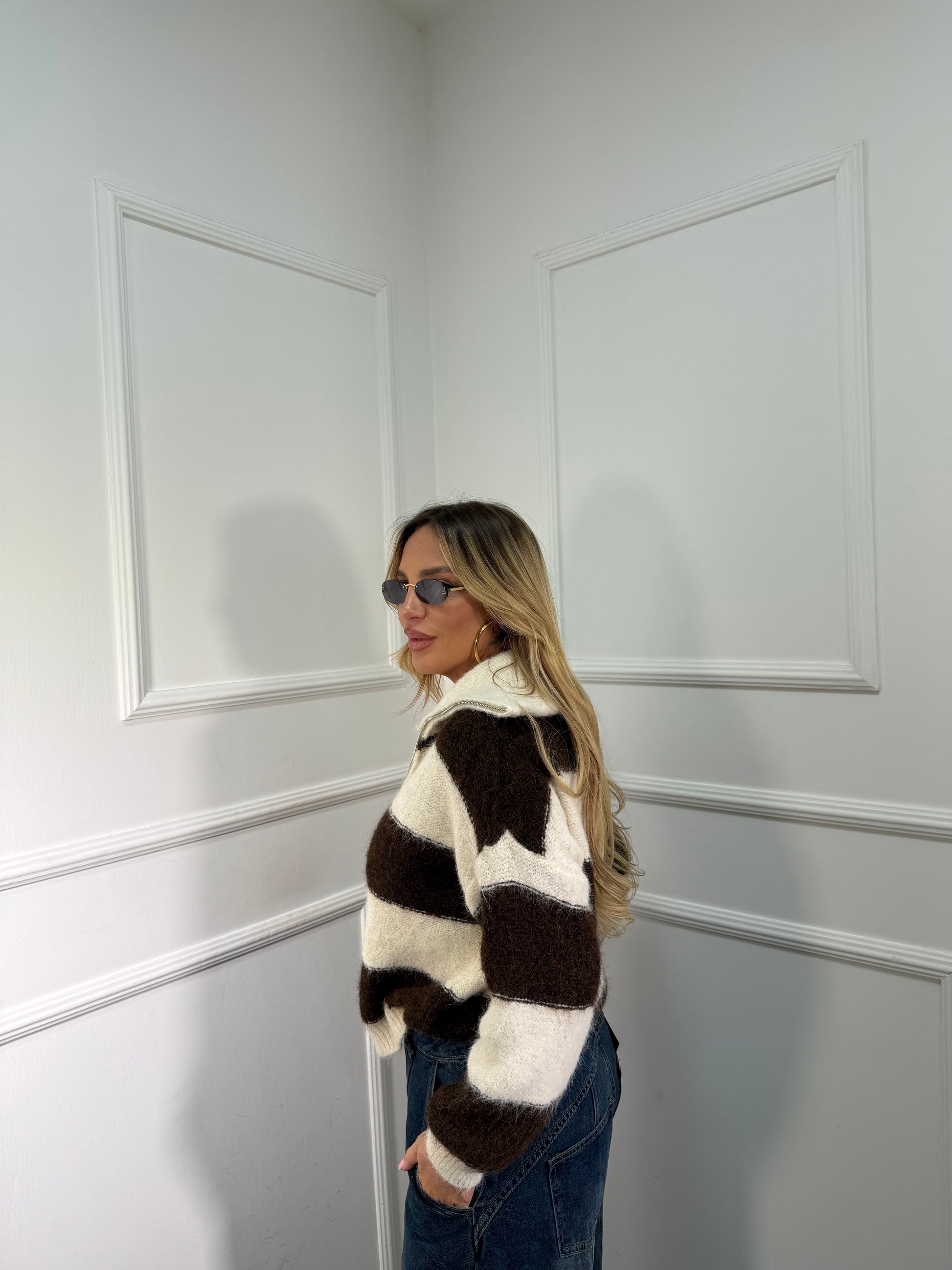 Maglioncino con zip misto lana panna/cacao 51201
