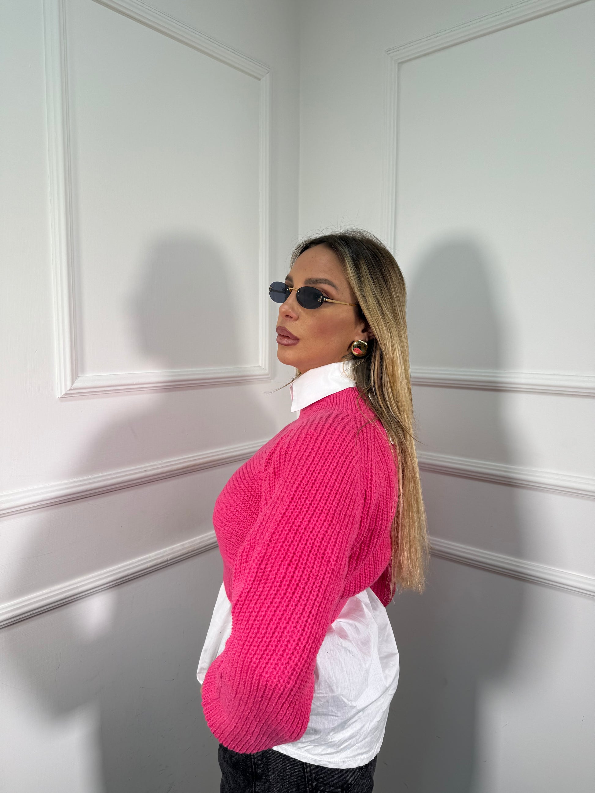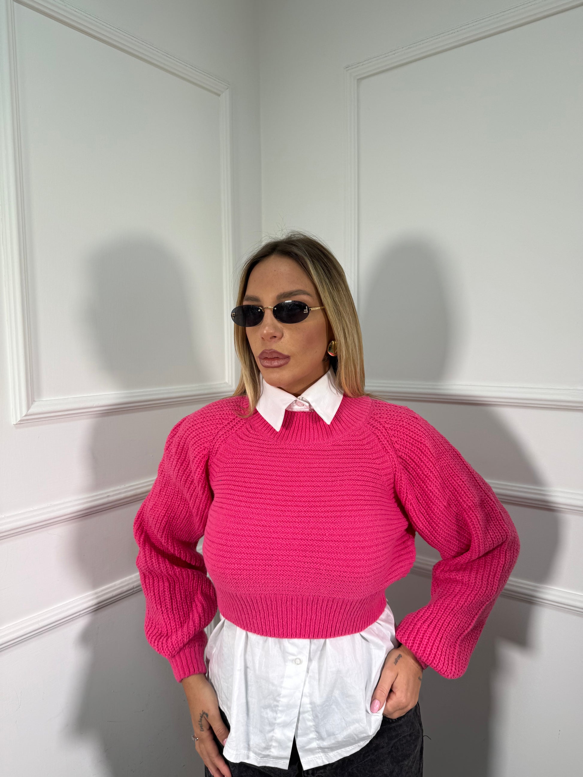Maglioncino crop manica balloon Sugar fucsia mi09