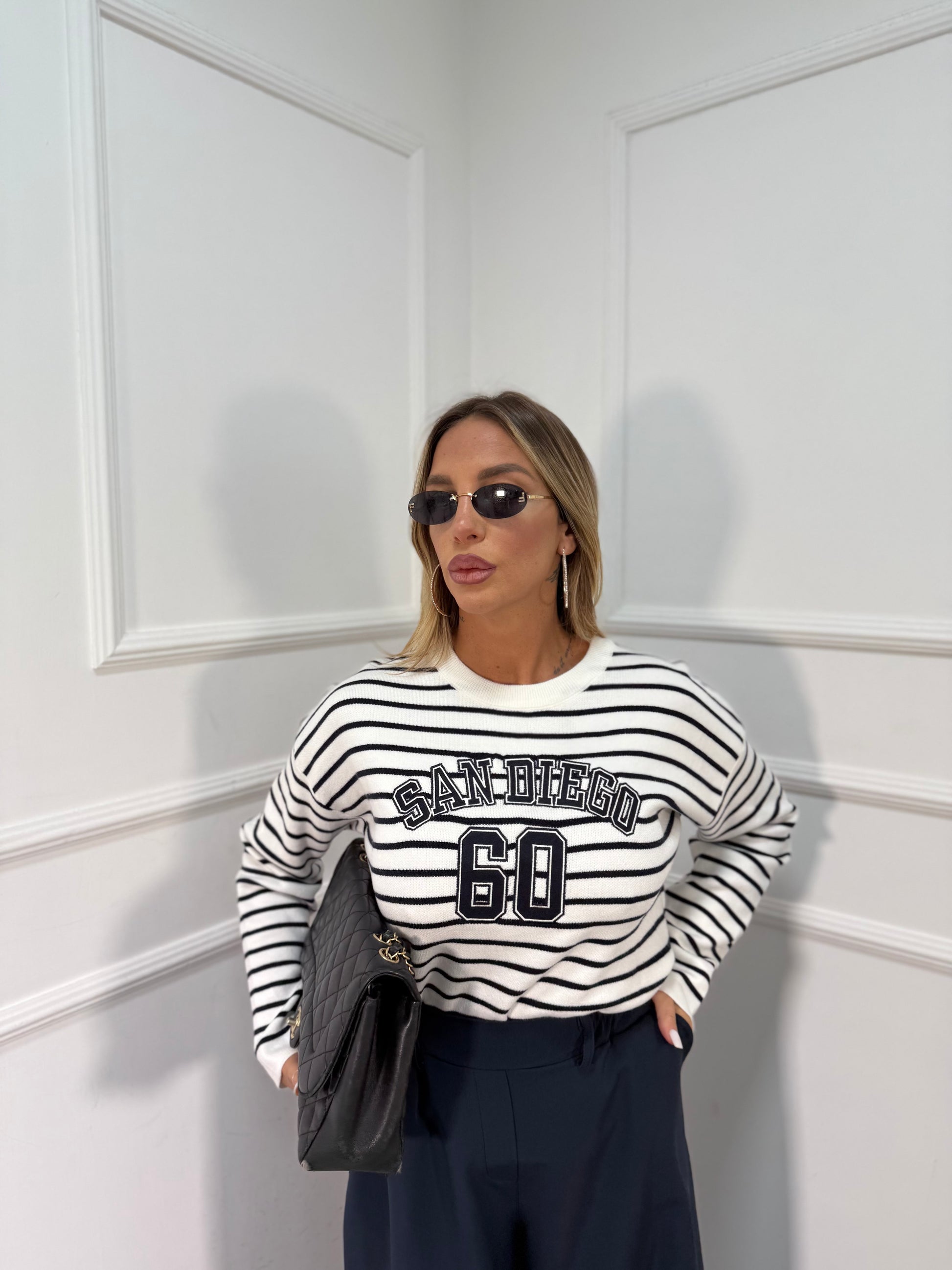 Maglioncino in lana rasata San Diego bianco/blu em522
