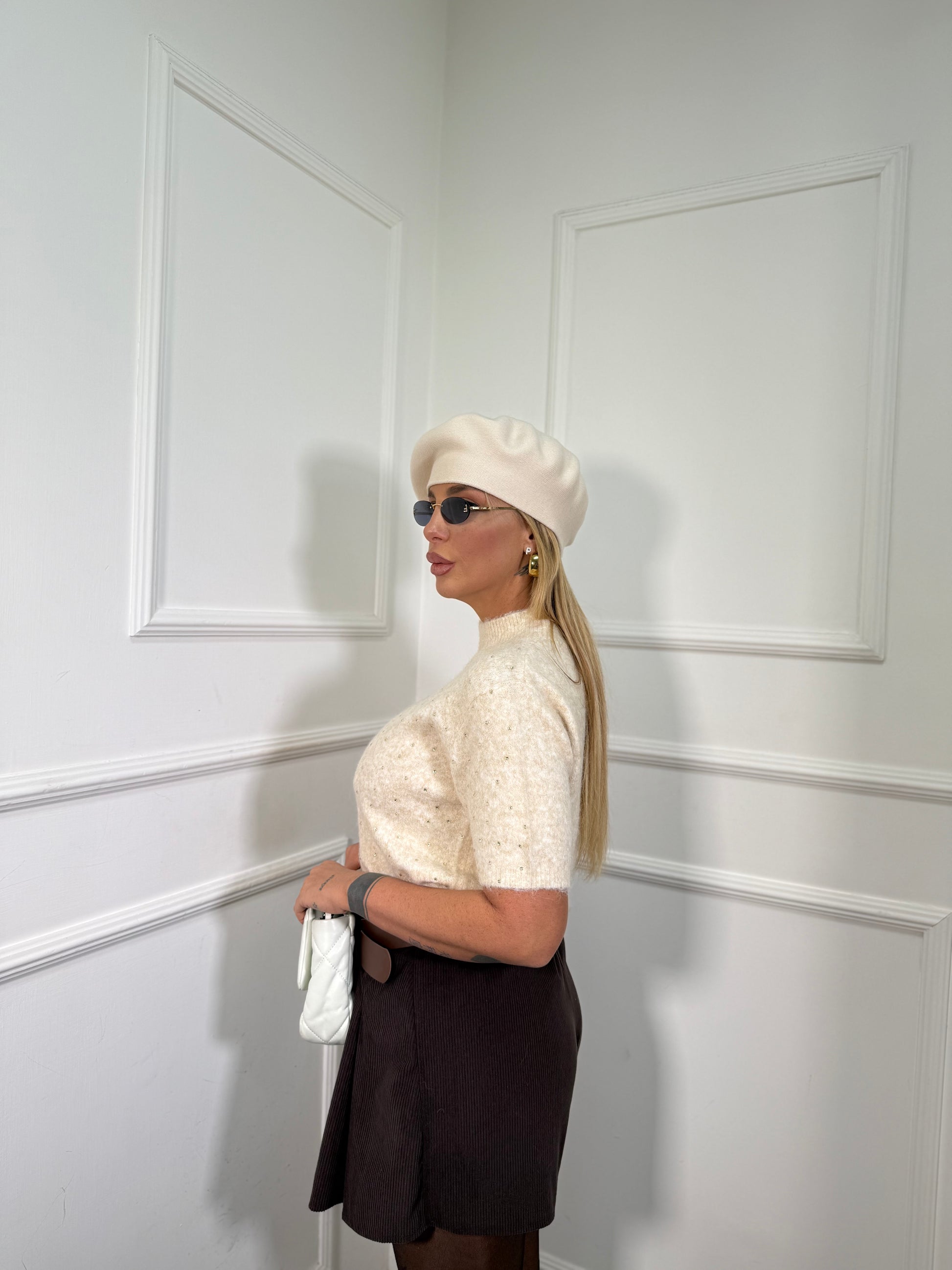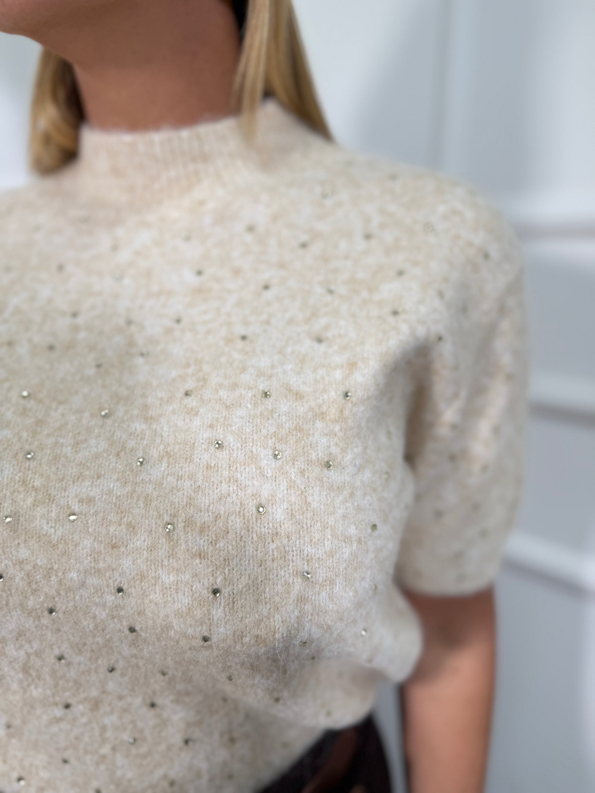 Maglioncino lana cotta con micro strass Doroty panna 10077