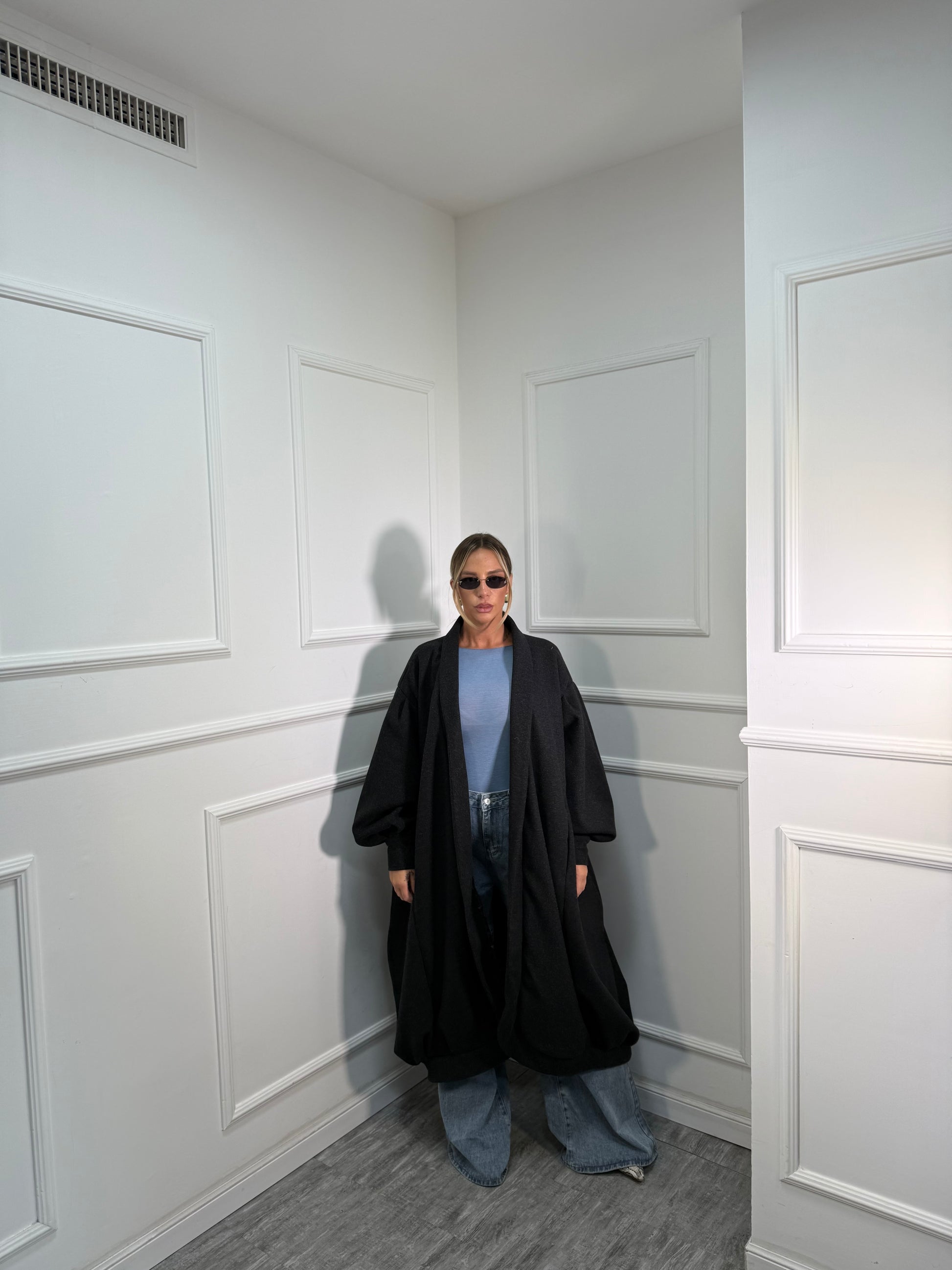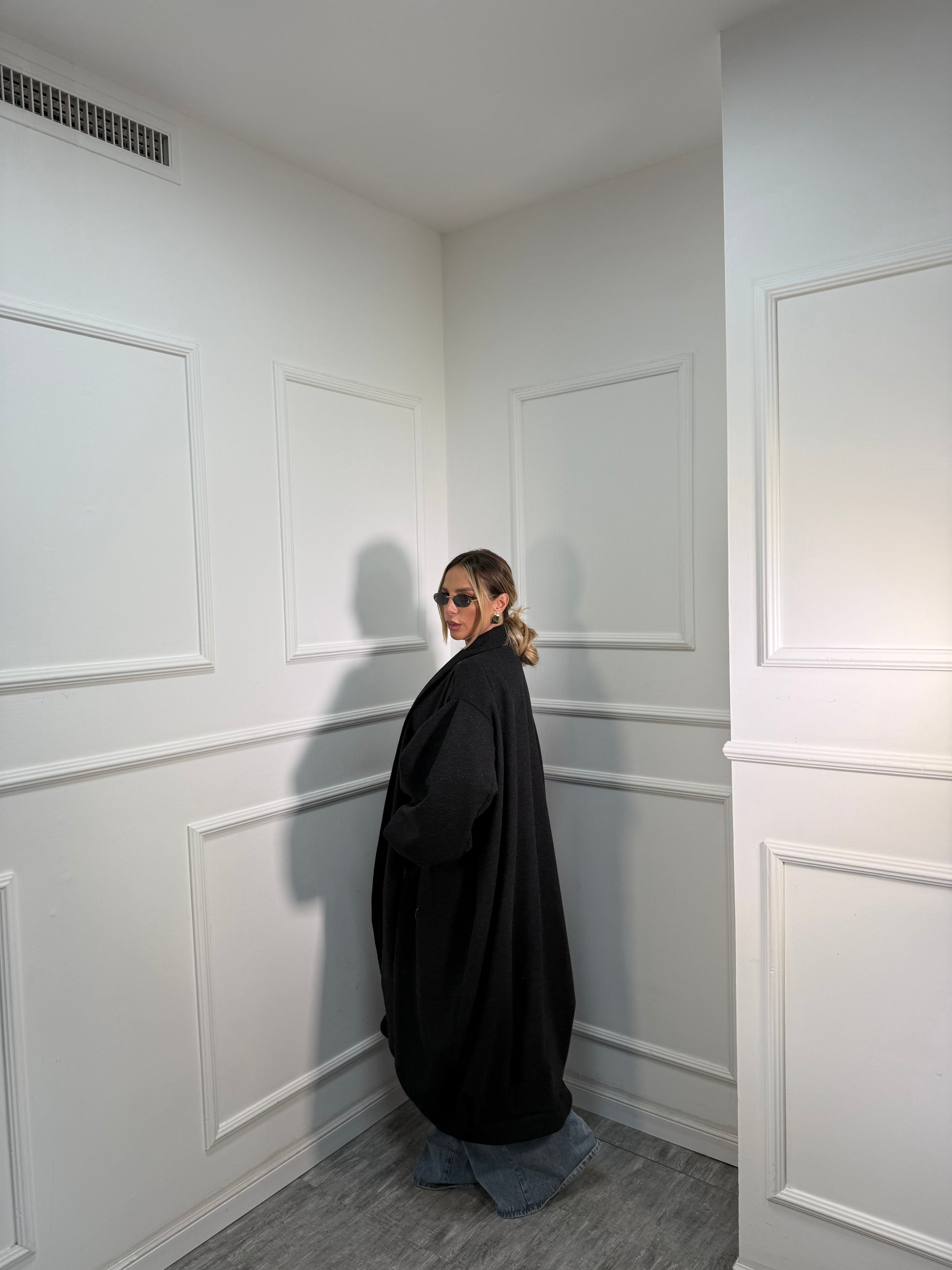 Cappotto over size in panno di lana con manica a sbuffo, tasche a filetto