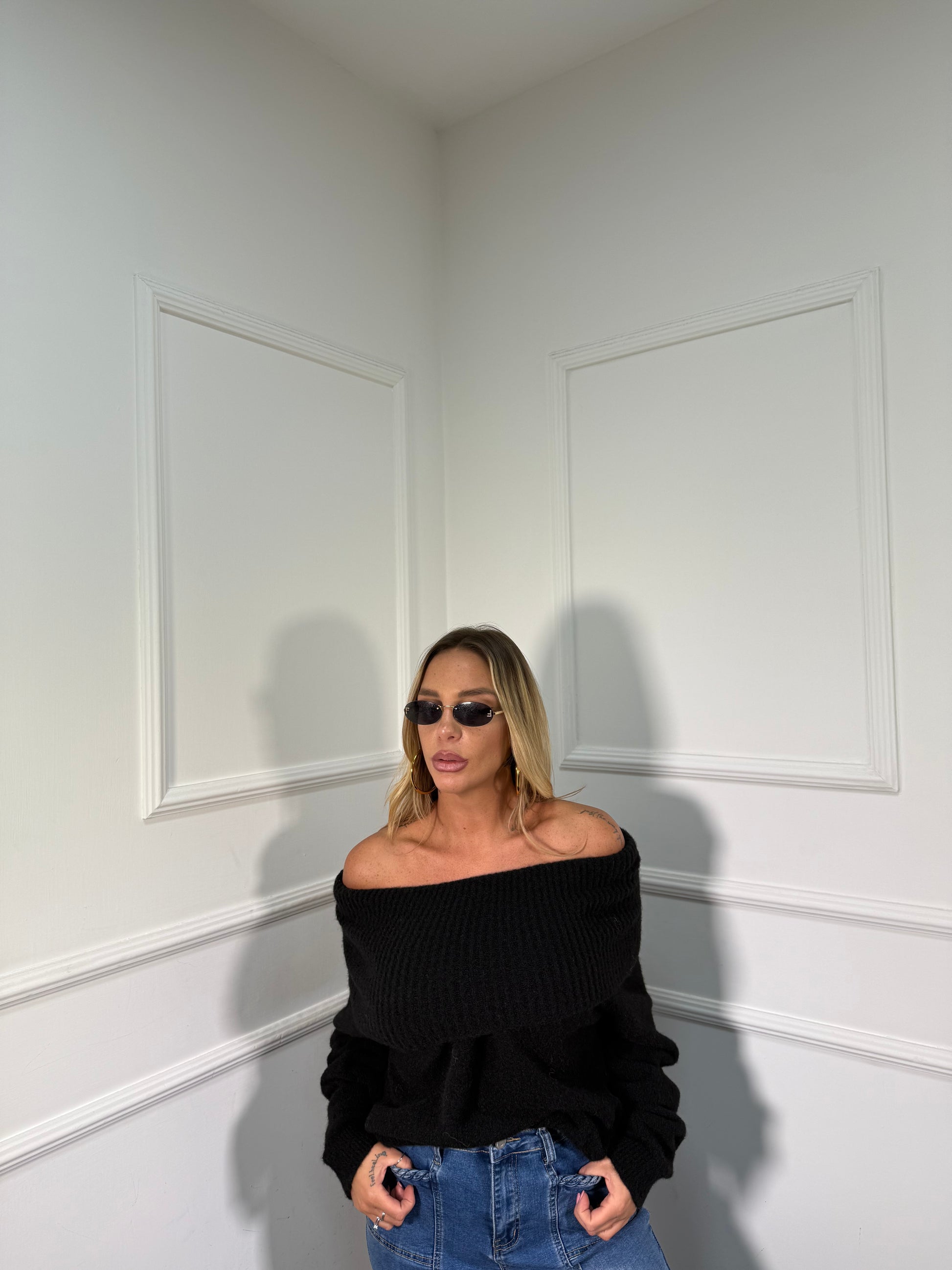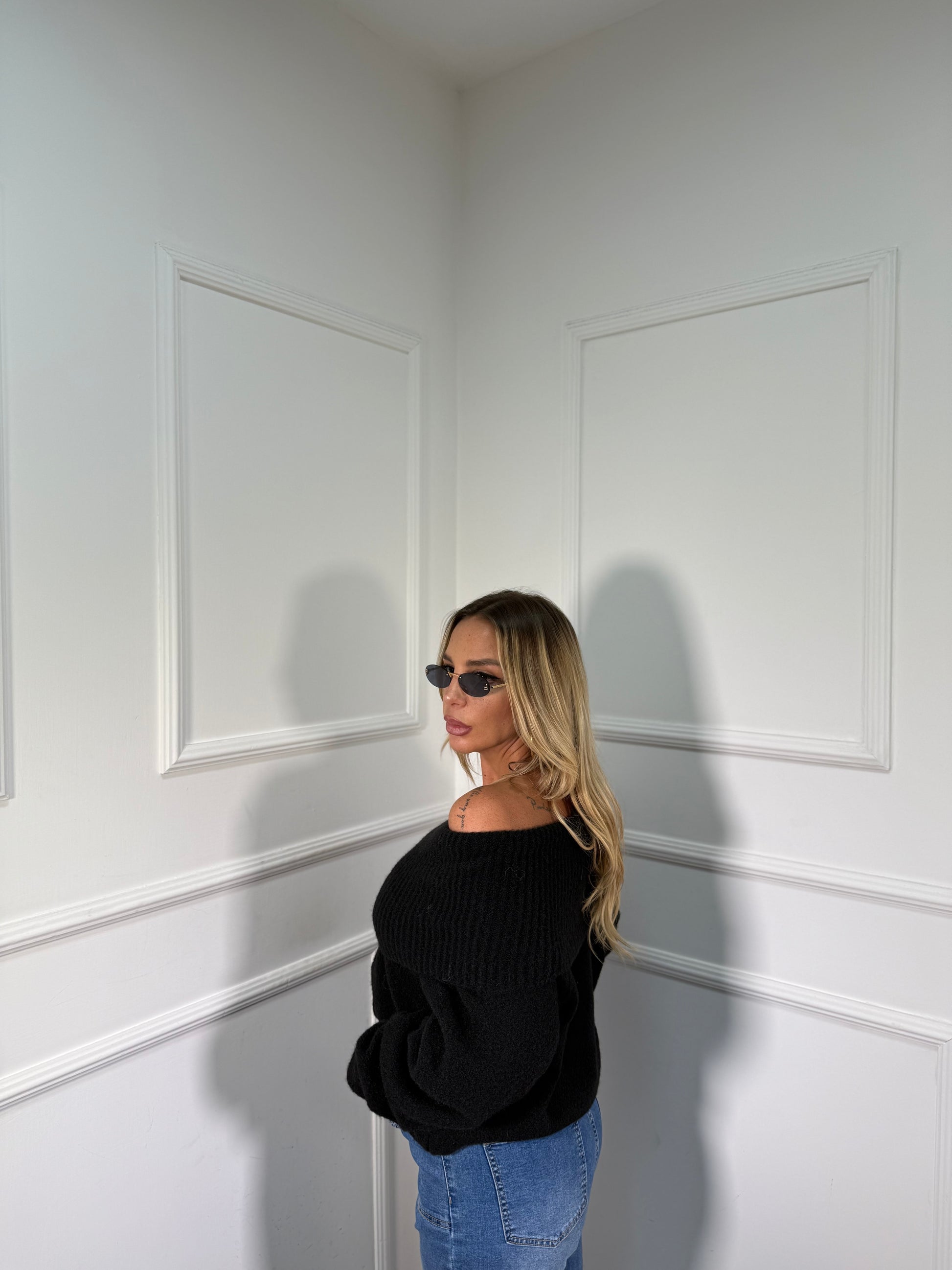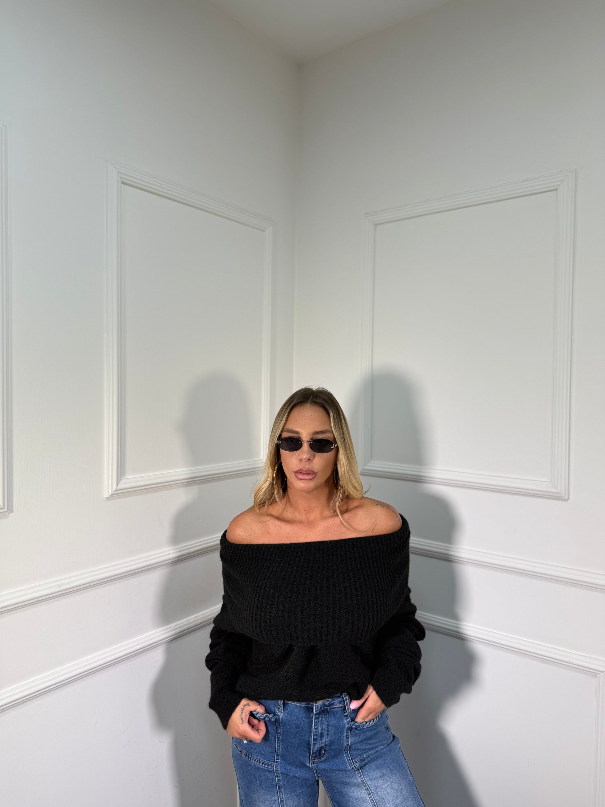 Maxi pull scollo a barca Candy nero 33895