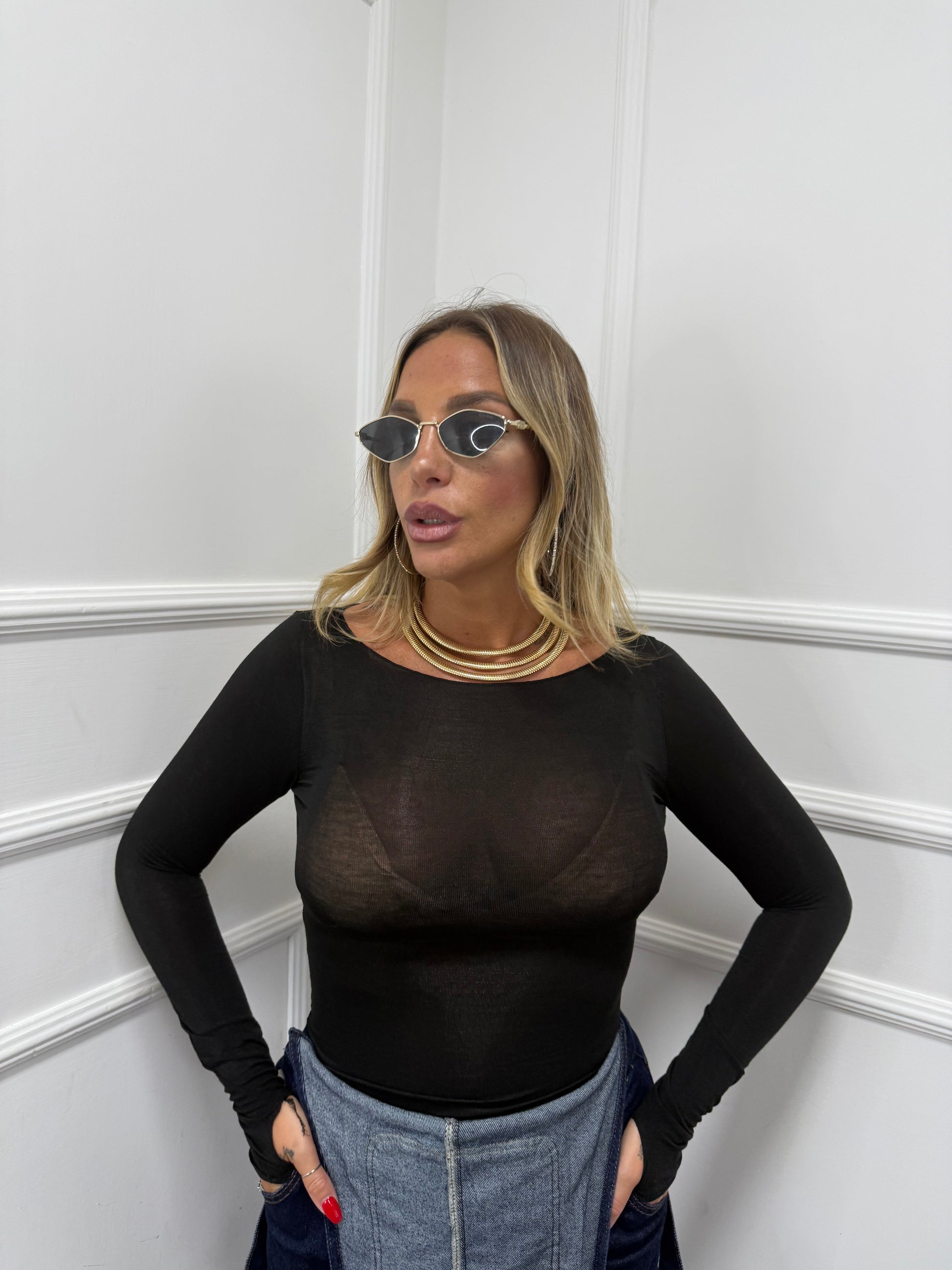 Body semi velato taglio vivo nero 0399