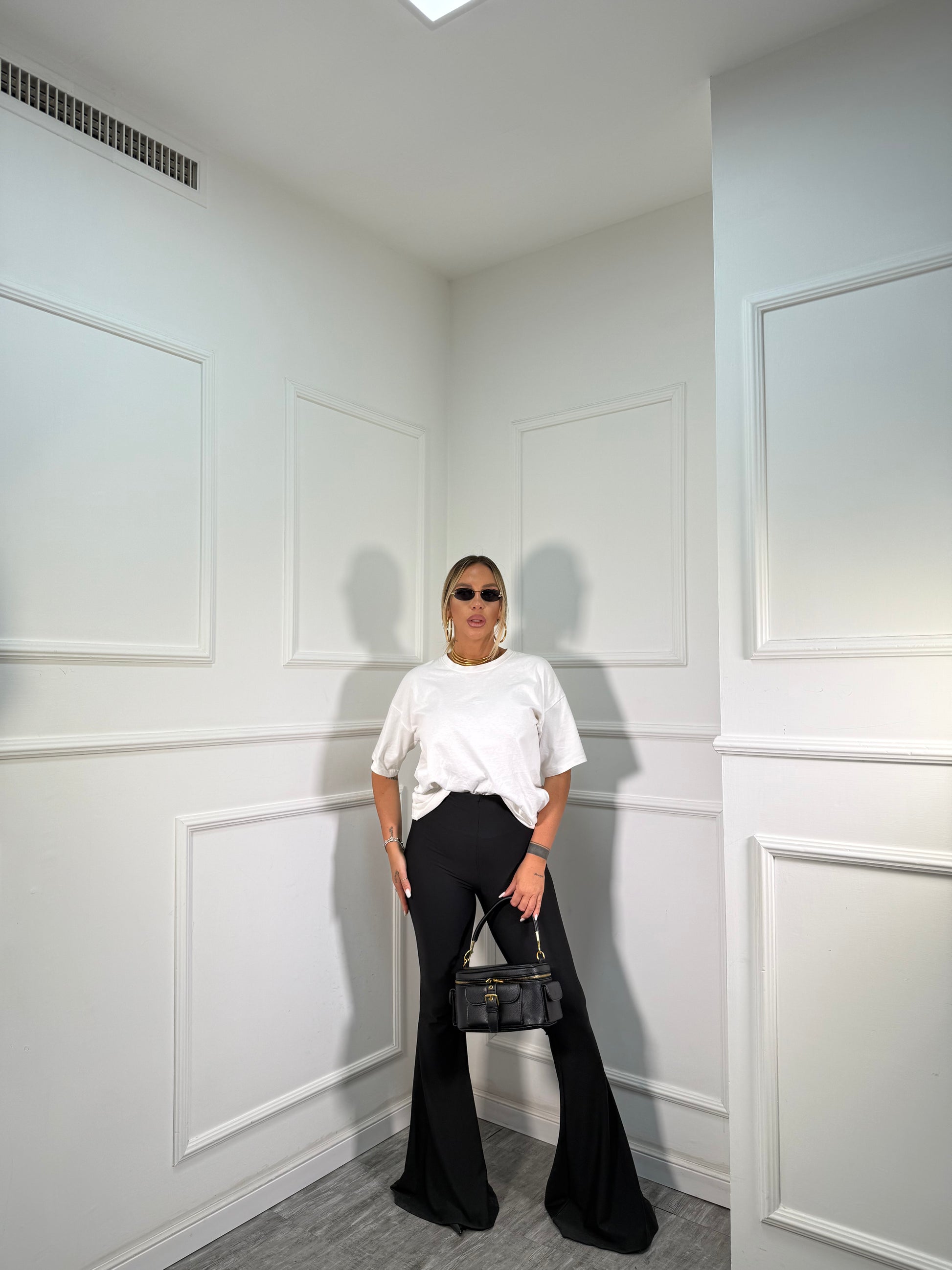 Pantaloni a zampa ampia in lycra contenitiva