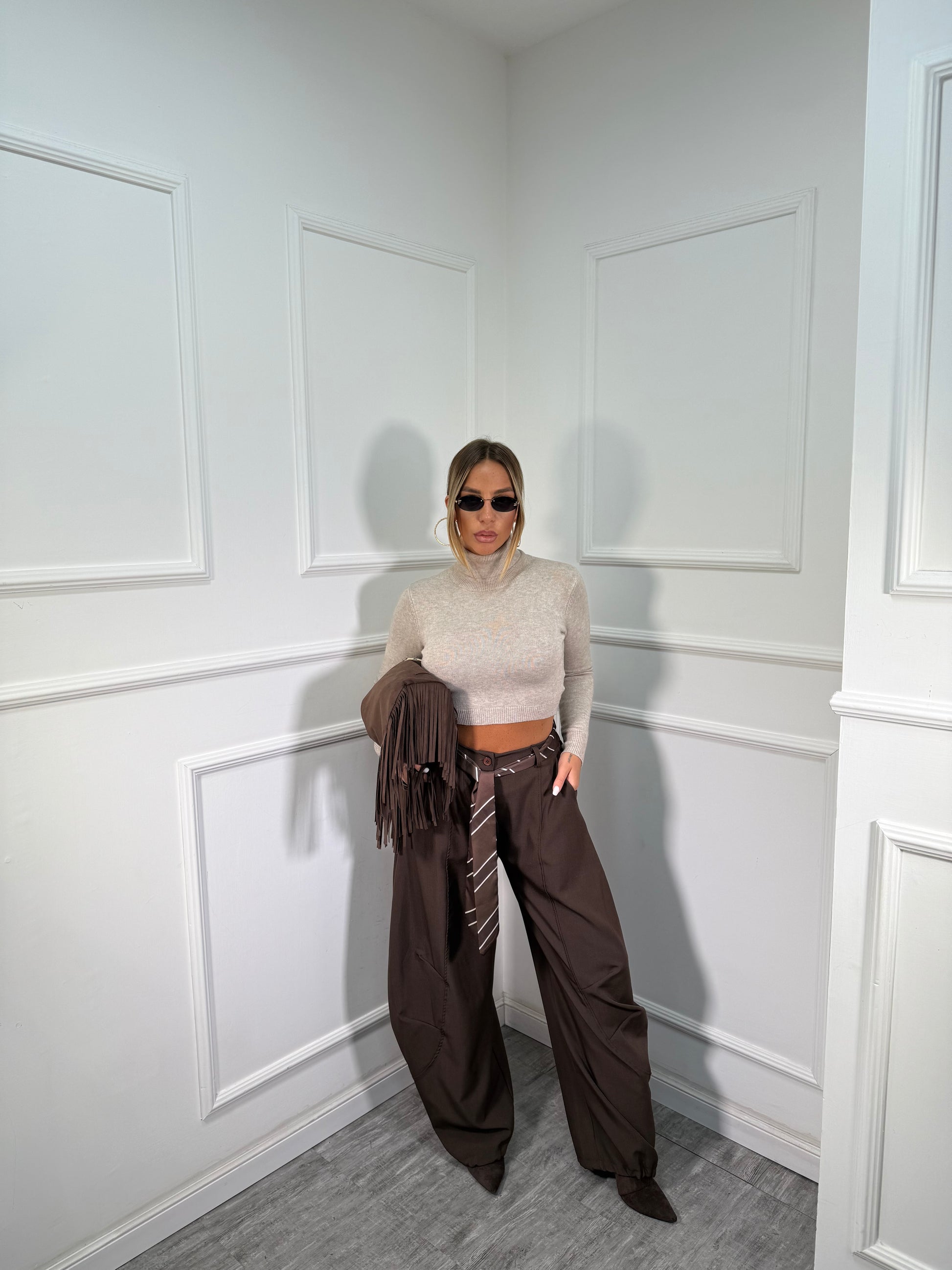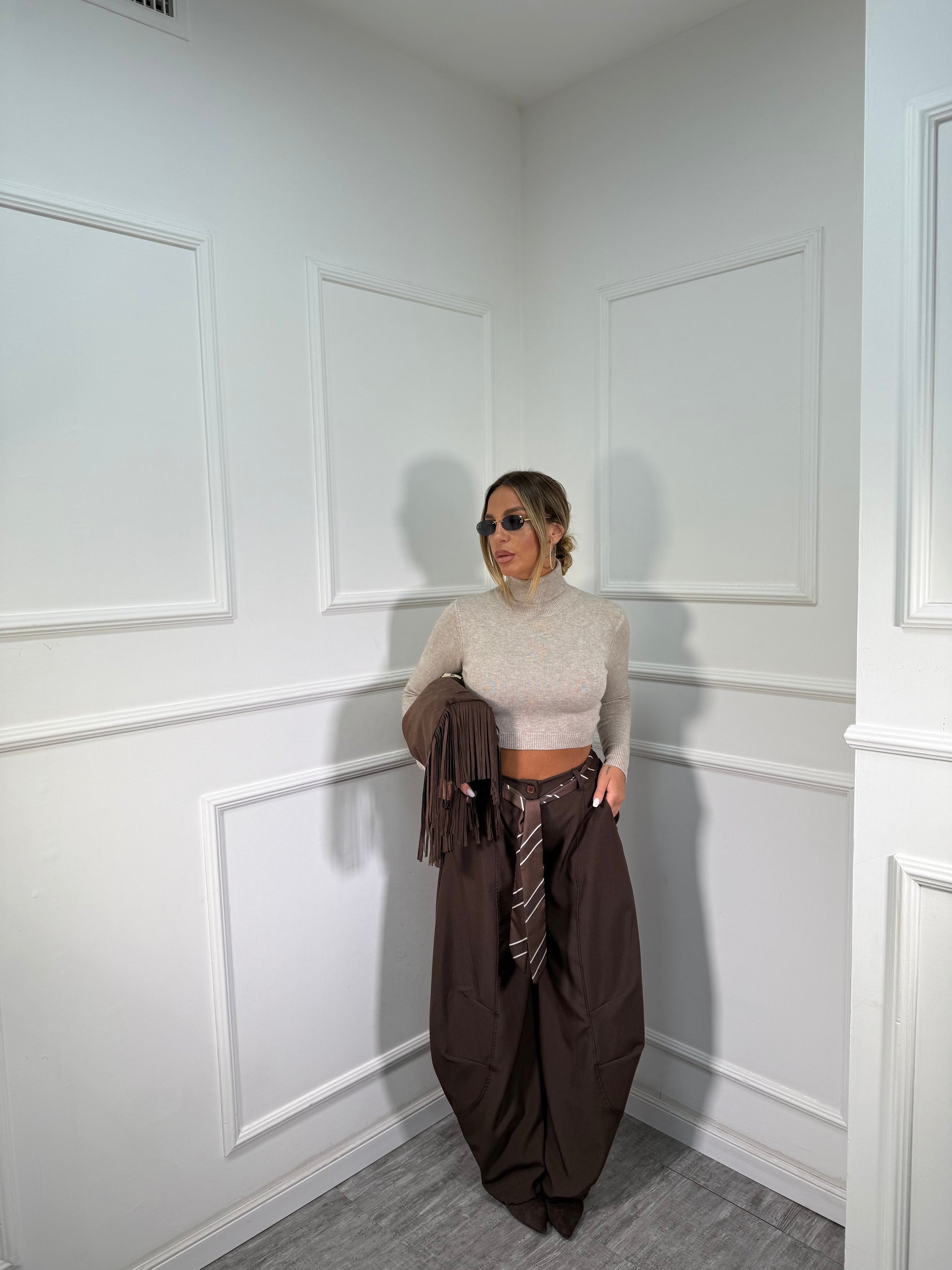 Pantaloni balloon con cravattino Allyson cioccolato my19589