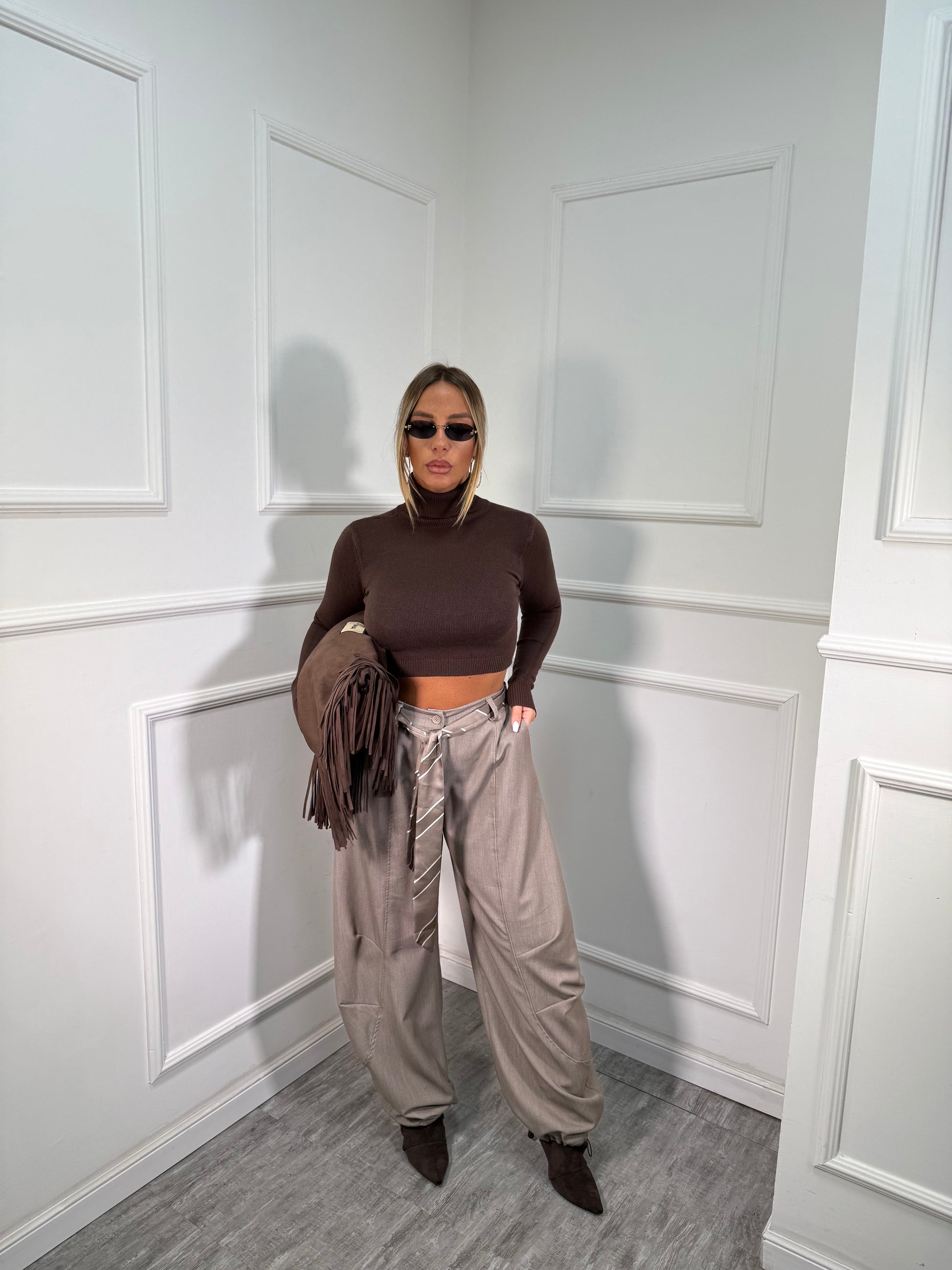 Pantaloni balloon con cravattino Allyson tortora my19589