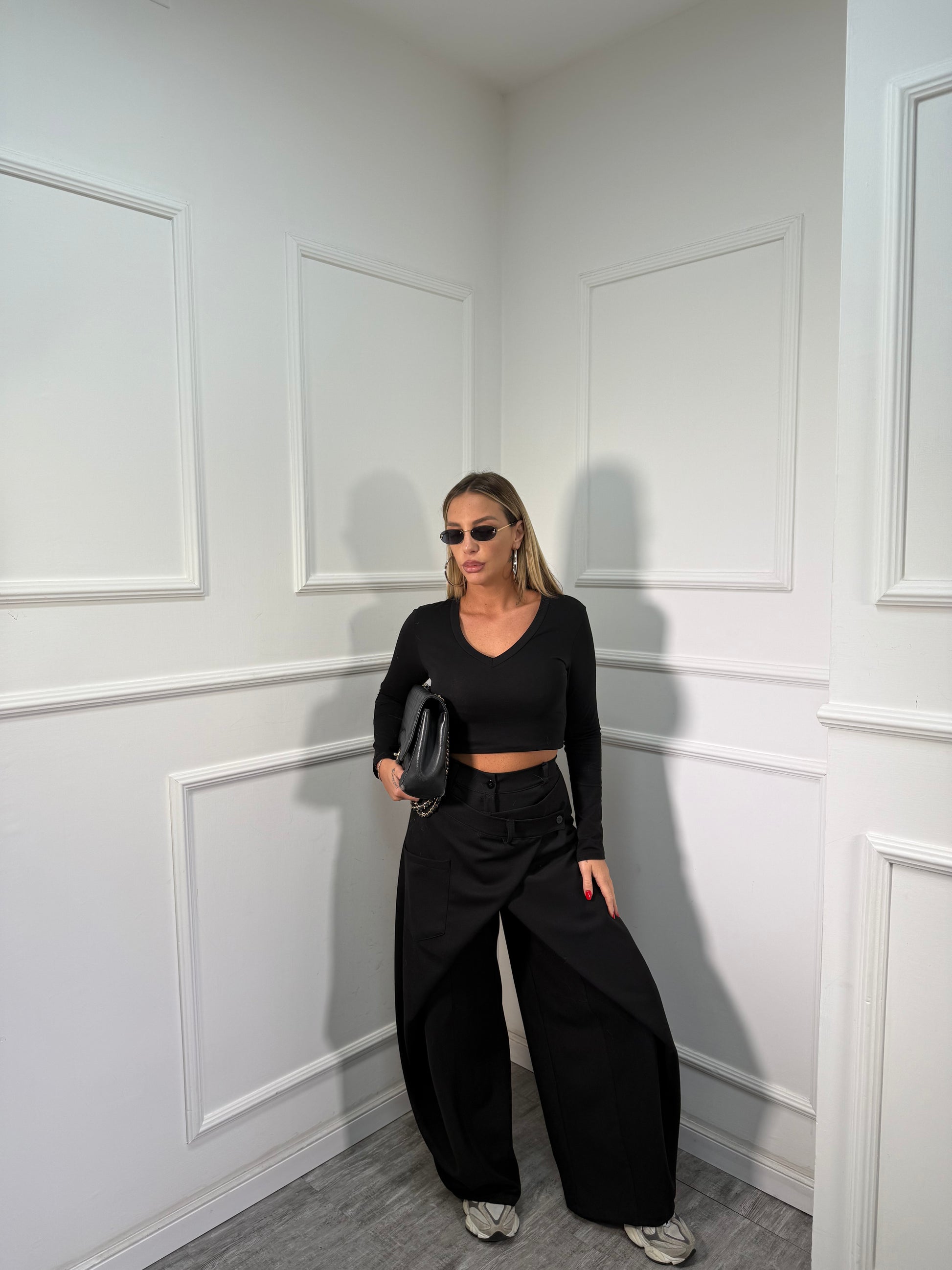 Pantaloni balloon doppio bustino asimmetrico Tokyo nero nf9251