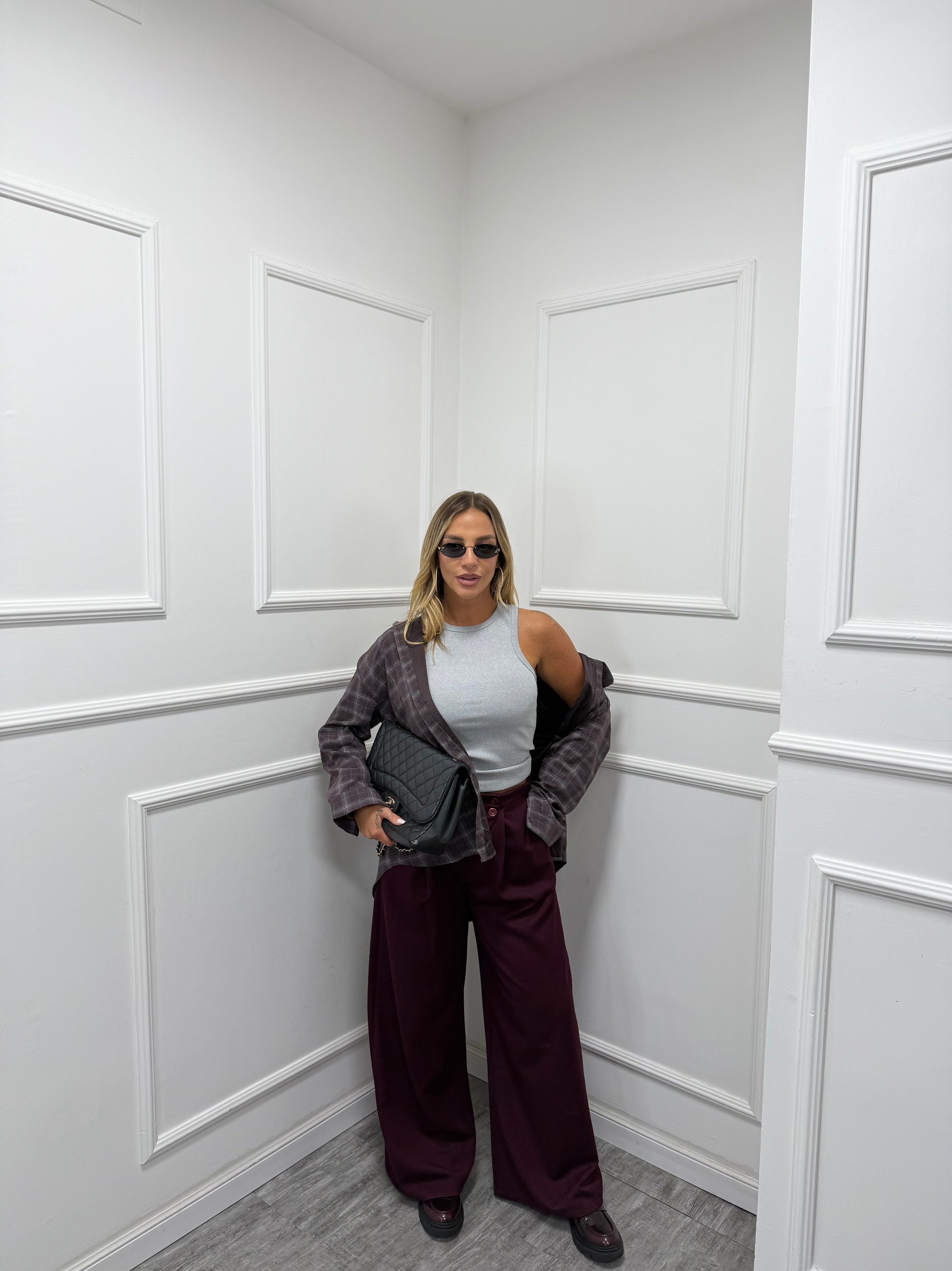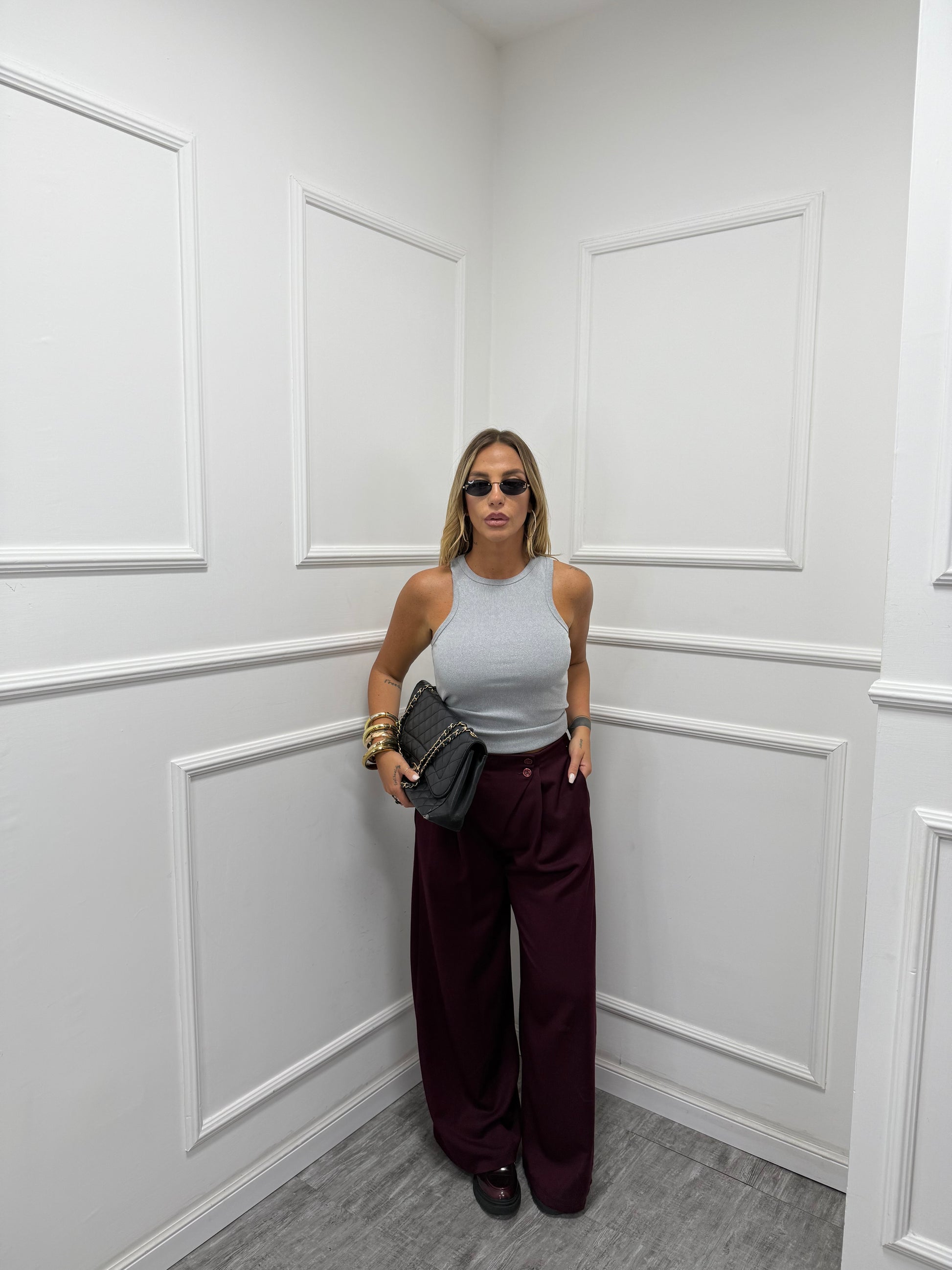 Pantaloni palazzo bustino asimmetrico Citylife vinaccia 12728