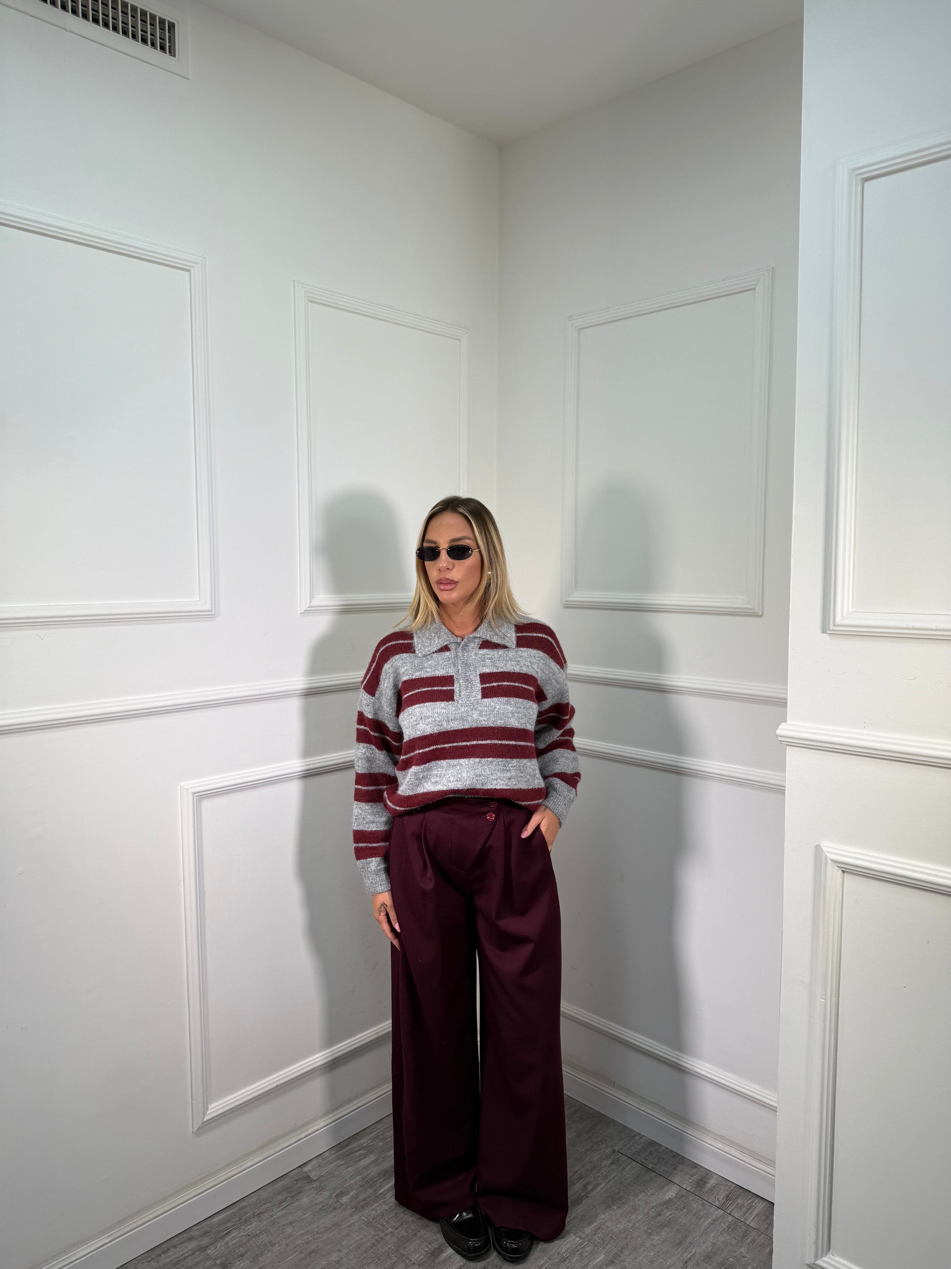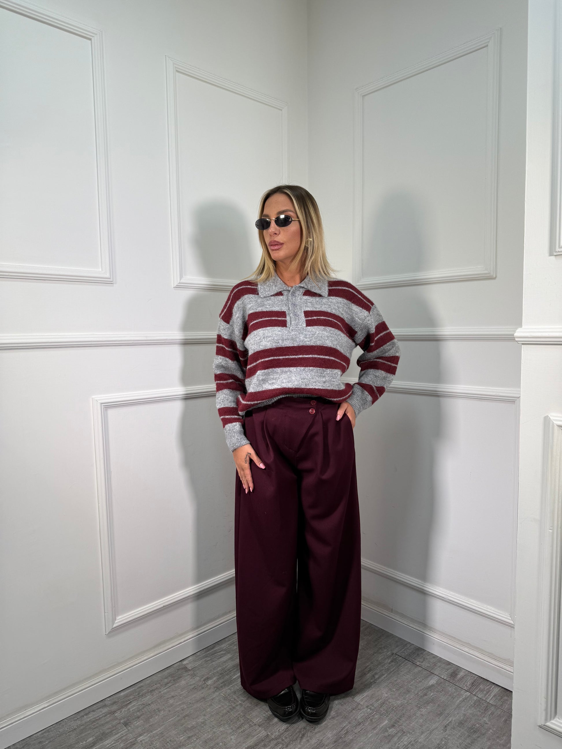 Pantaloni palazzo bustino asimmetrico Citylife vinaccia 12728