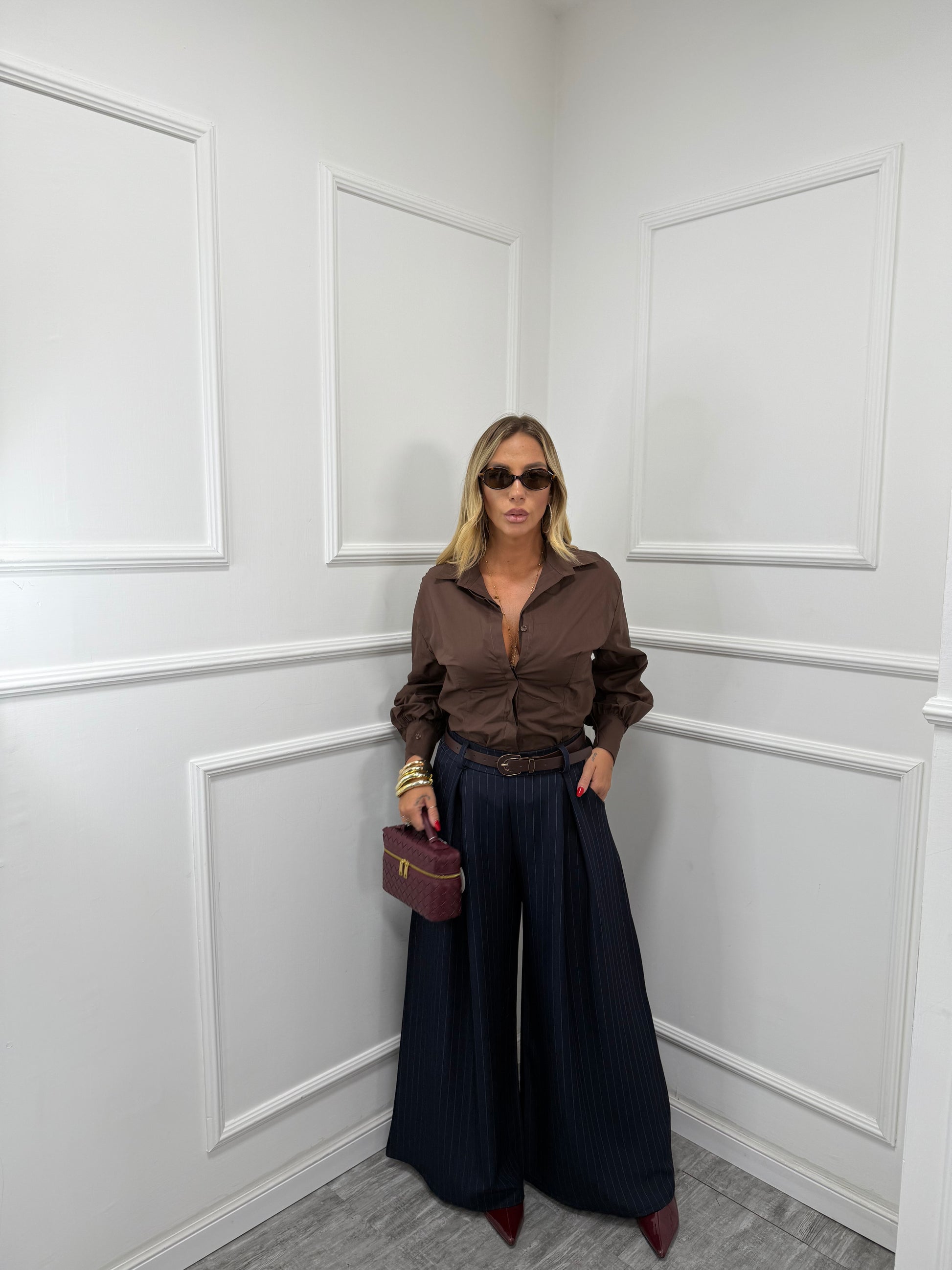 Pantaloni palazzo gessato Seattle blu notte 10226
