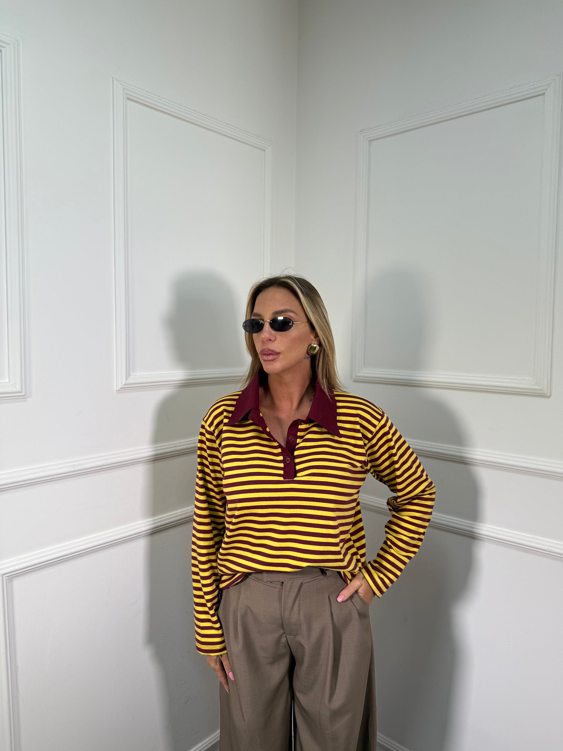 Polo a righe in cotone City vinaccia/giallo 22645