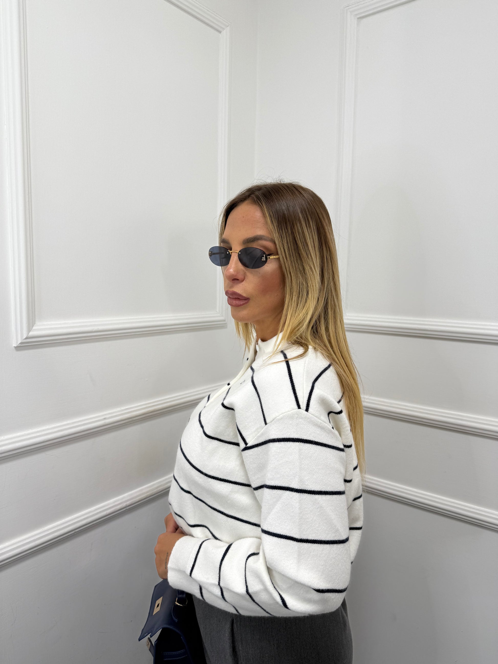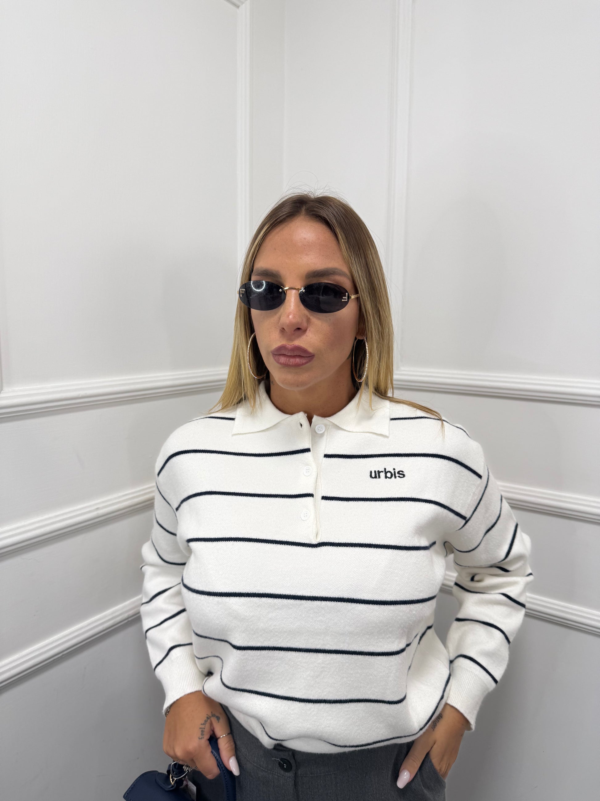 Polo a righe lana pettinata Urbis bianca/blu 93012