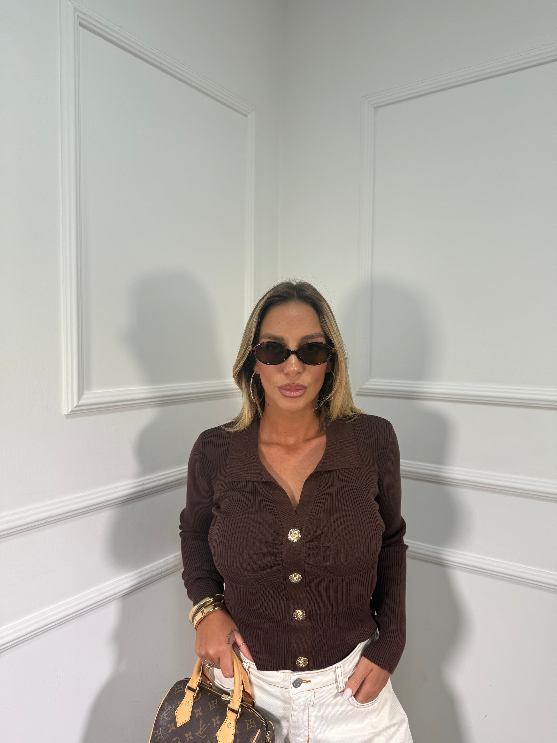 Polo in lana pettinata a costine Roses cioccolato zm13157