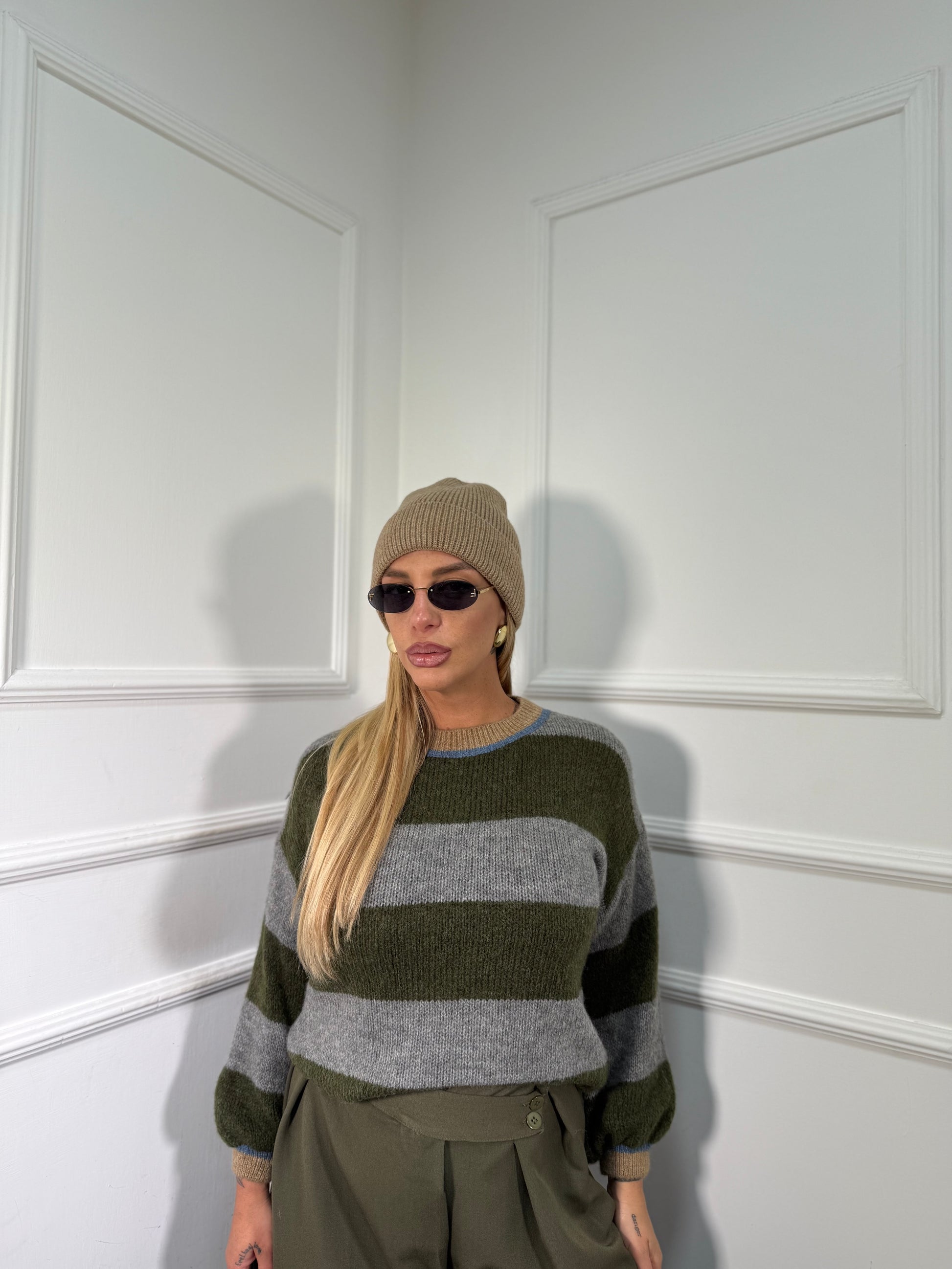 Pullover lana cotta Sezanne grigio/oliva 3110