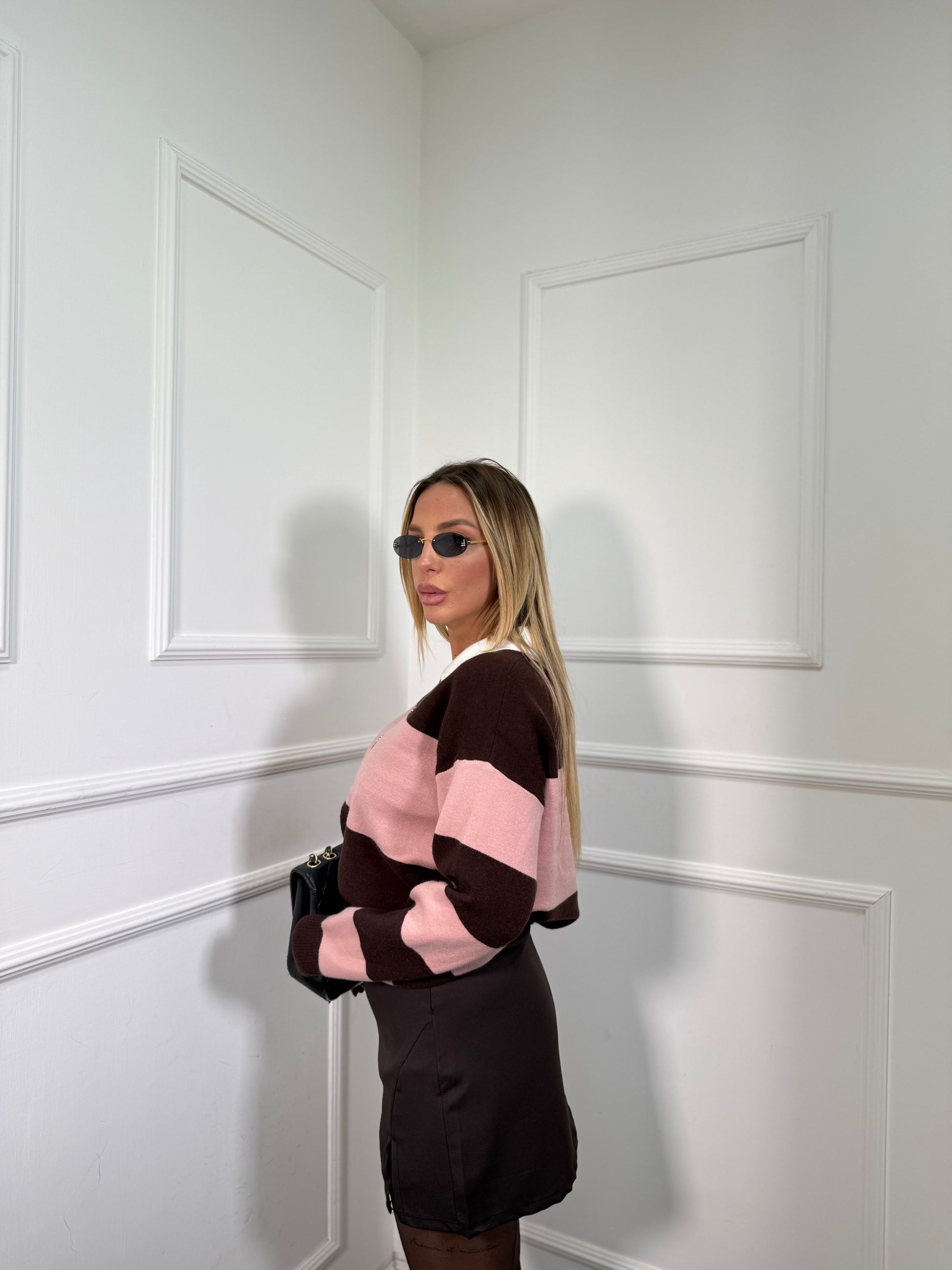 Pullover Polo lana rasata Coffee rosa blush/cacao yhc7224