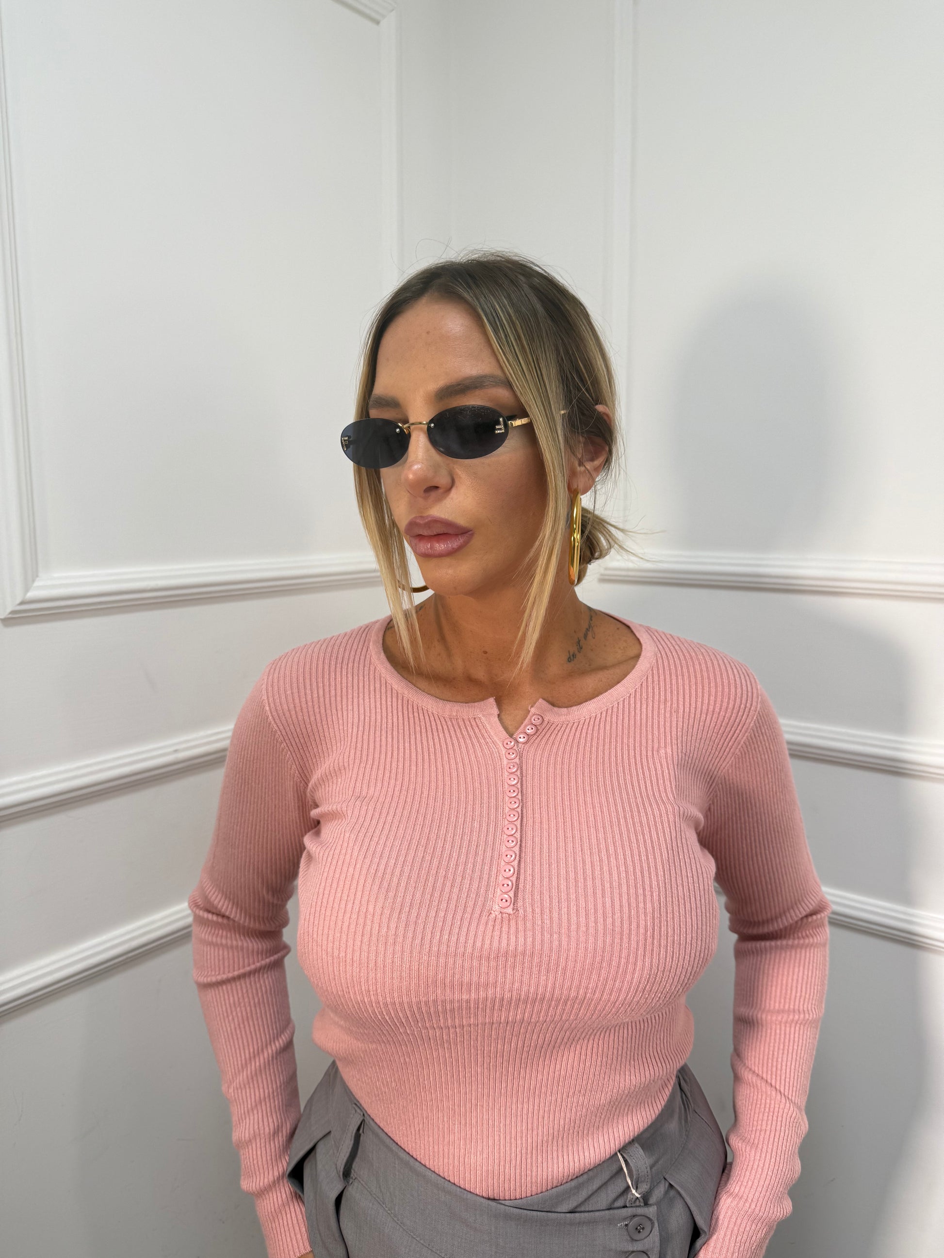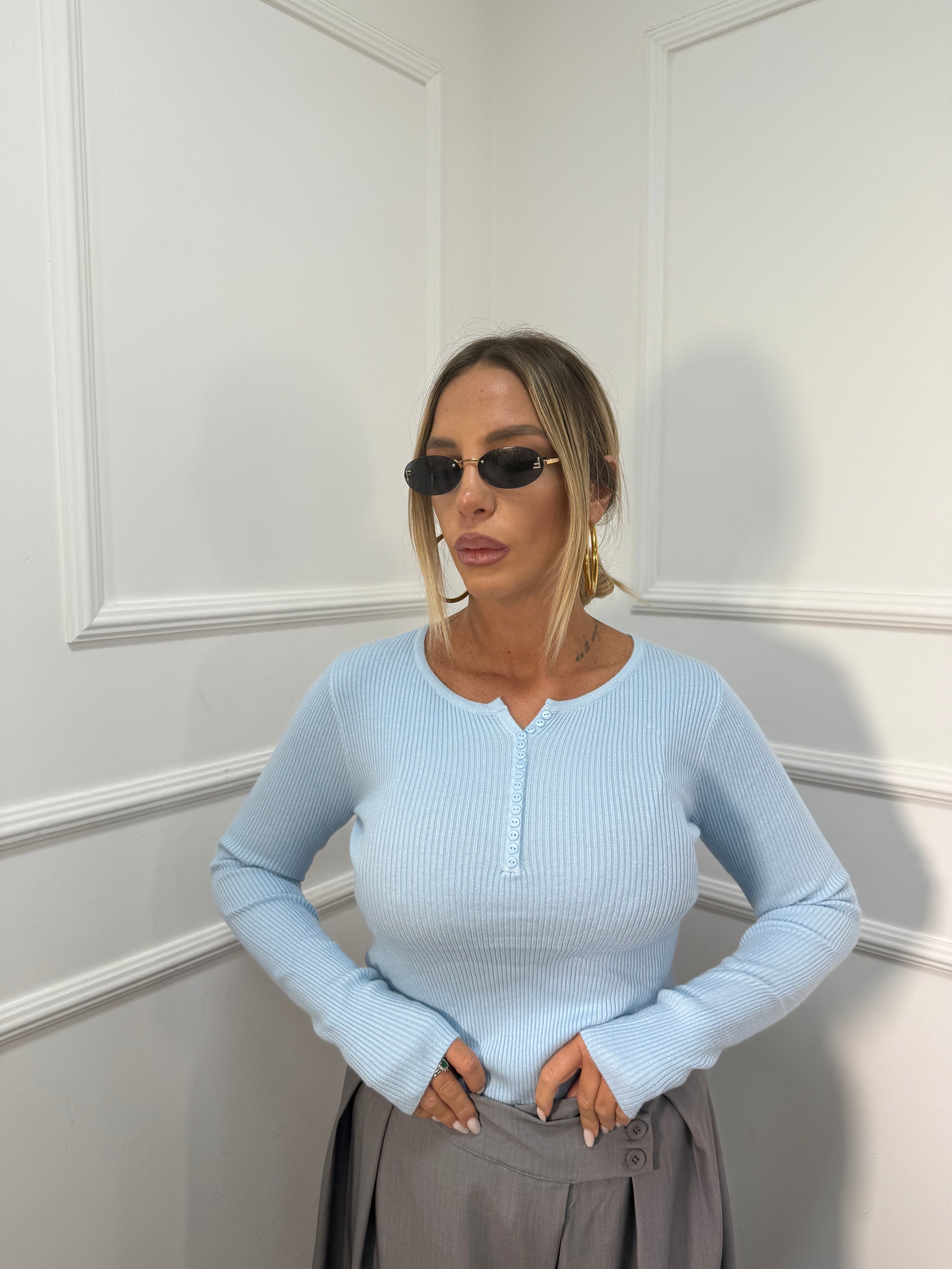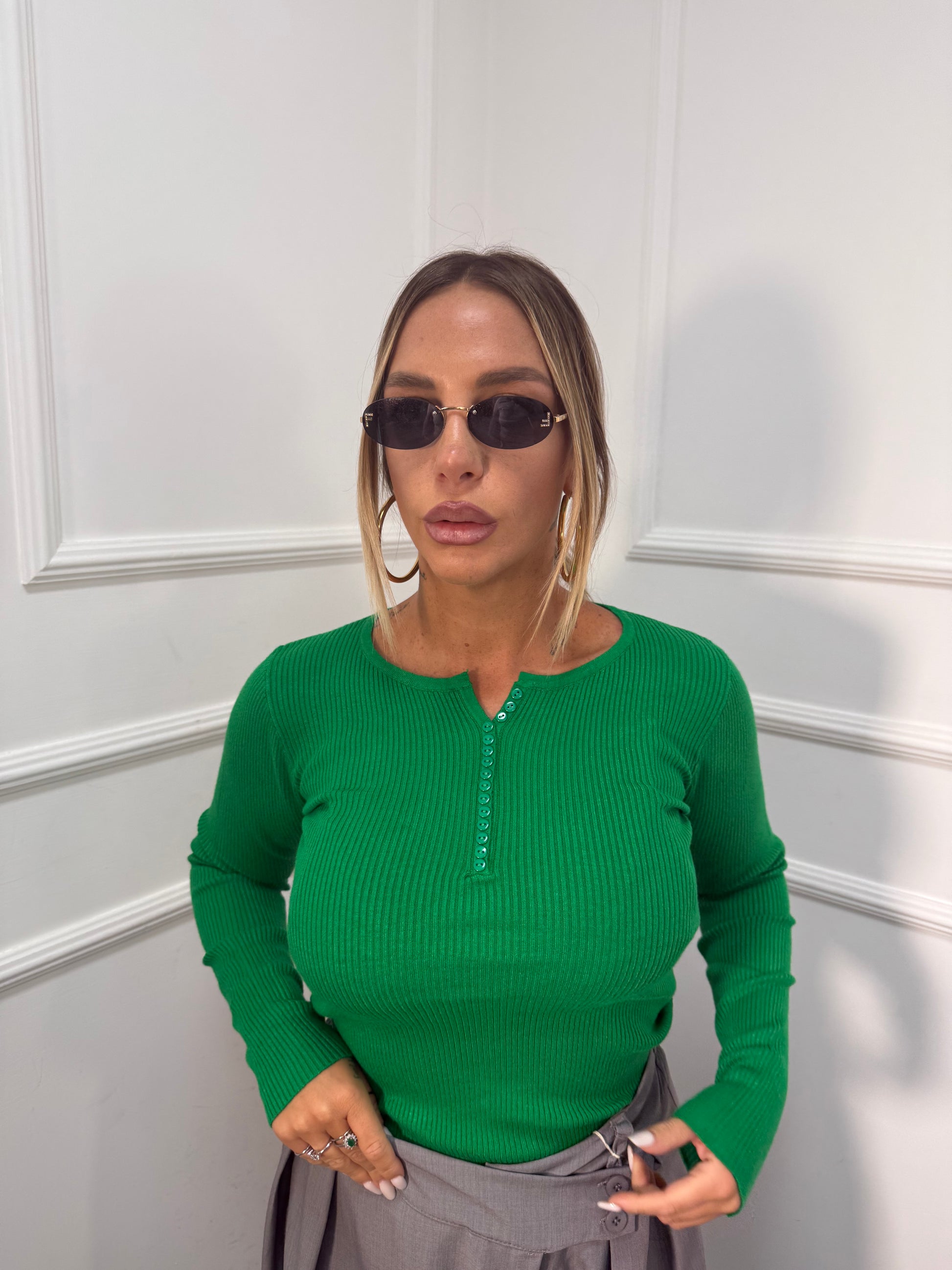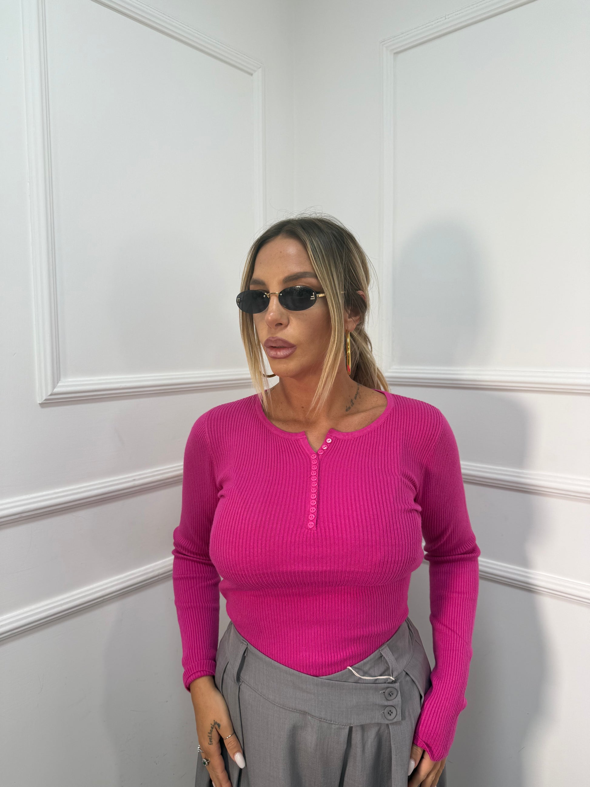 Maglioncino lana rasata a costine con bottoncini vari colori qf8158