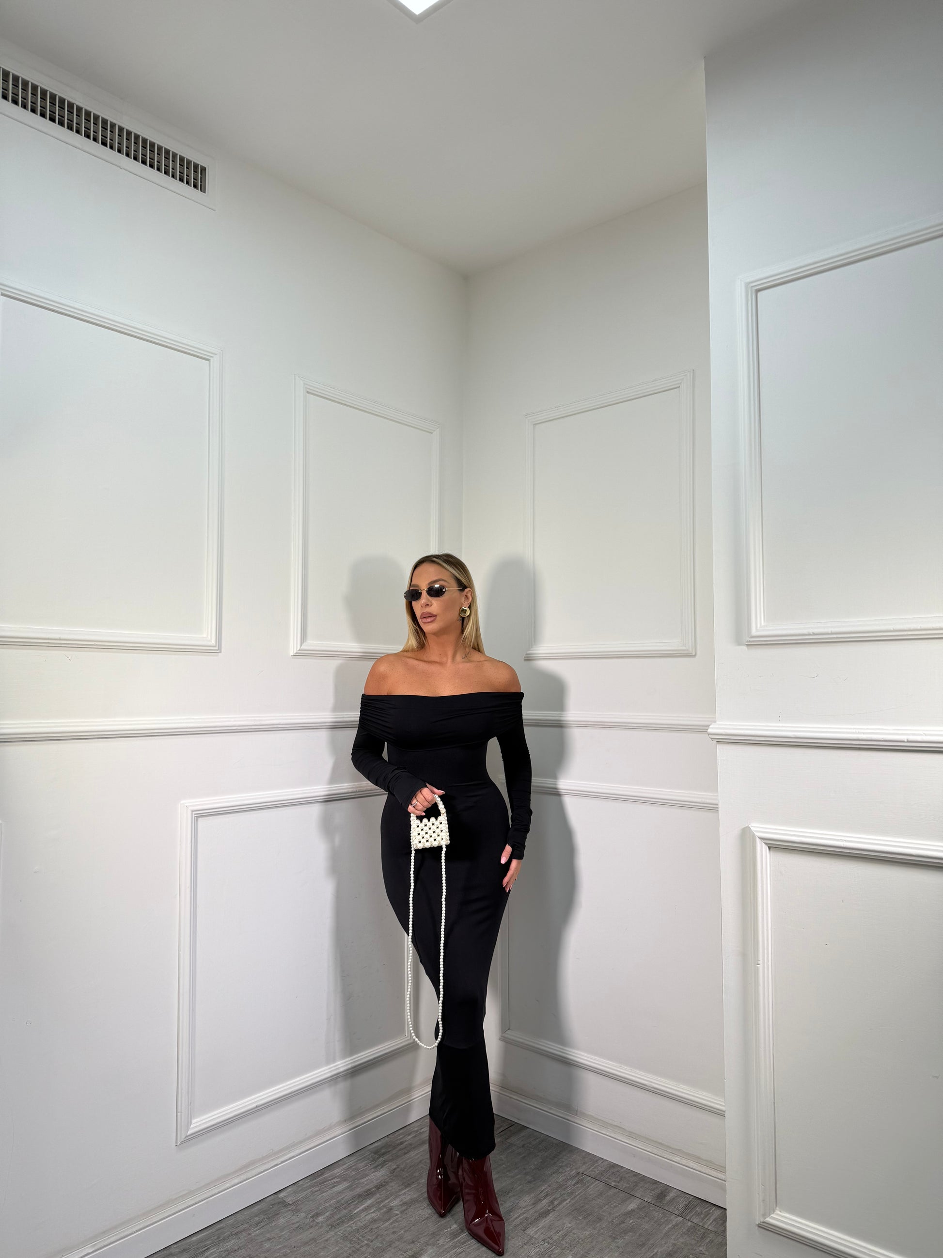Abito midi in lycra scollo a barca Nilufar nero 13351