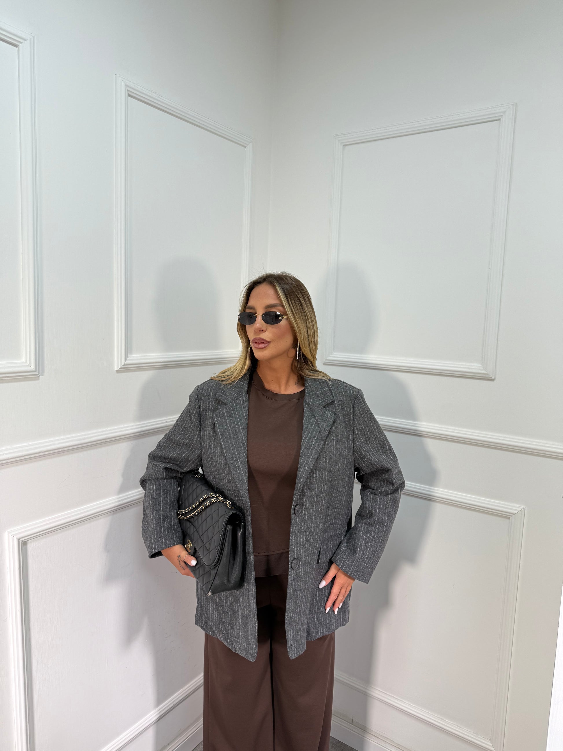 Blazer in lana cotta gessato Ireland grigio 80501 premium quality