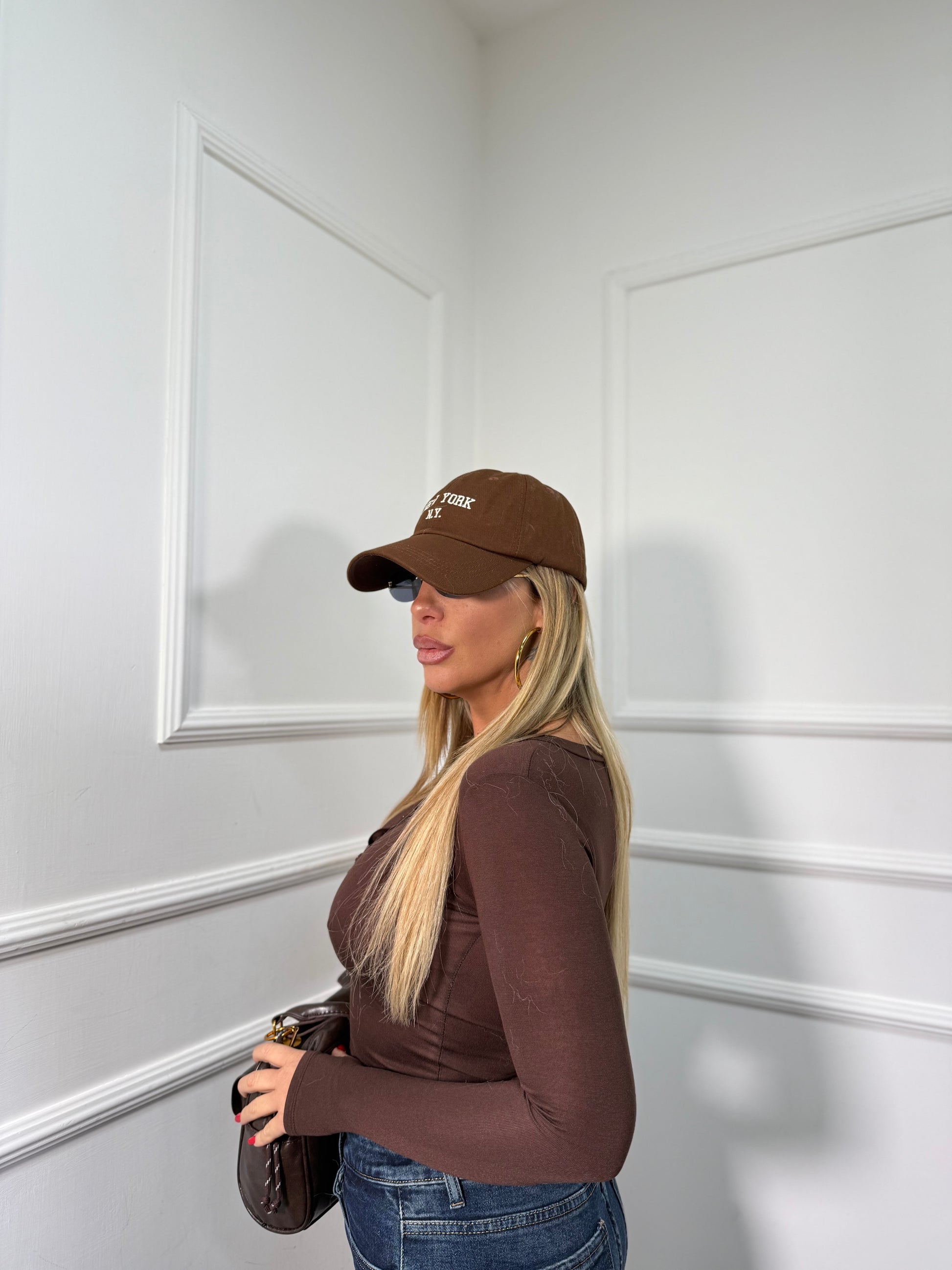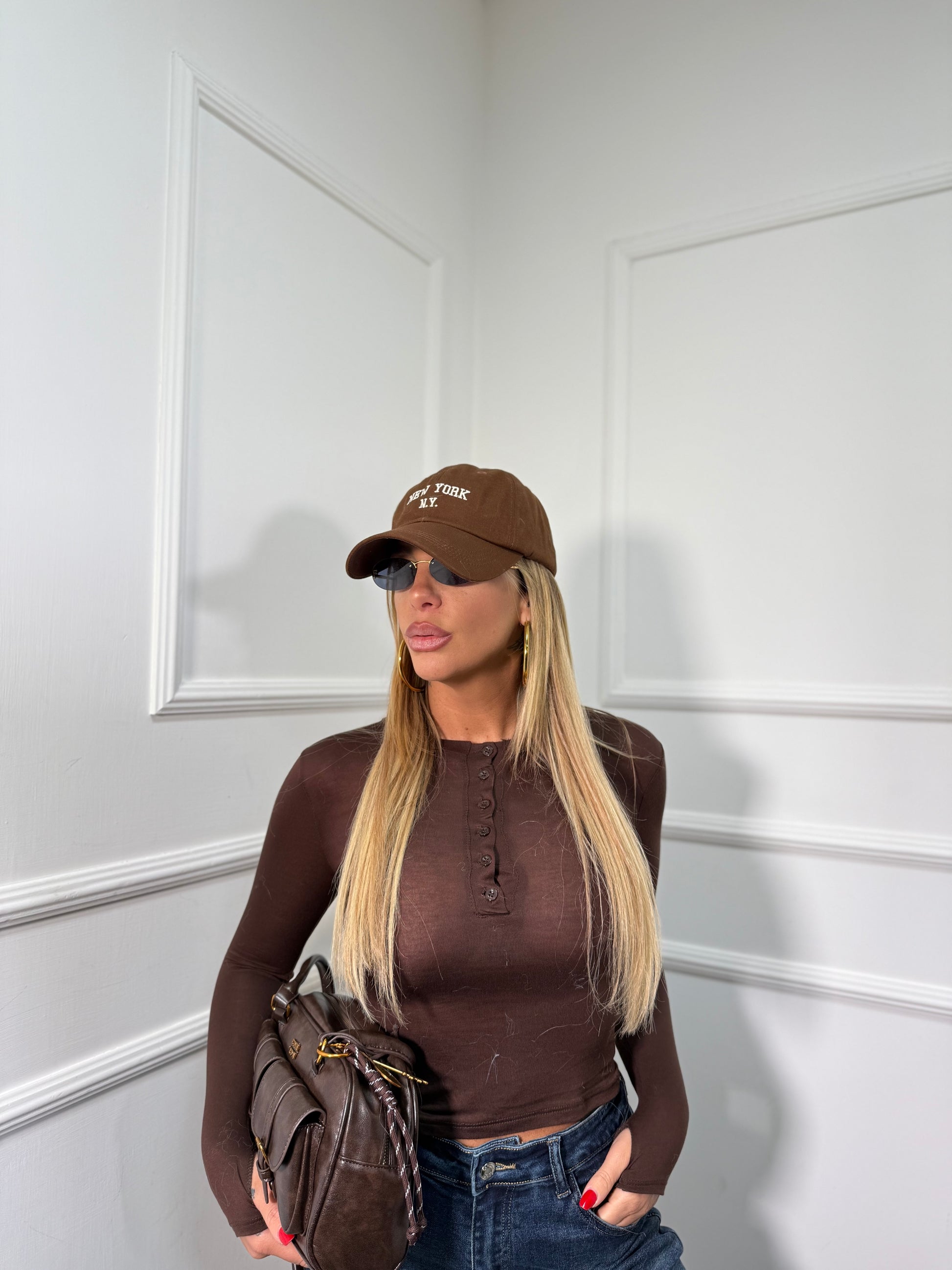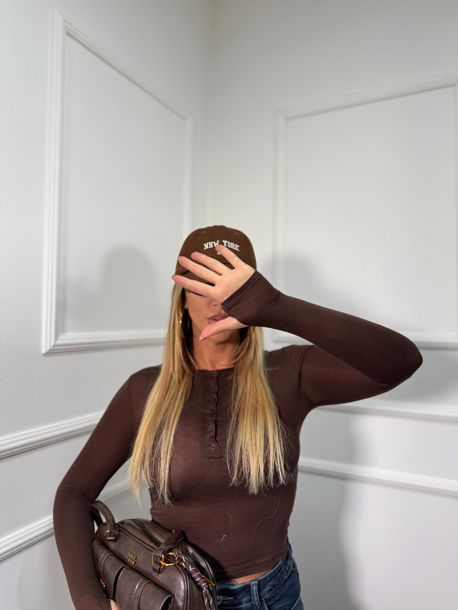 Shirt semi velata con bottoncini e manica a guanto Life cioccolato 25780