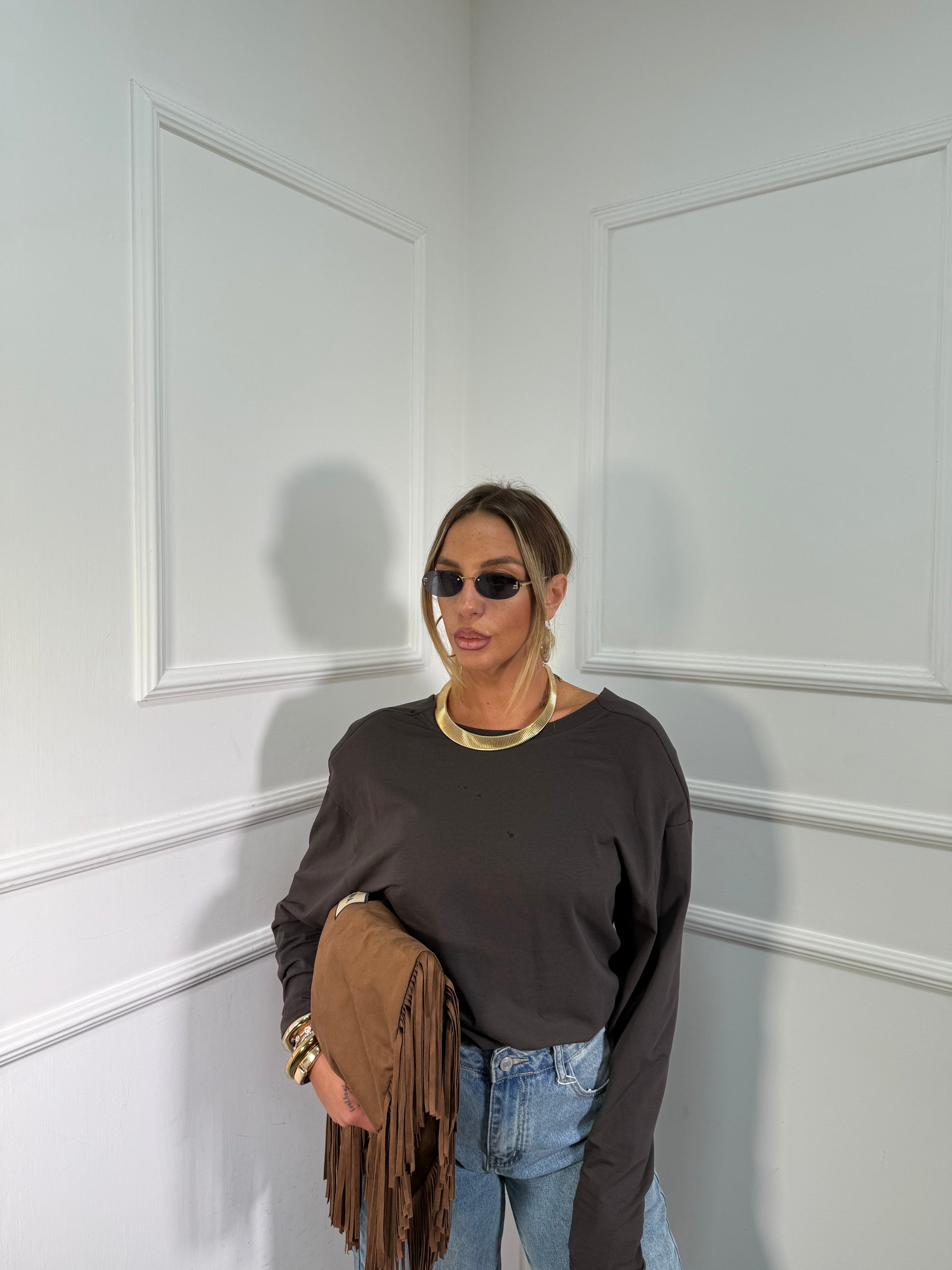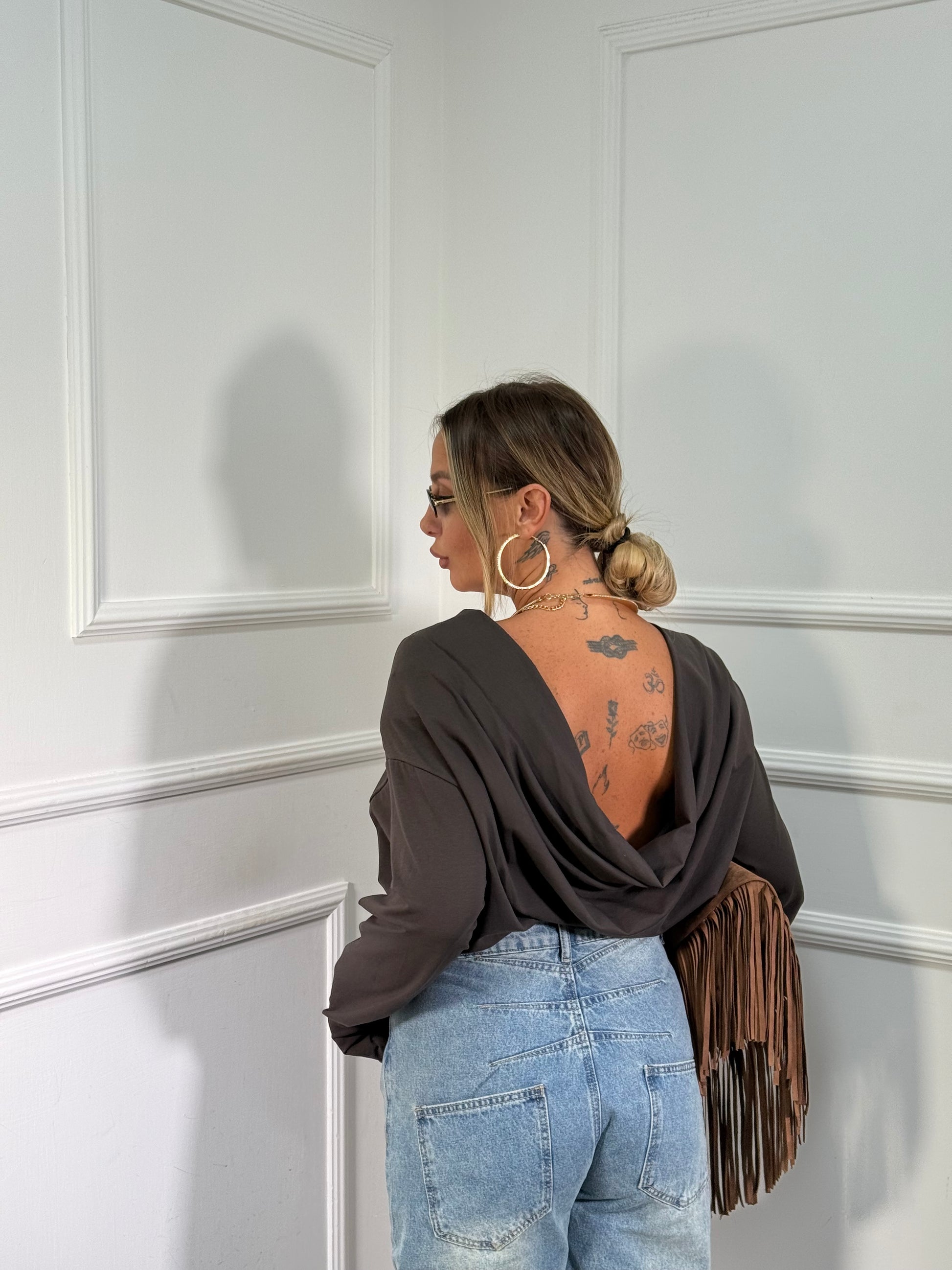 Shirt con spalline scollo sul retro cacao m30375