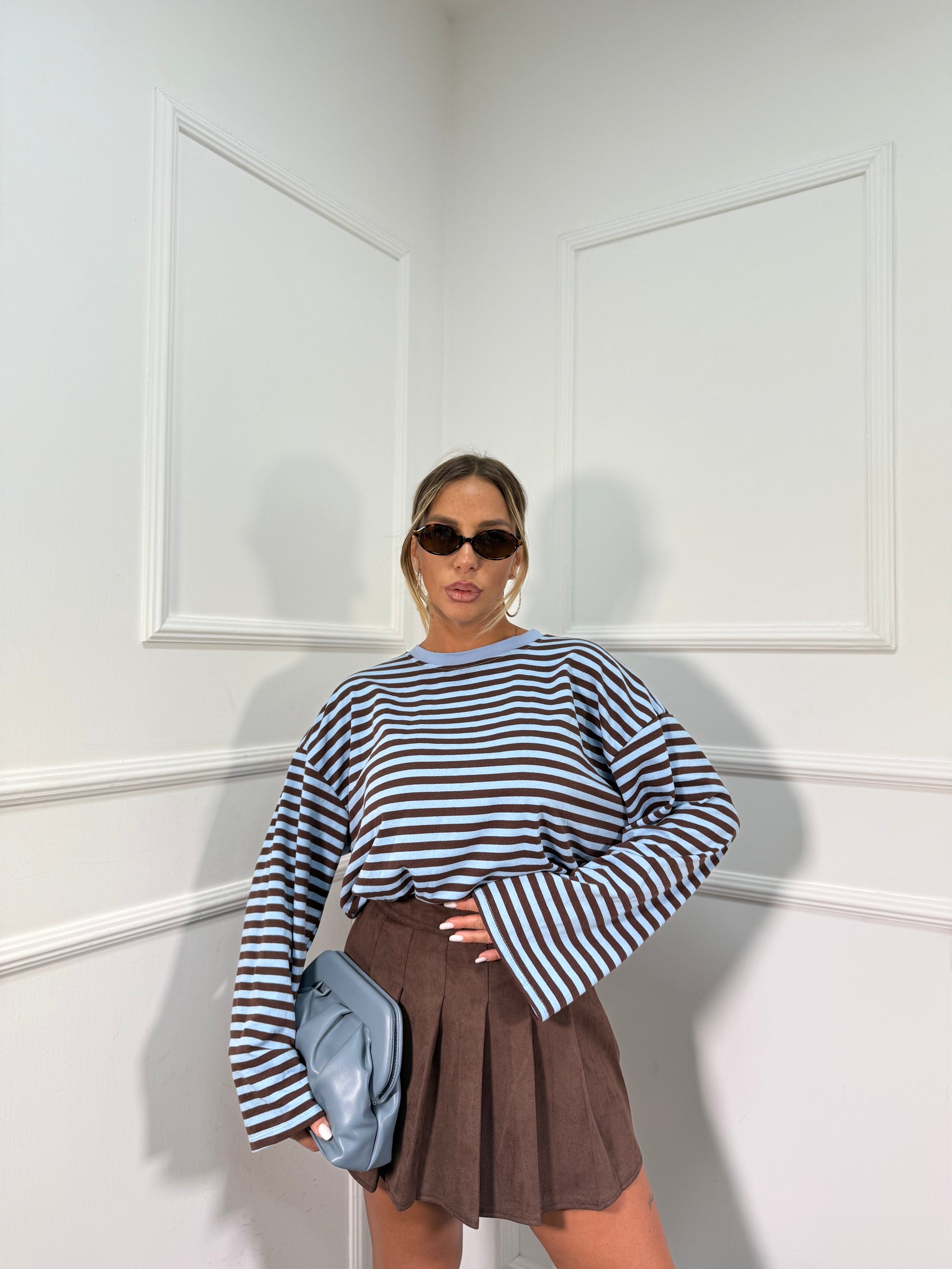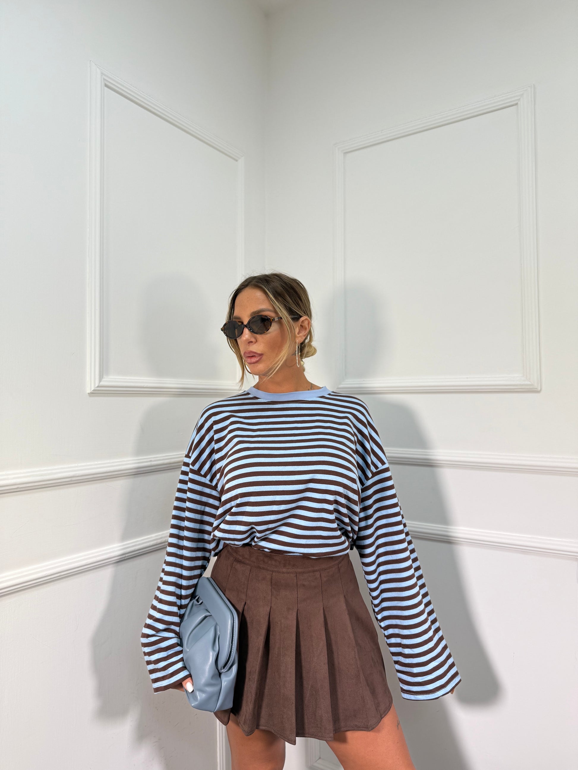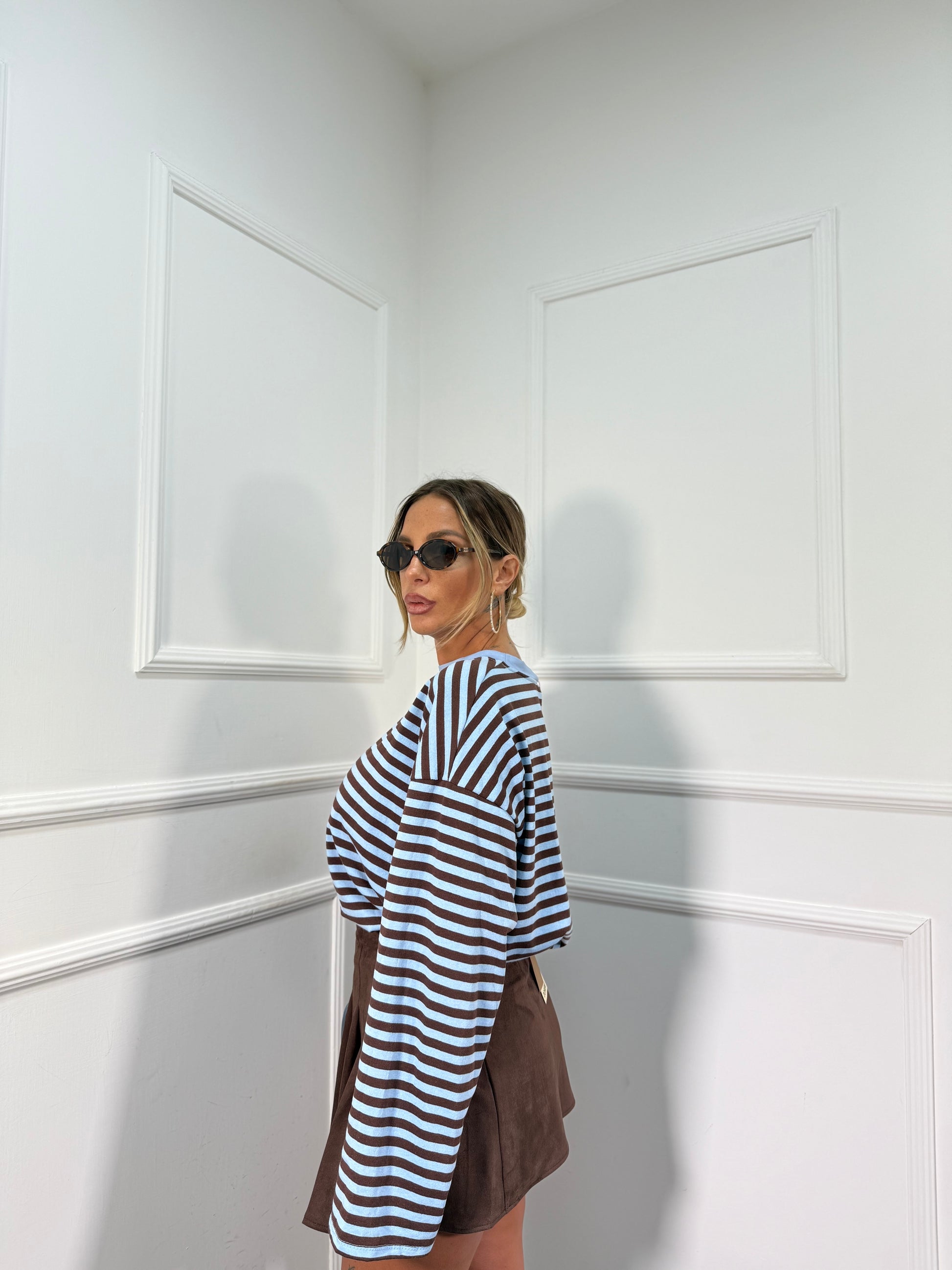 Shirt in cotone garzato manica campana Cindy azzurra/cacao f1109