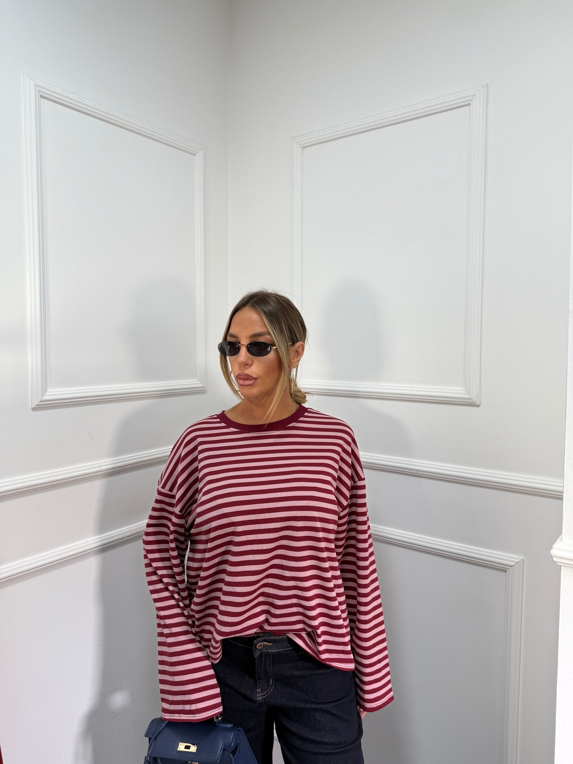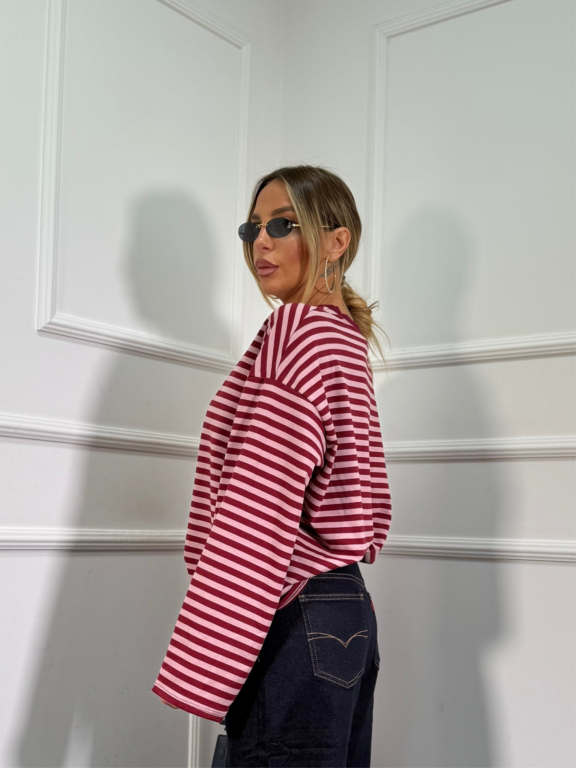 Shirt in cotone garzato manica campana Cindy rosa/bordeaux f1109