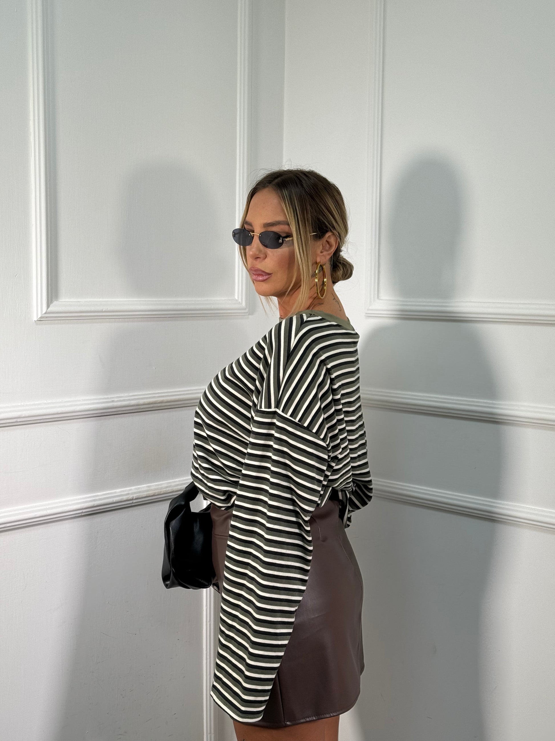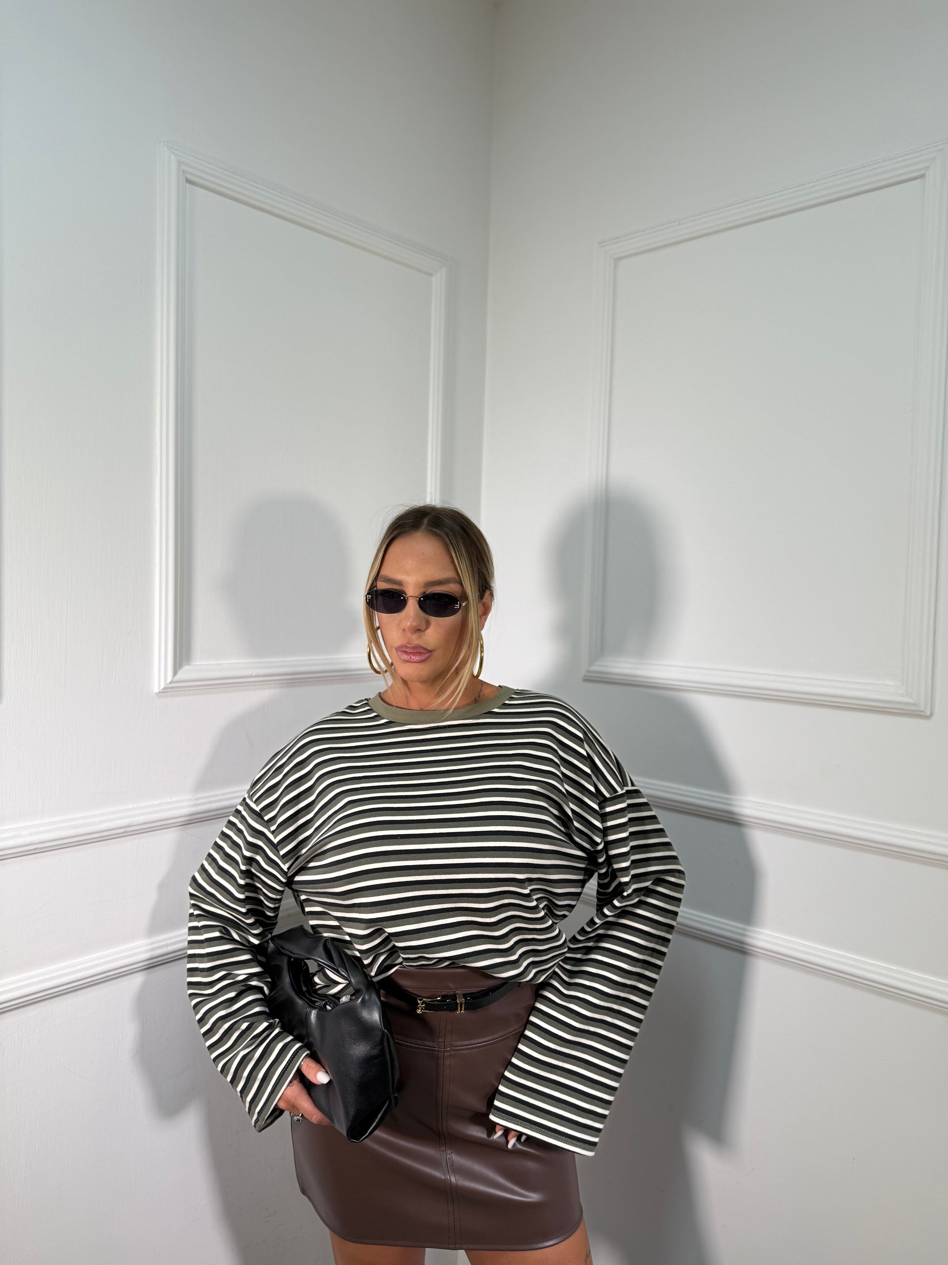 Shirt in cotone garzato manica campana Cindy verde/nero f1109