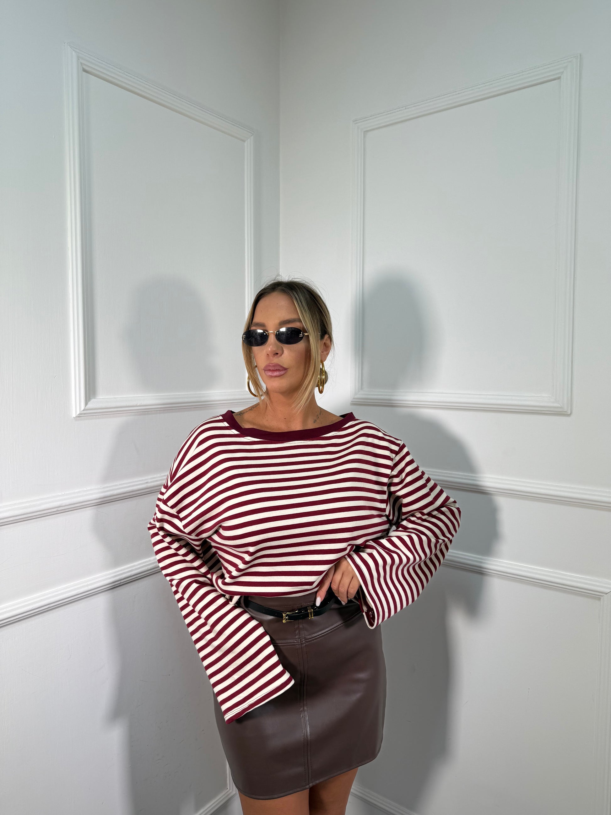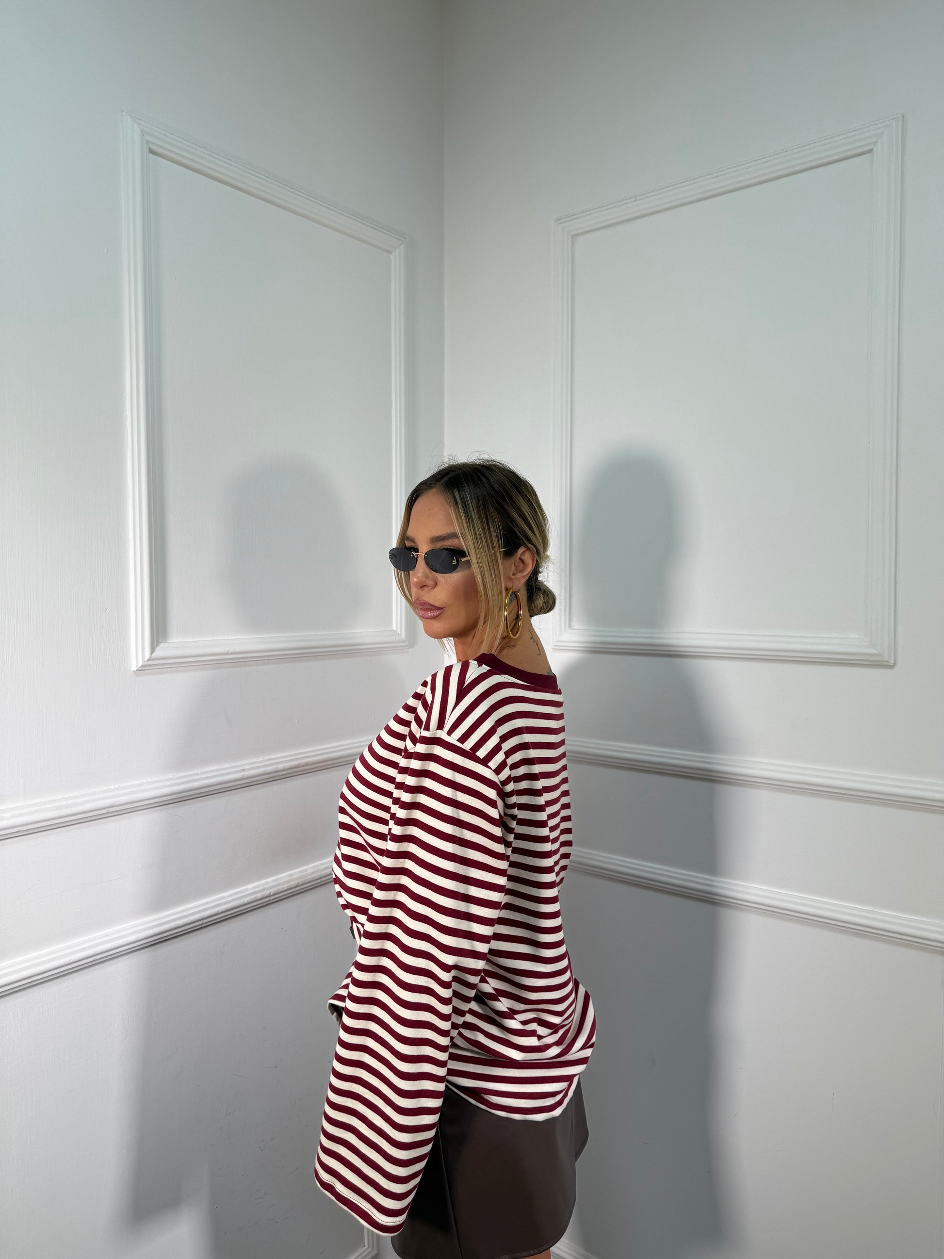 Shirt in cotone garzato manica campana Cindy bordeaux/burro f1109
