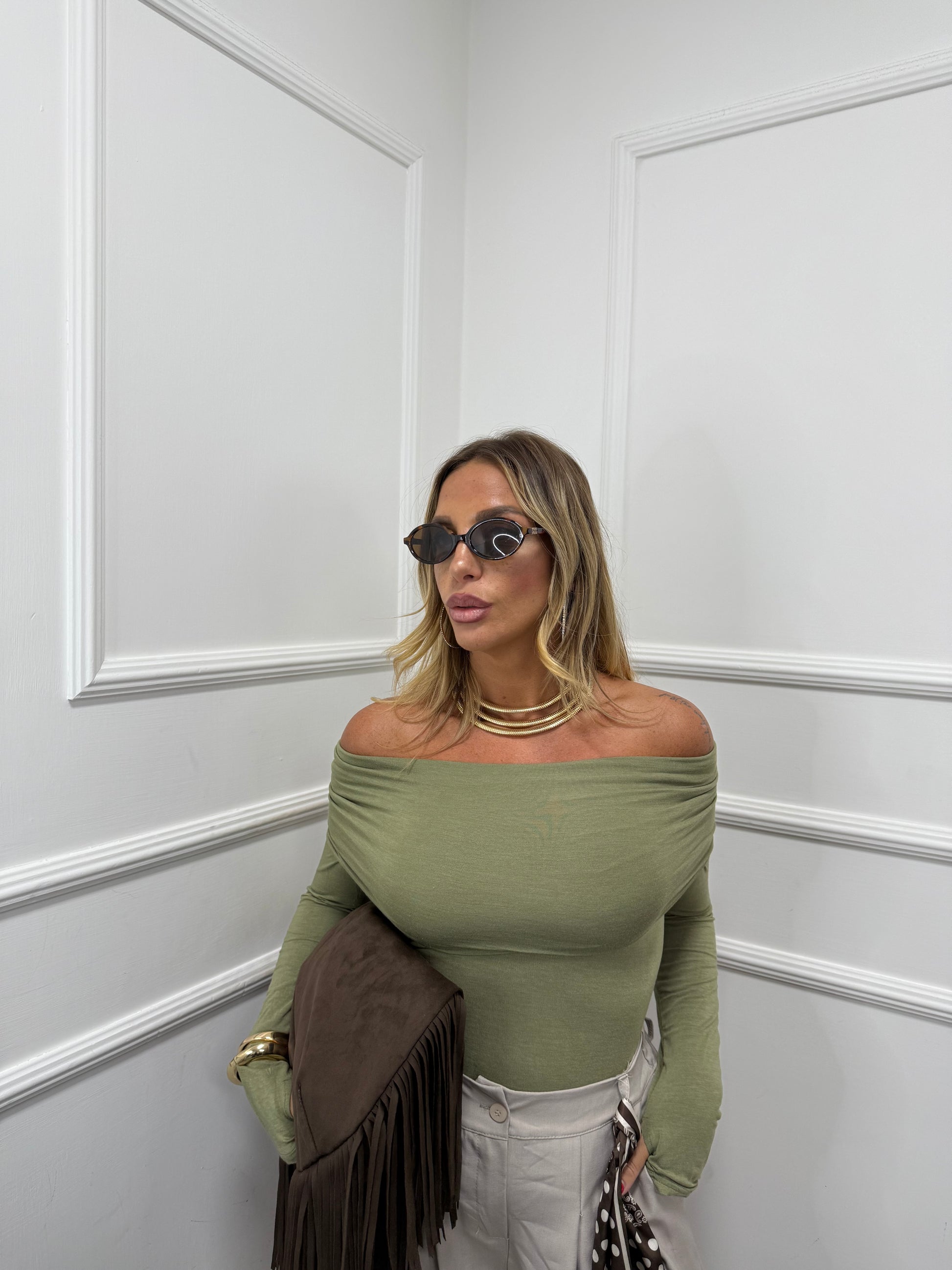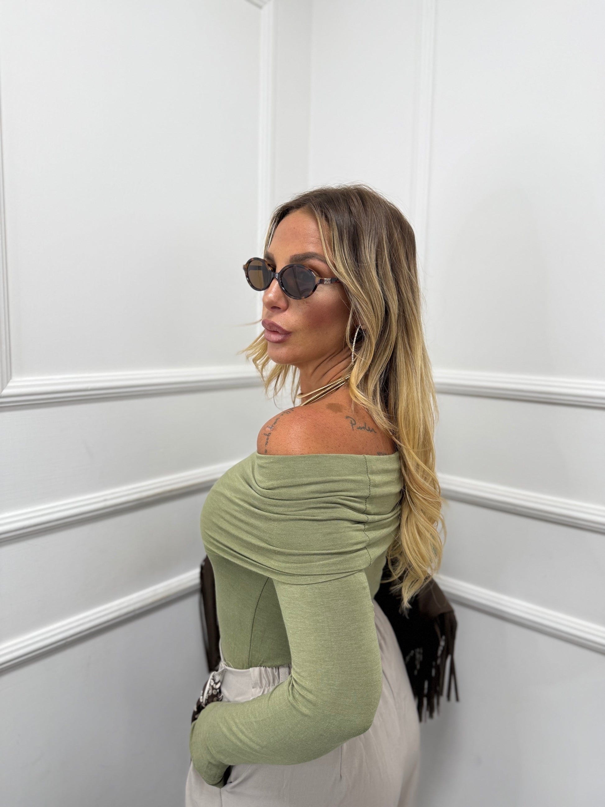 Shirt scollo a barca in viscosa Brendy verde ng3811