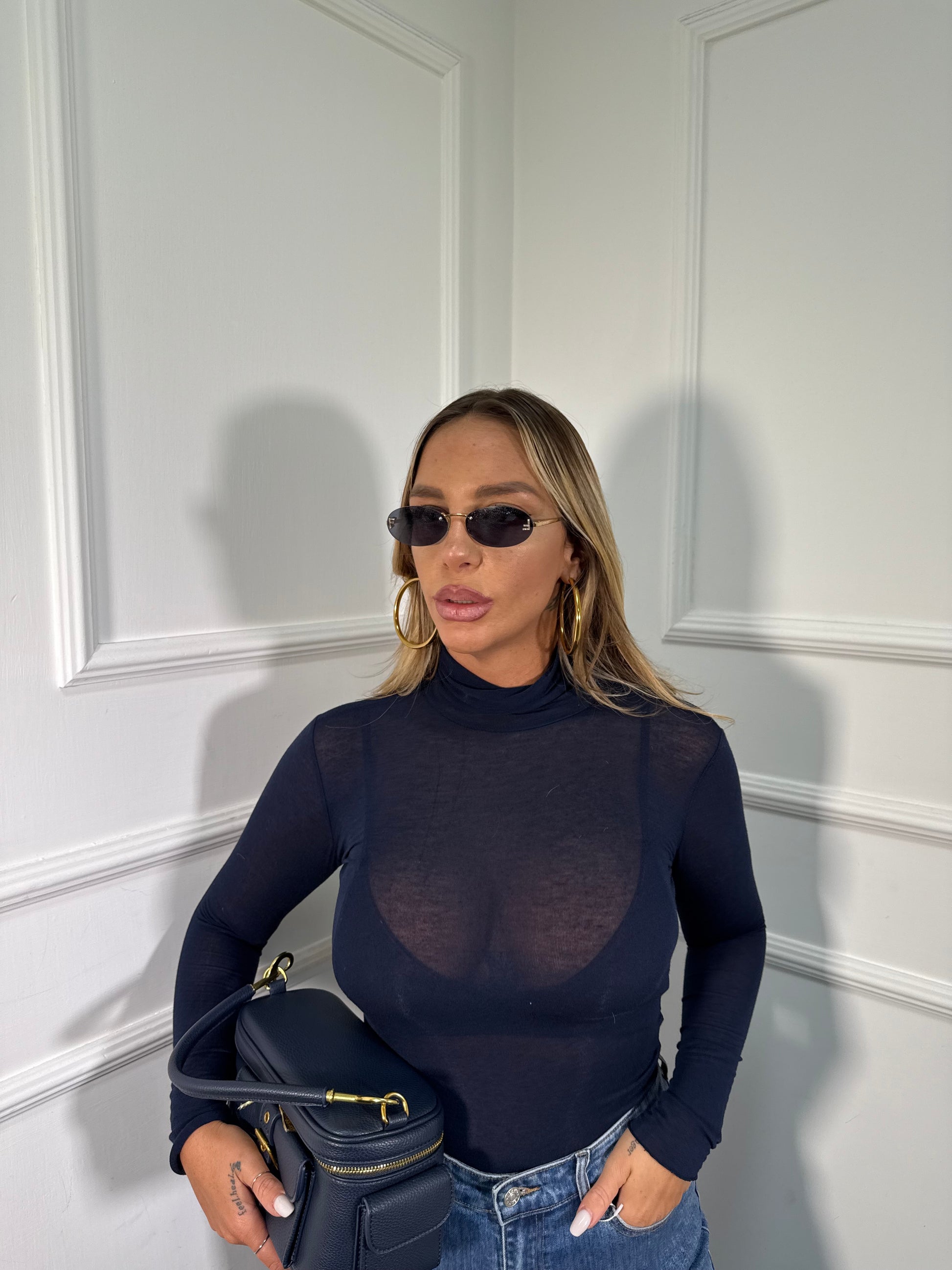 Shirt semi velata collo alto Jolly blu misto cashmere 28029