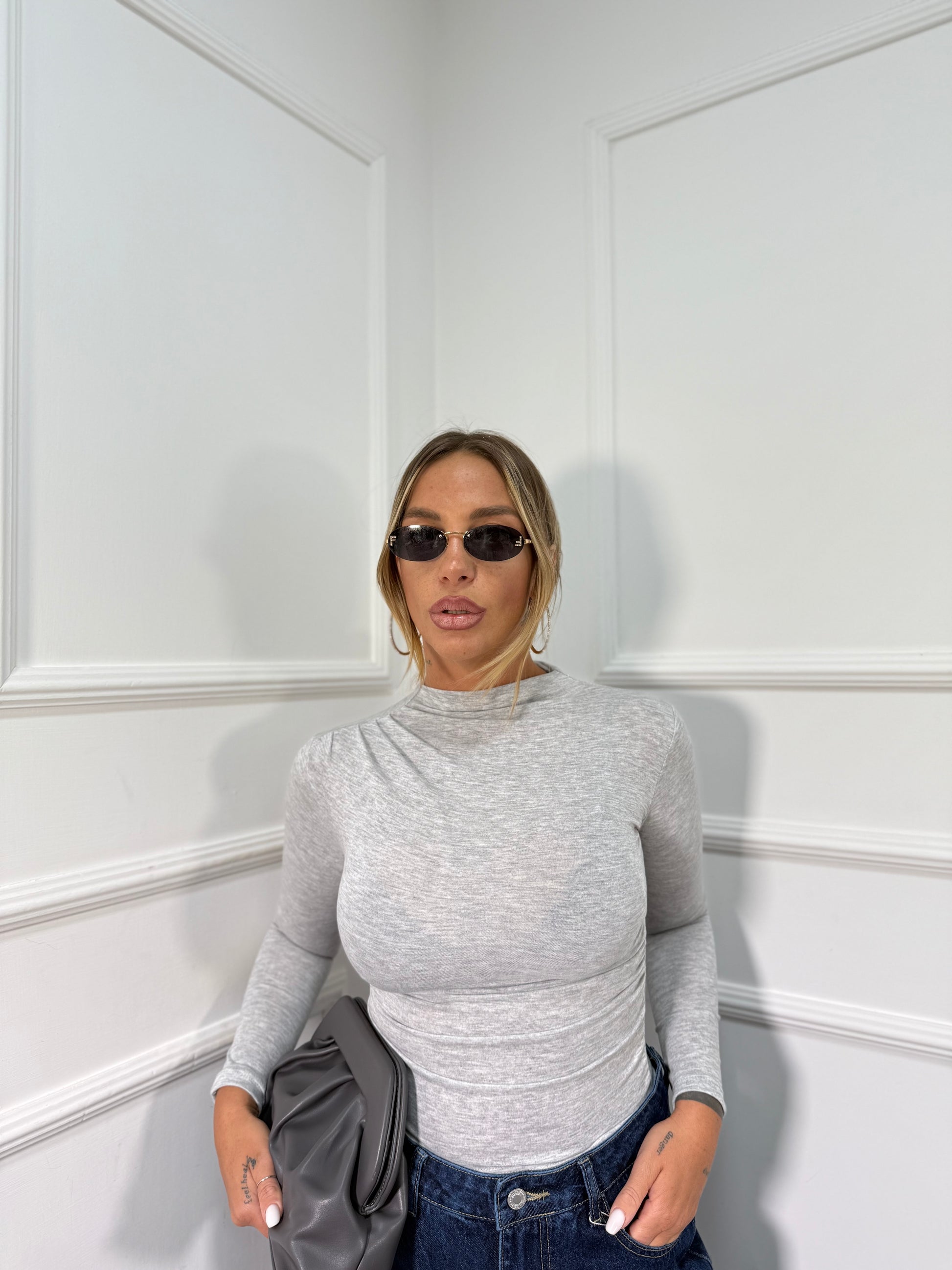 Shirt semi velata mezzo collo con drappeggi grigia 5486