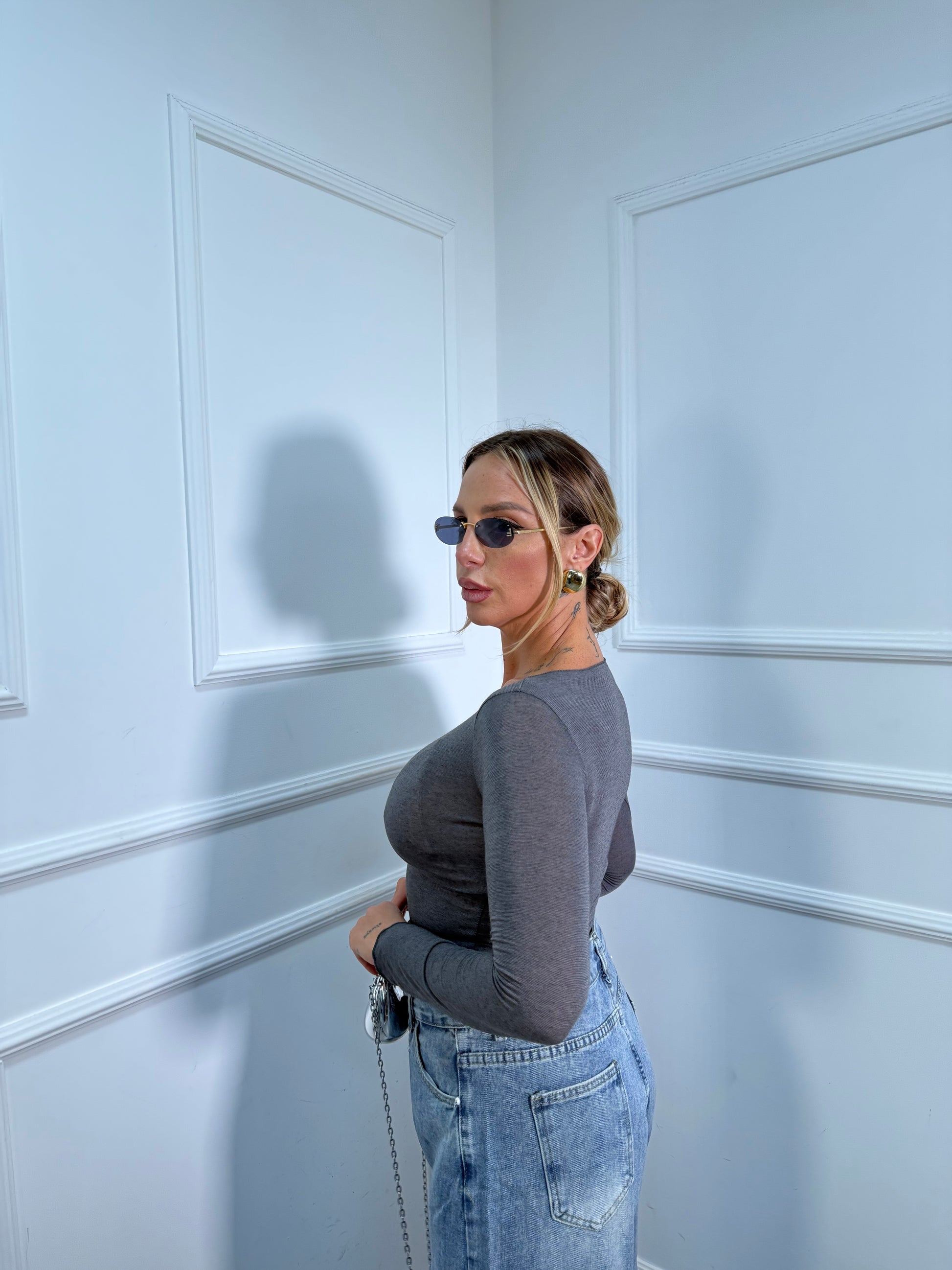 Shirt semi velata taglio vivo Skin grigio piombo 28031