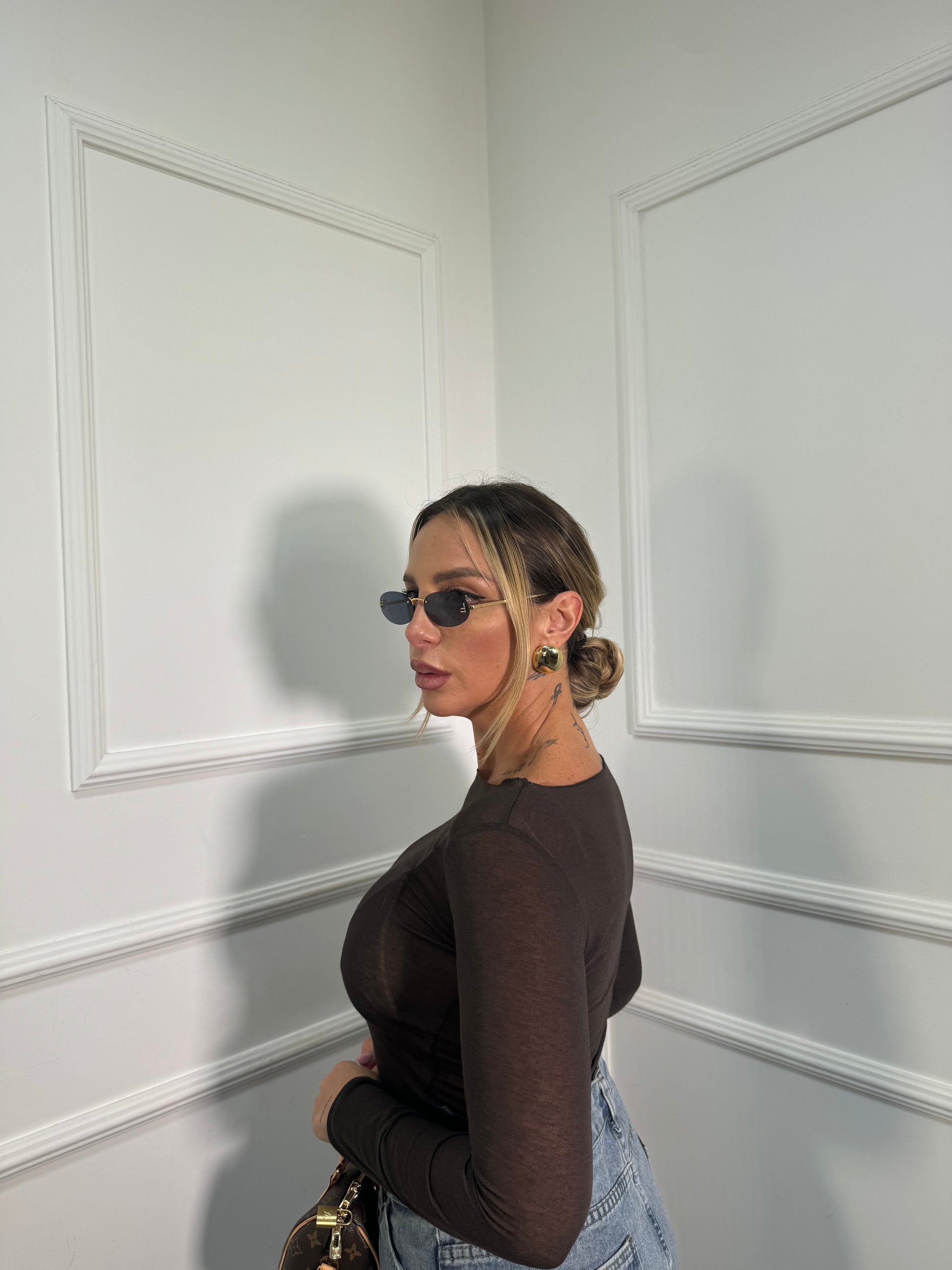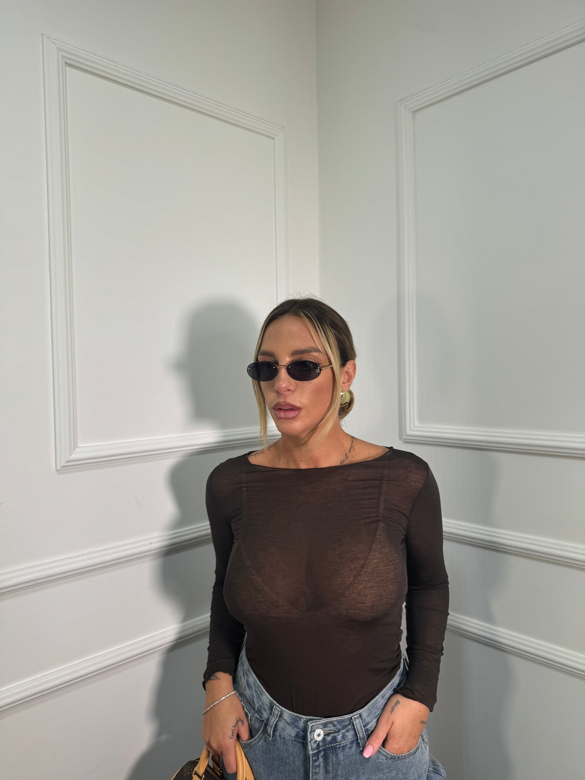 Shirt semi velata taglio vivo Skin cioccolato 28031