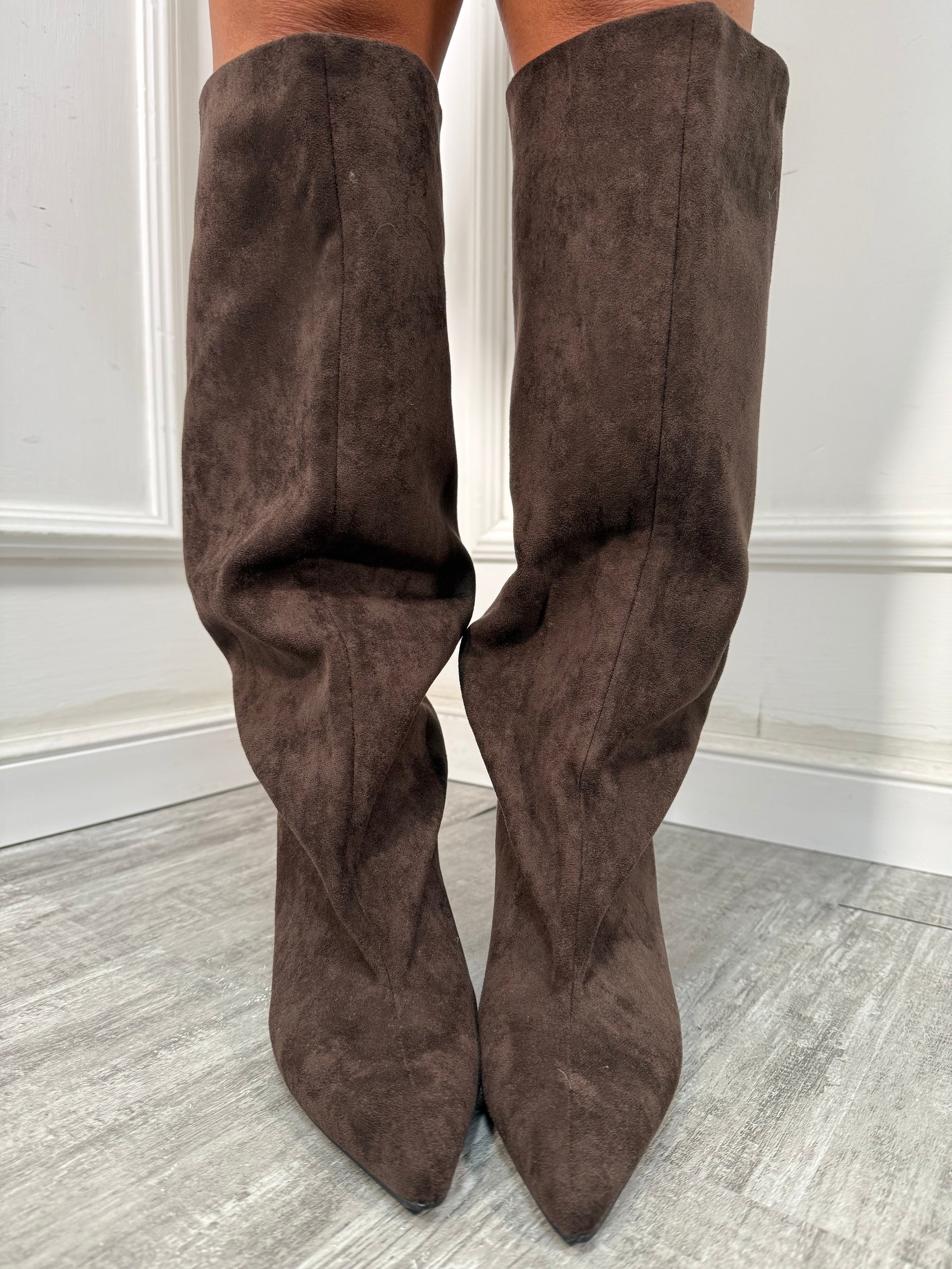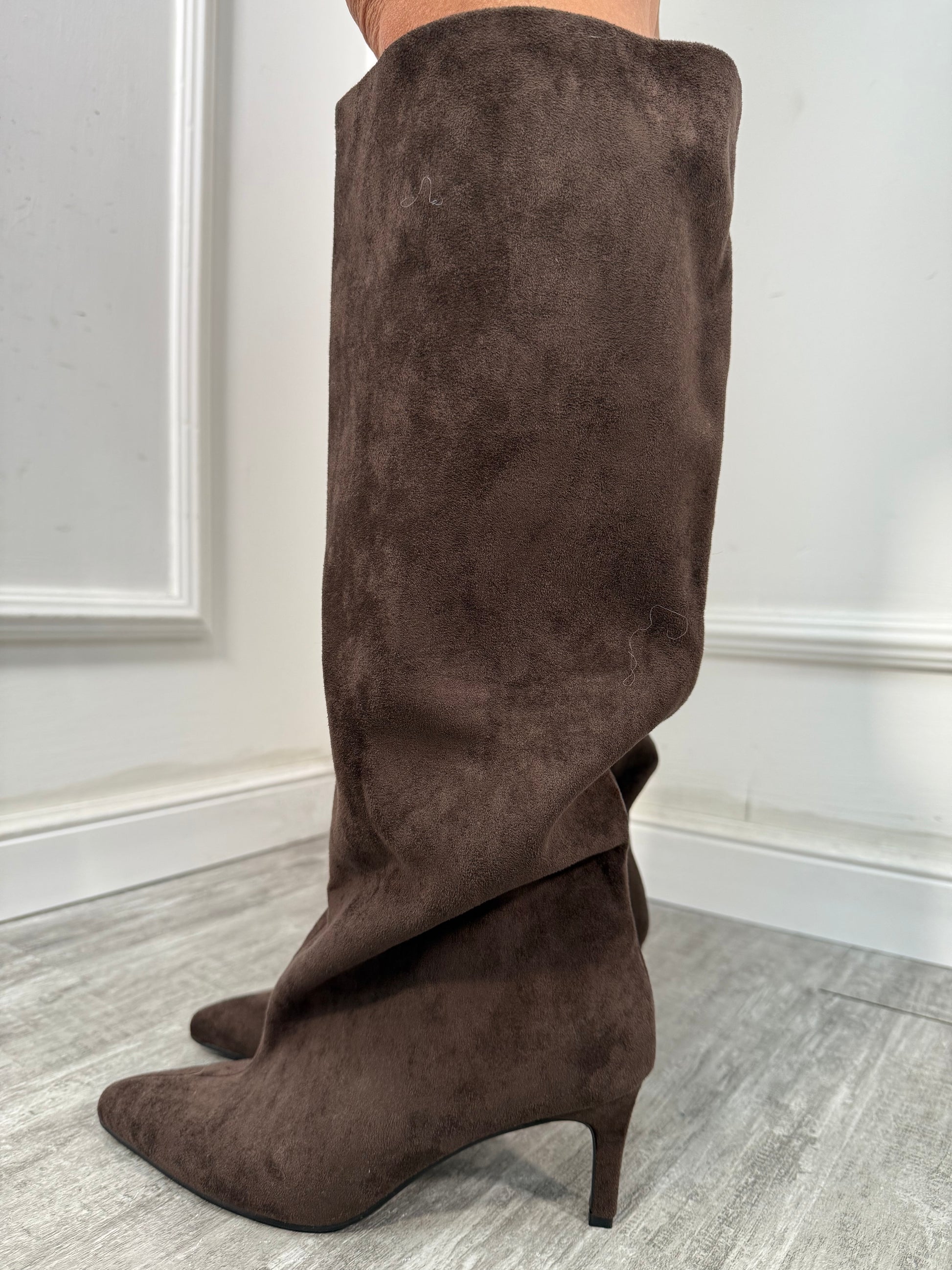 Stivale gambale morbido eco camoscio cioccolato K0139