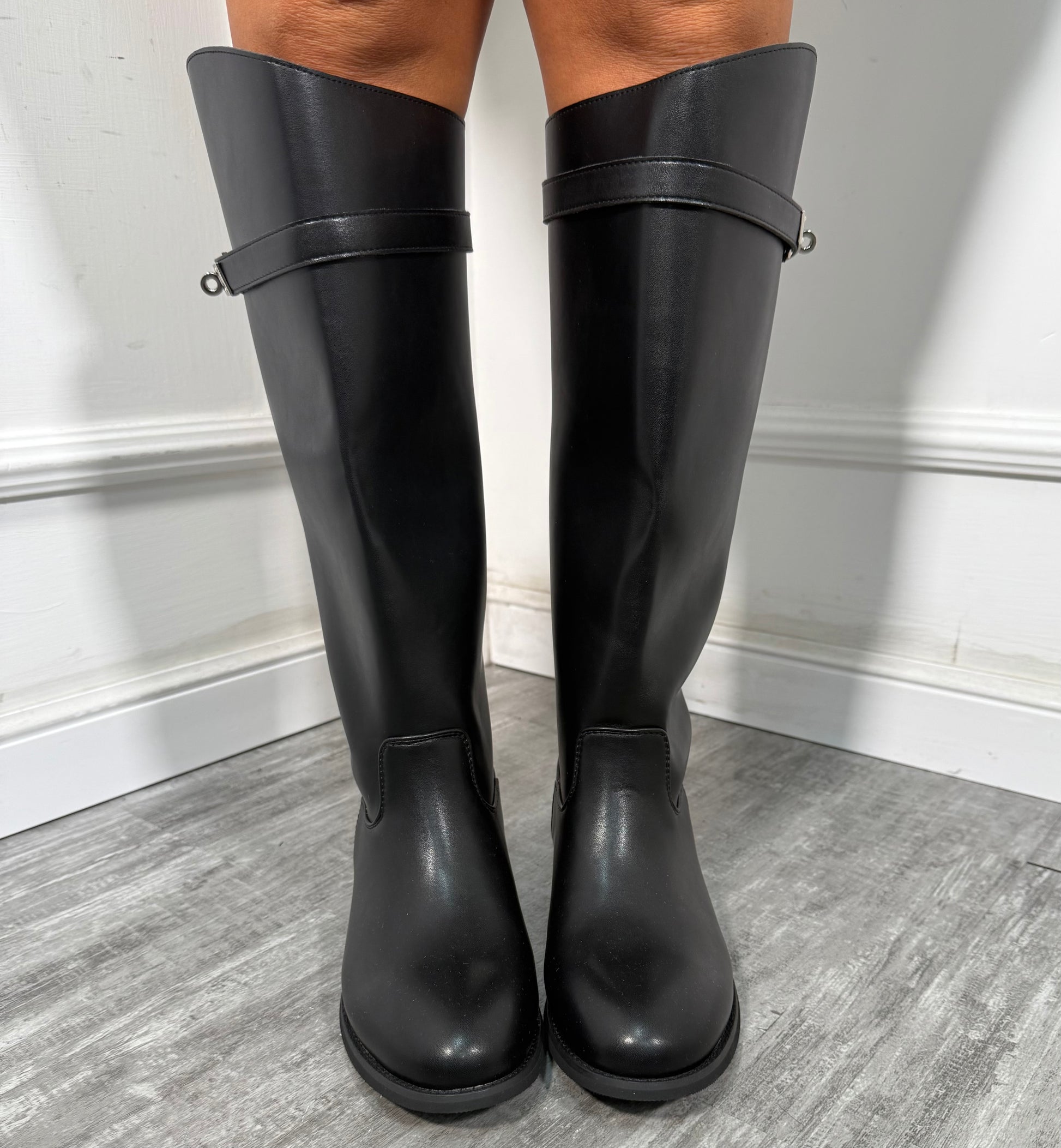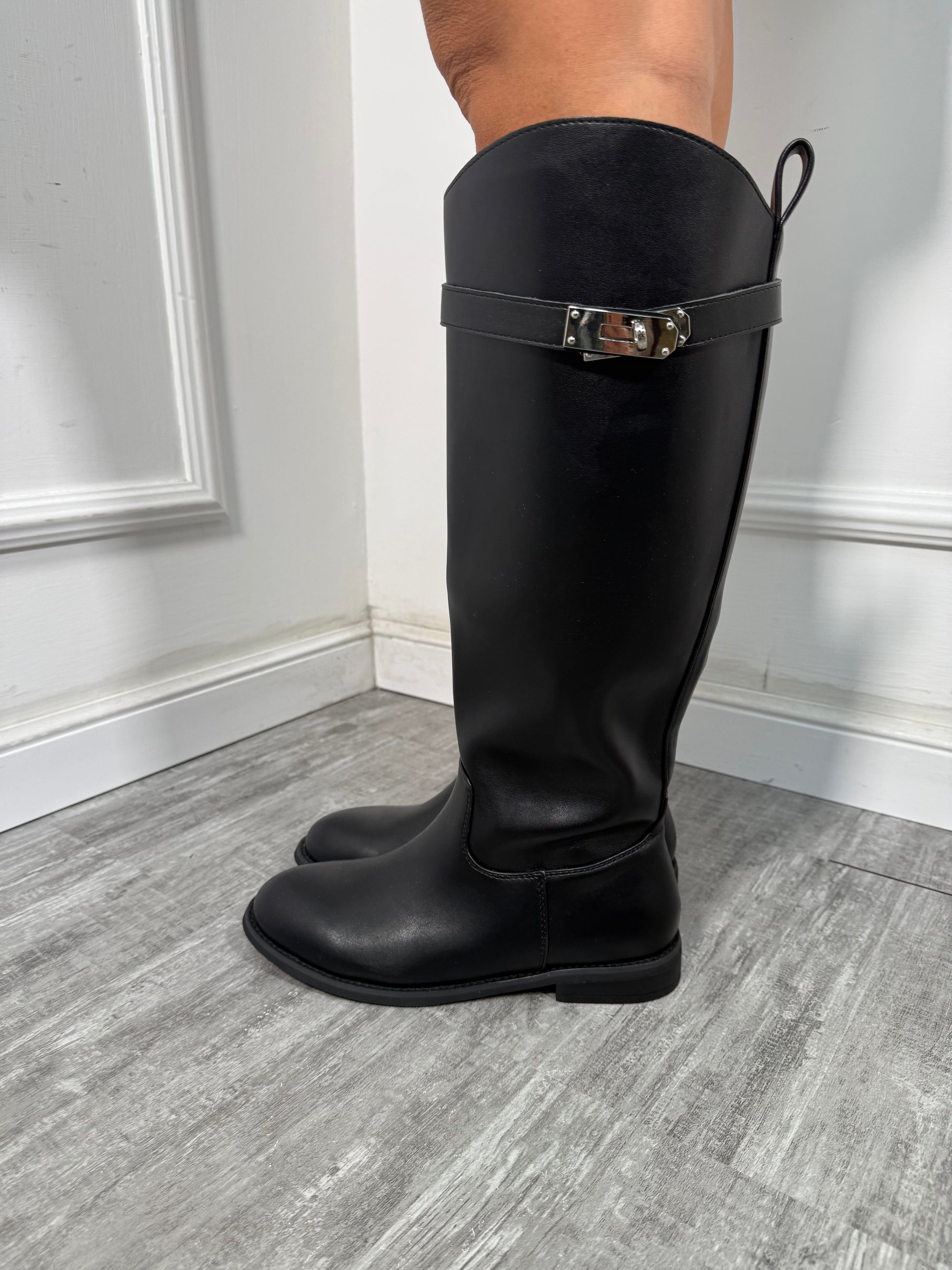 Stivali in ecopelle gambale alto con fibbia nero LA026