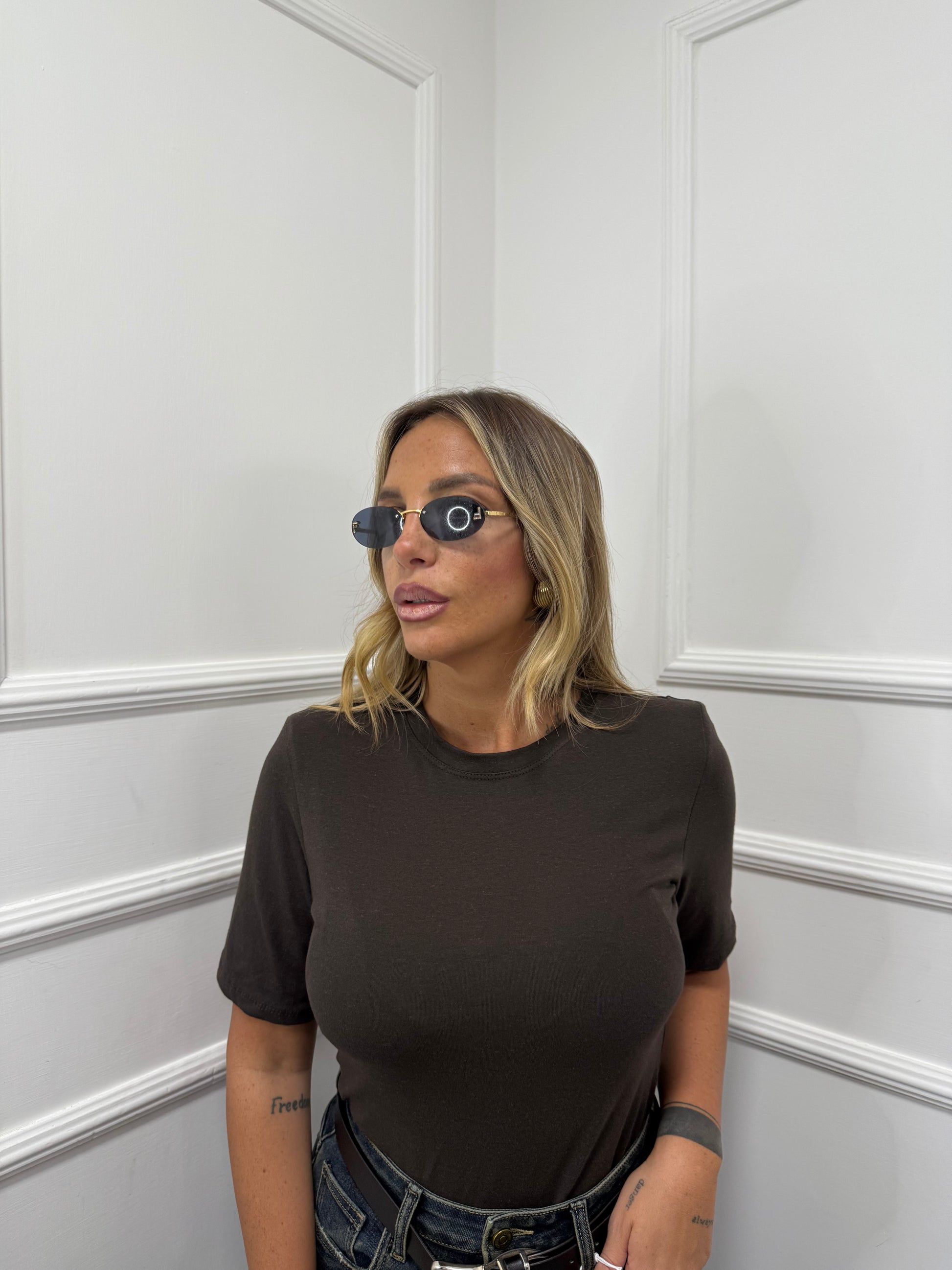 T-shirt con spalline lunghezza basic cioccolato 5058