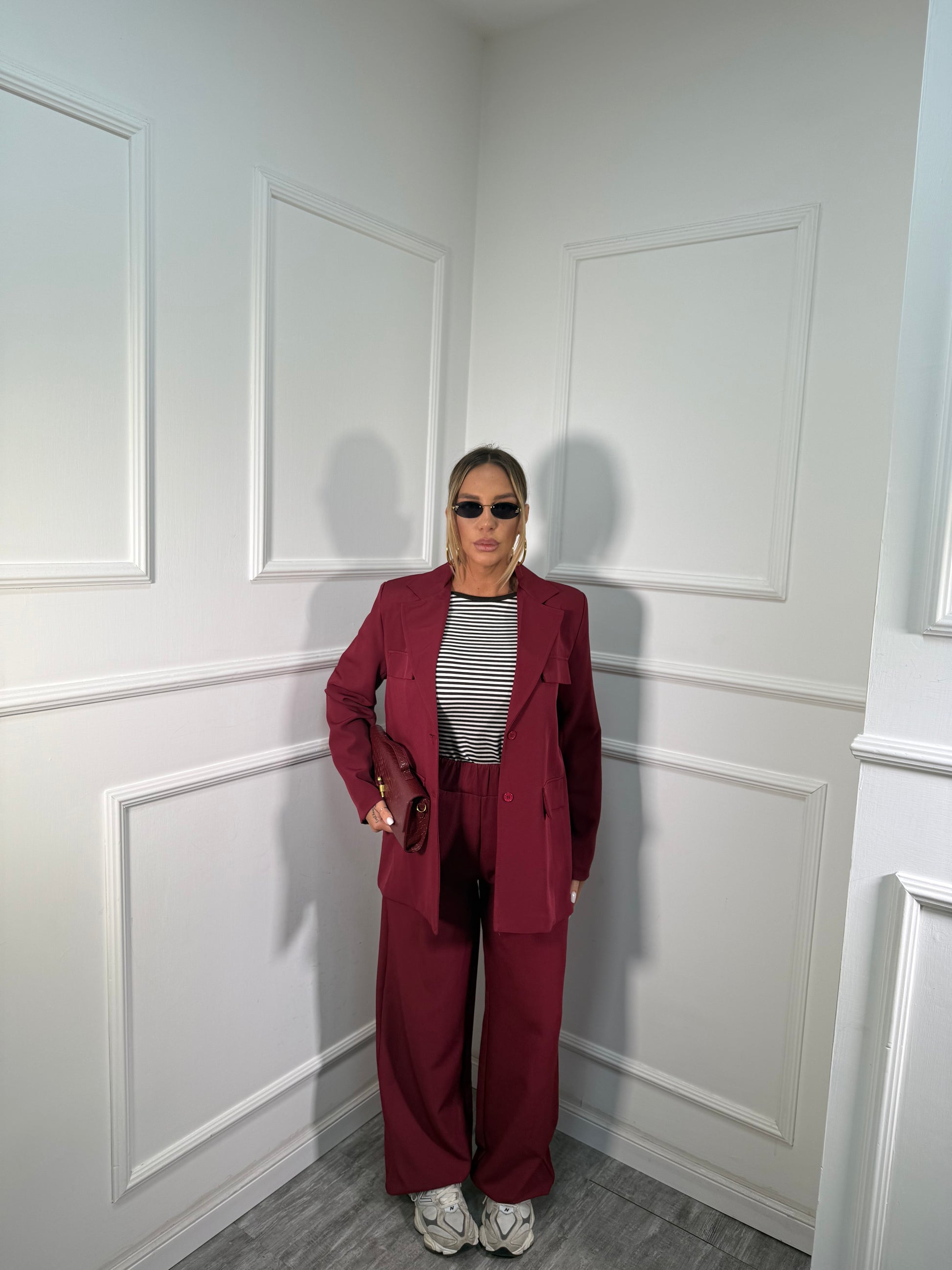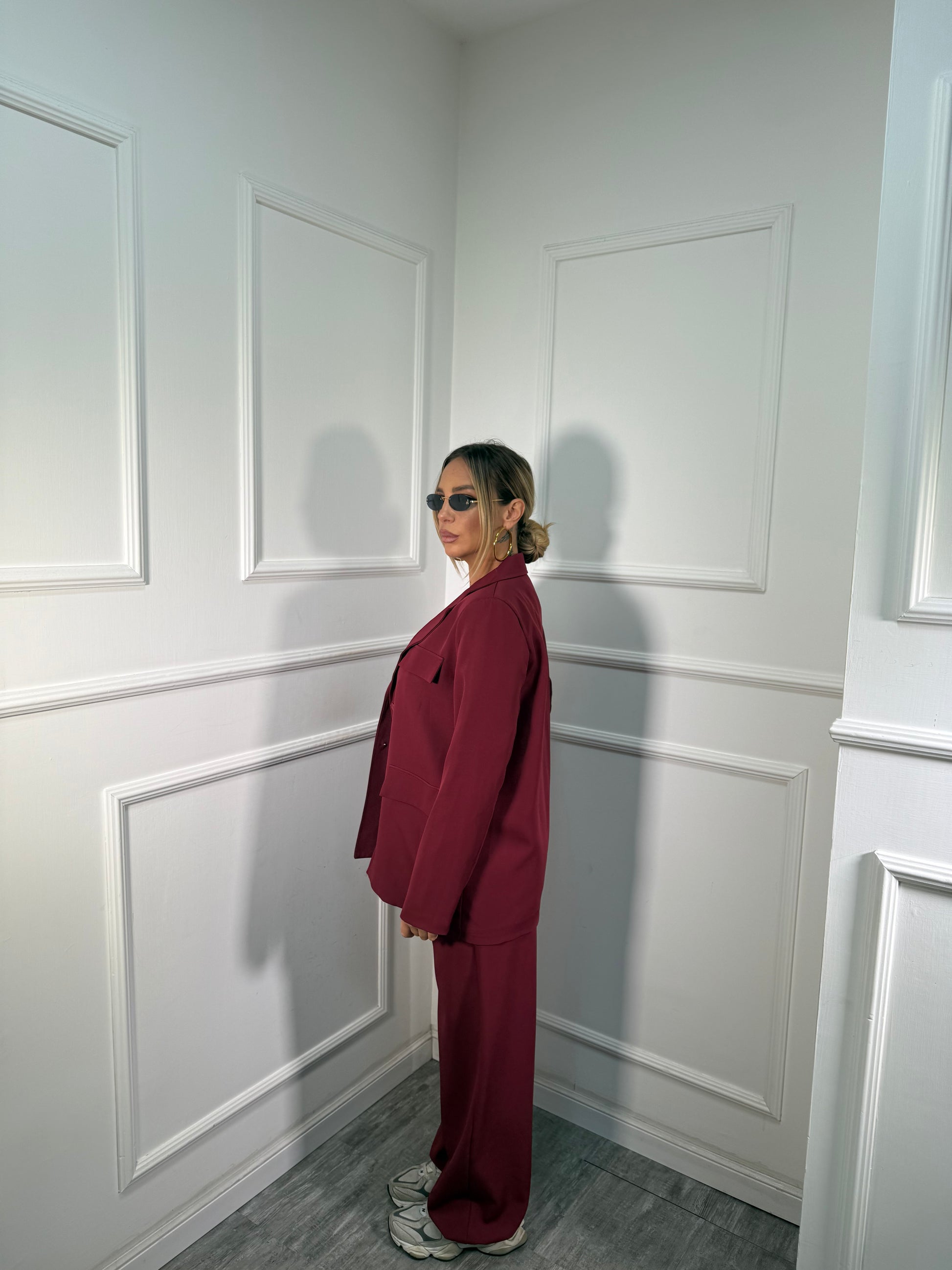 Tailleur composto da blazer chiusura doppio bottone, spalline imbottite, foderato