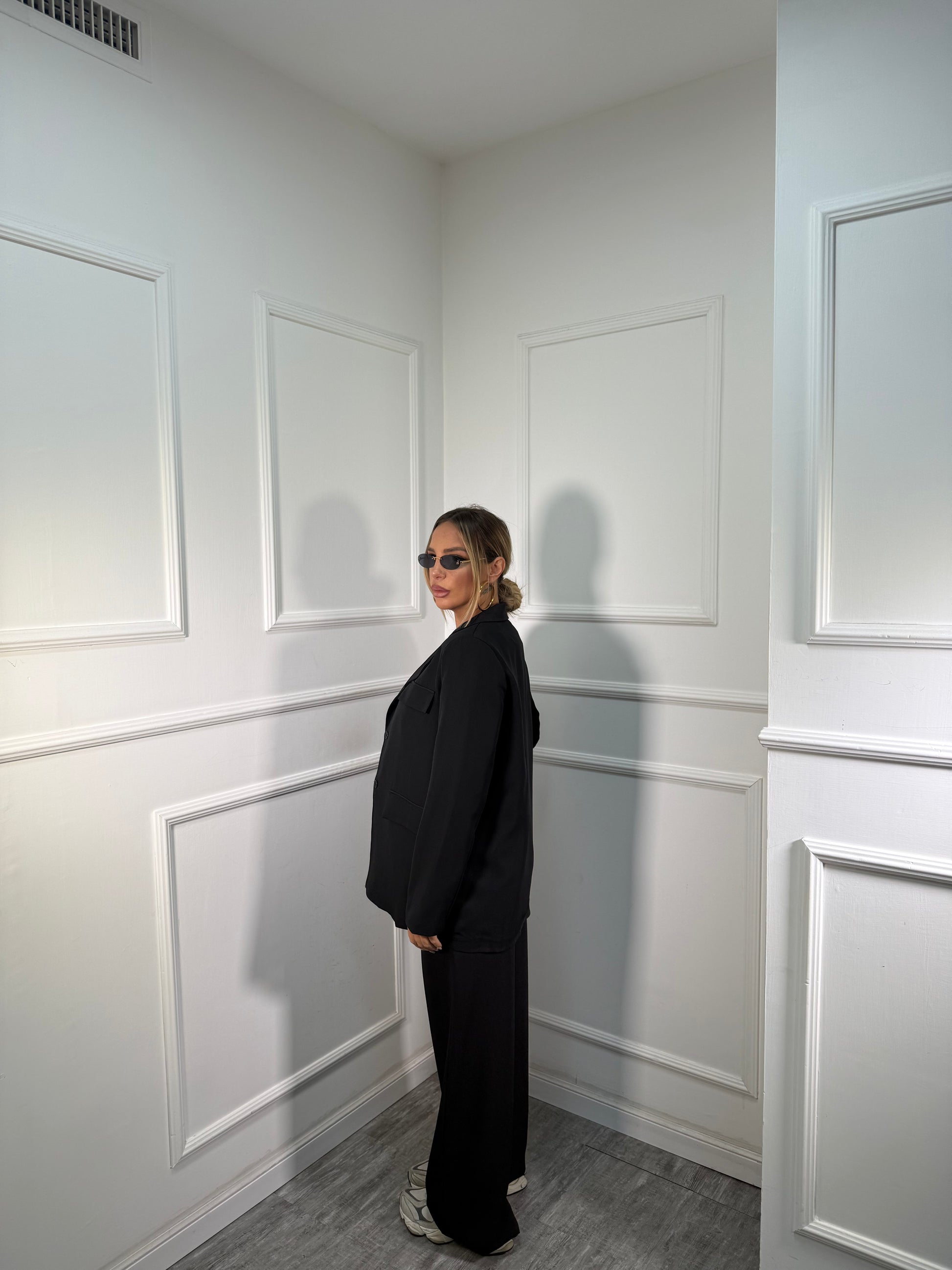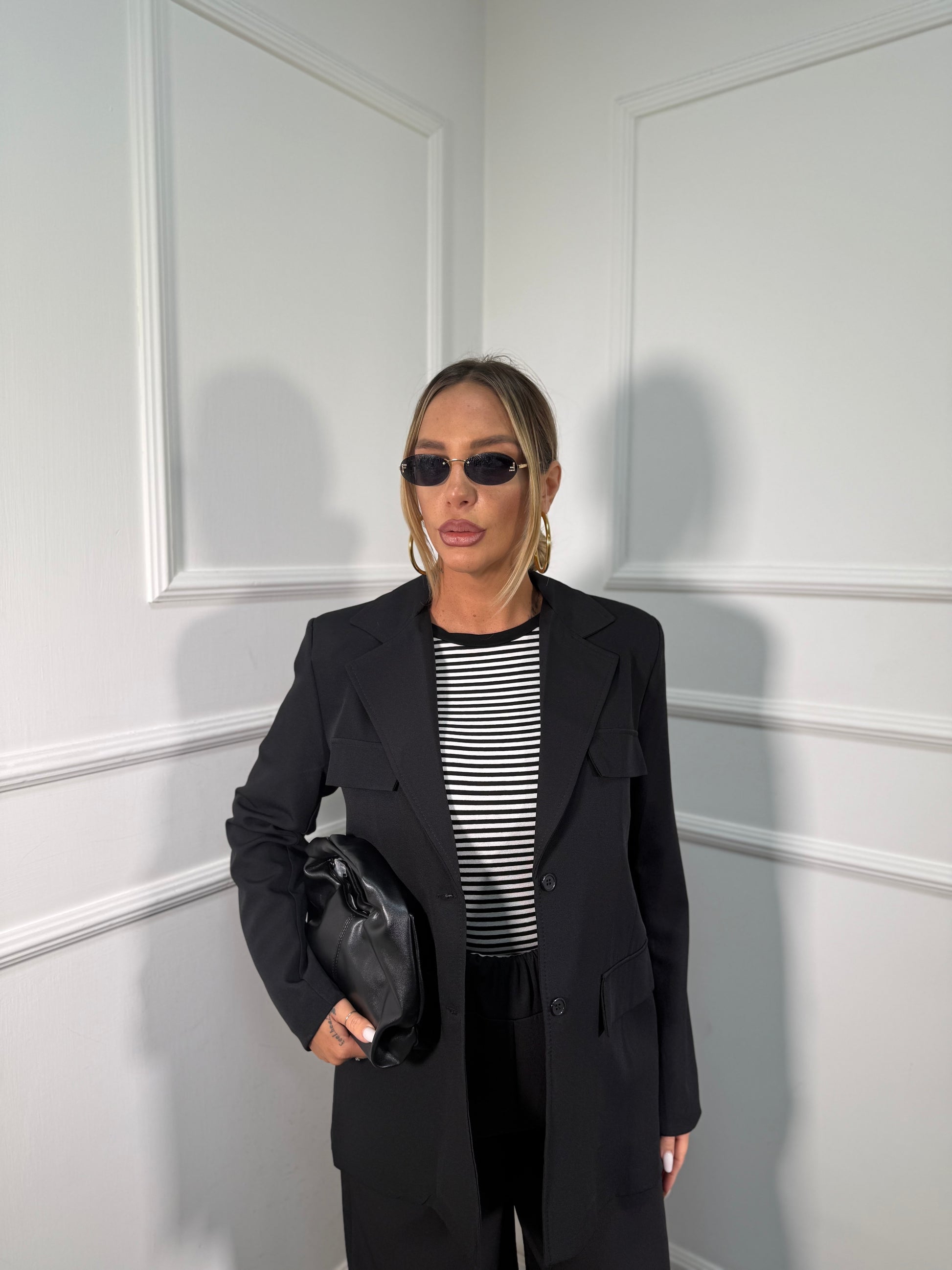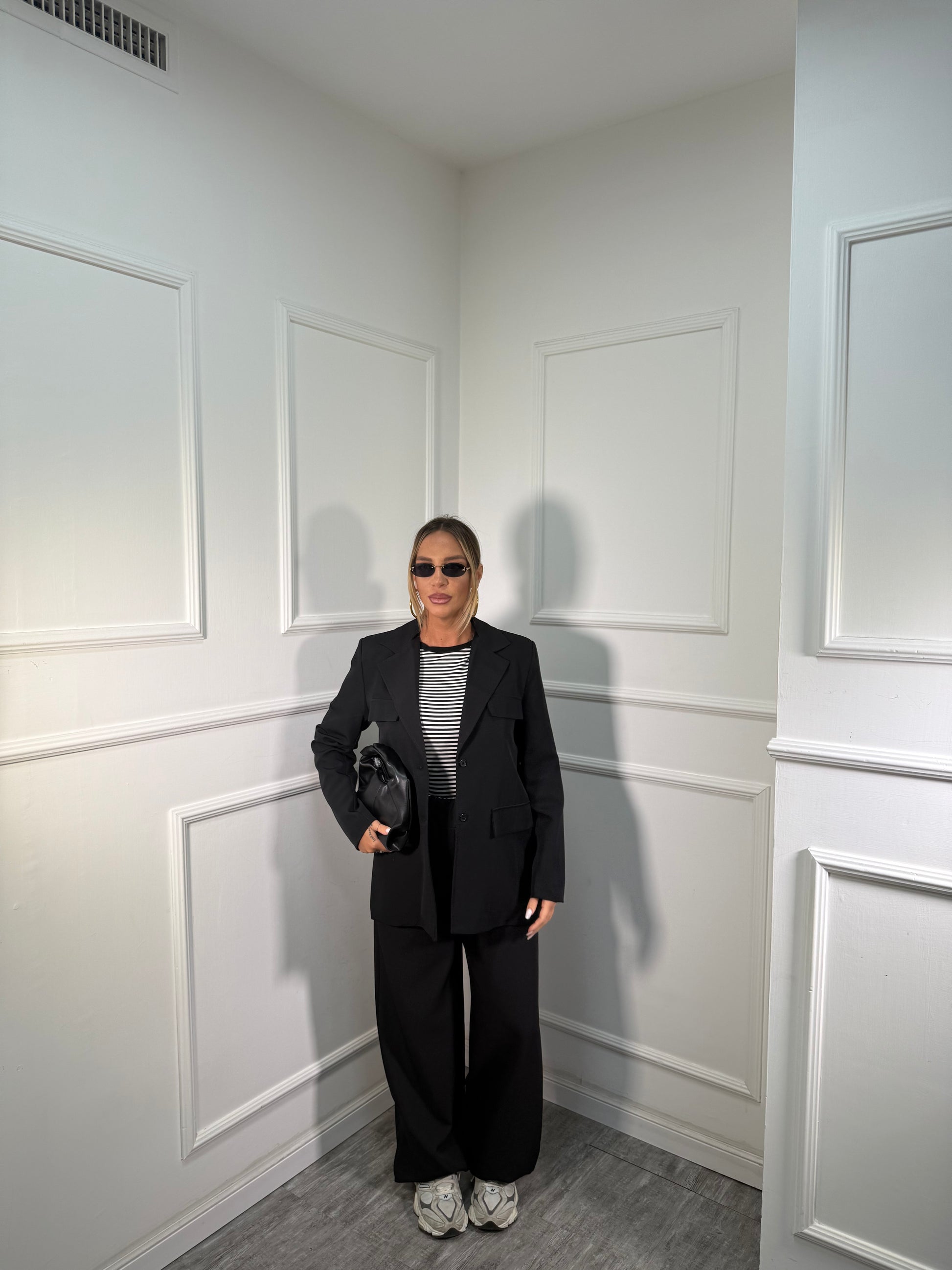 Tailleur composto da blazer chiusura doppio bottone, spalline imbottite, foderato