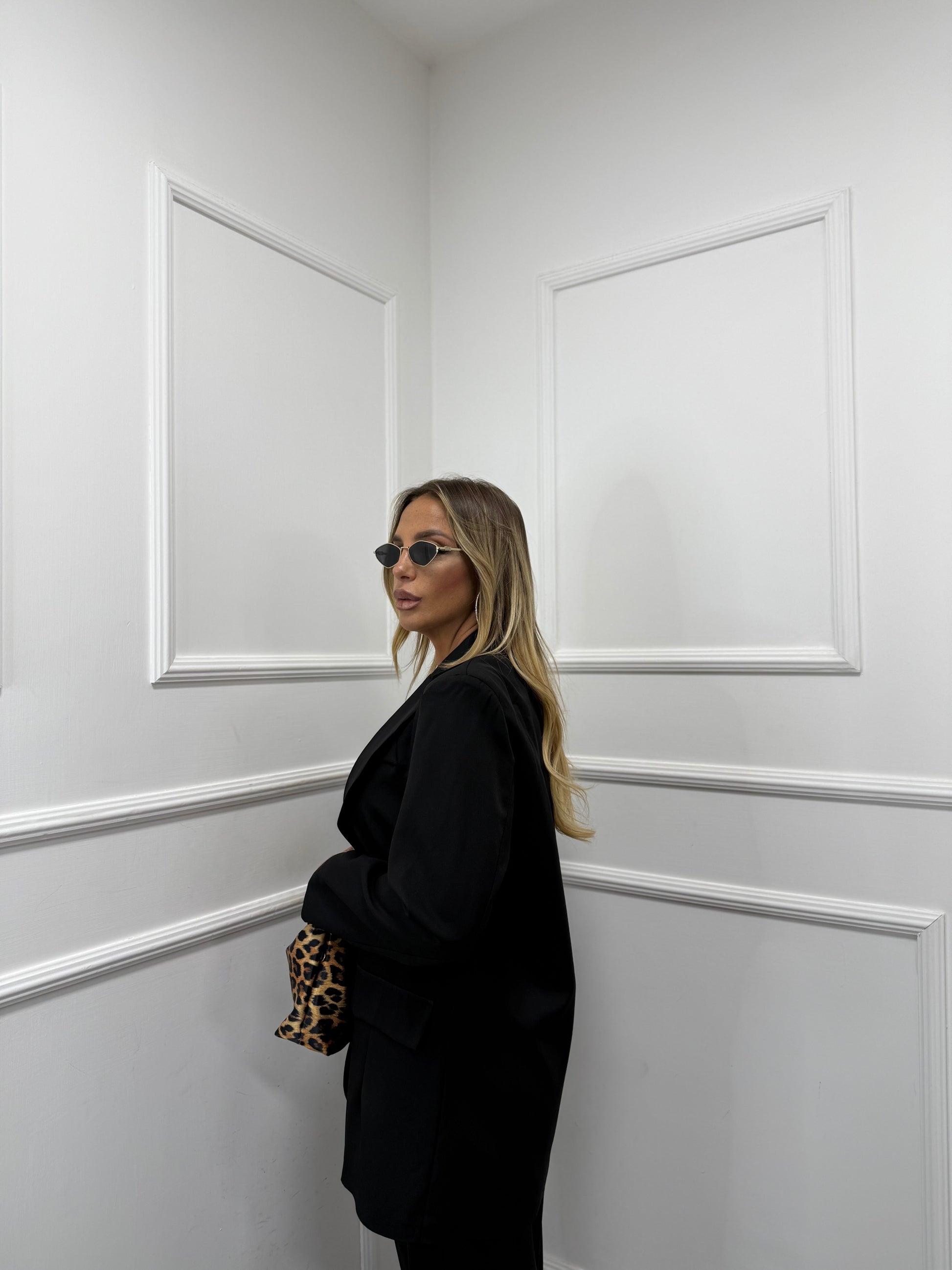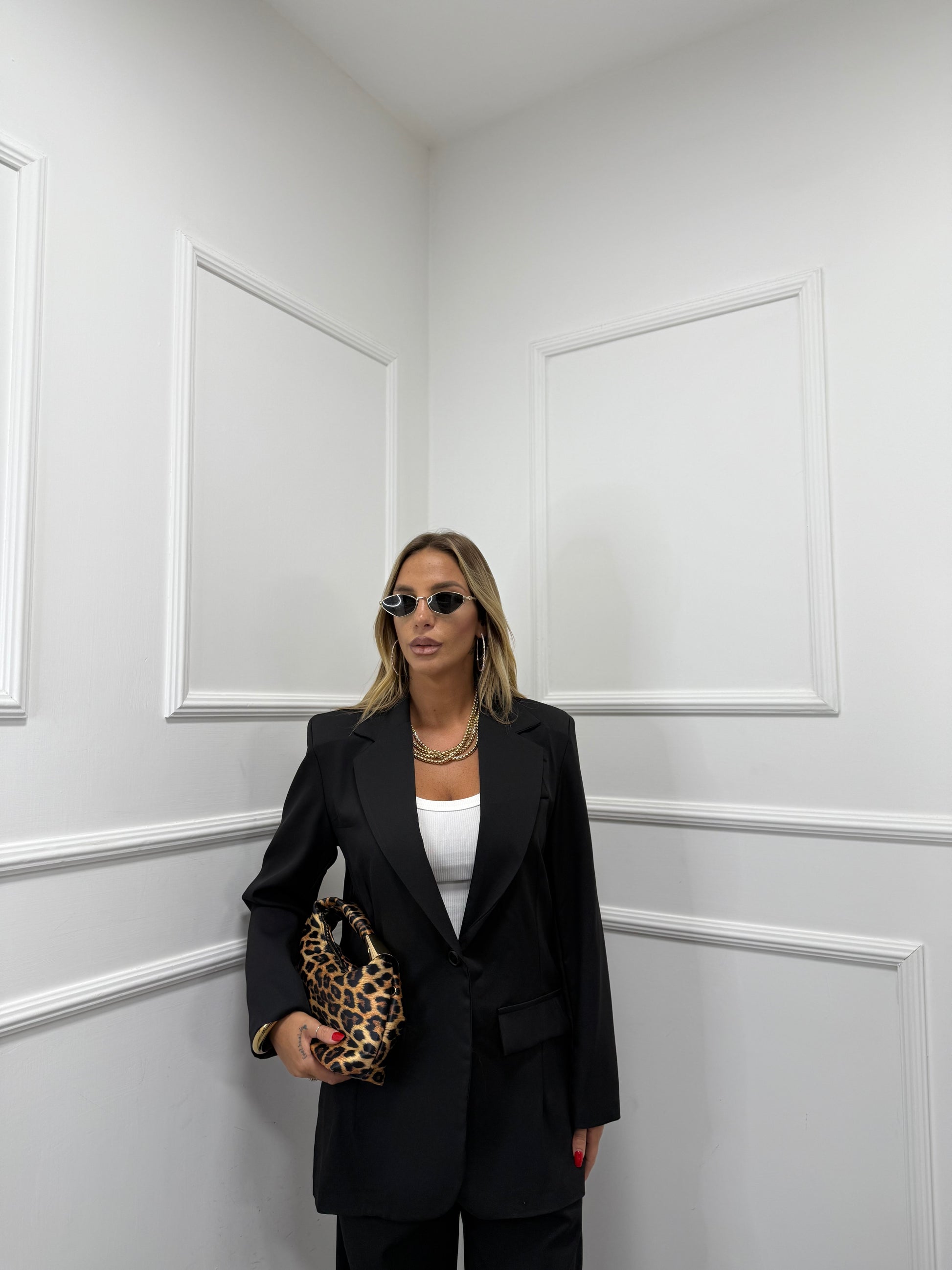 Tailleur composto da Blazer chiusura un bottone e spallina imbottita, foderato