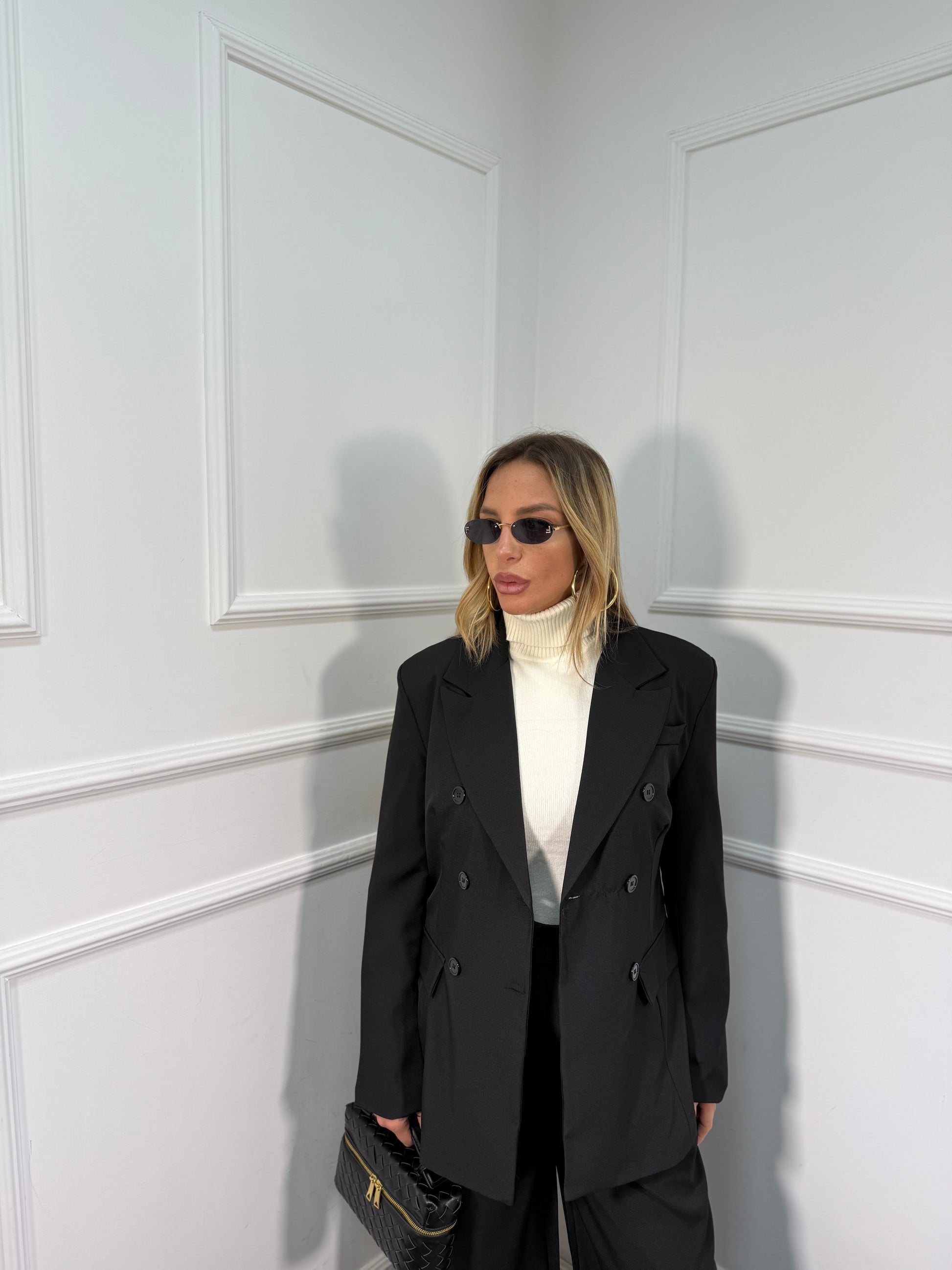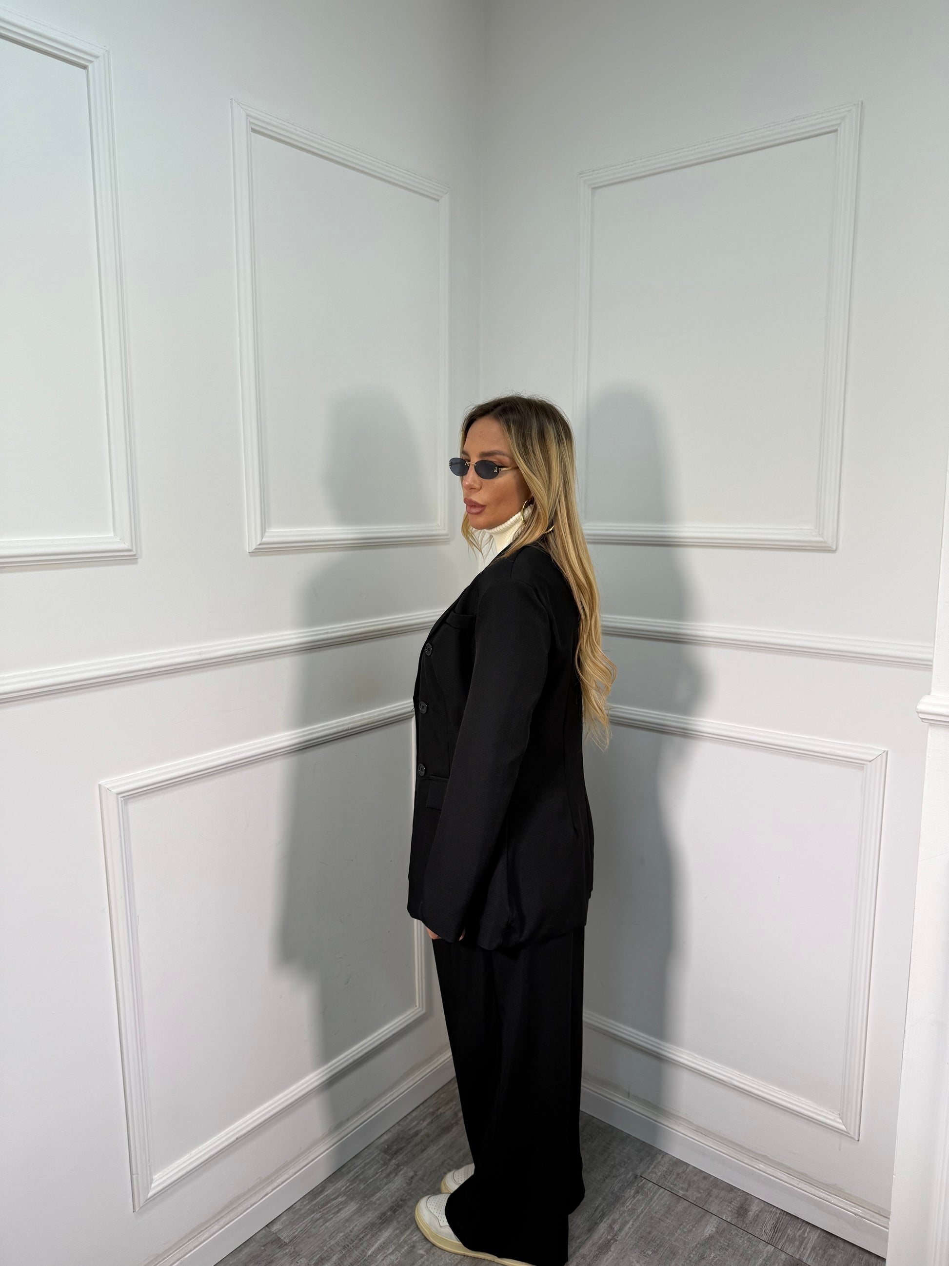 pantaloni palazzo con elastico sul retro e tasche filetto laterali e Pinces sul davanti